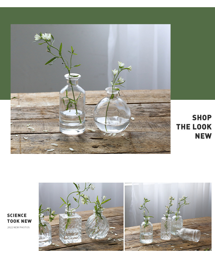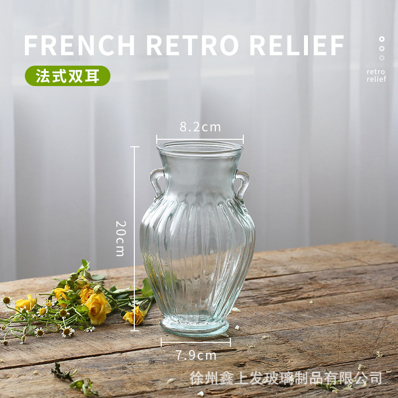 프랑스 복고풍 양각 유리 스타일 미니 작은 꽃병 투명 수경 꽃병 데스크탑 장식 장식품스토어 가기