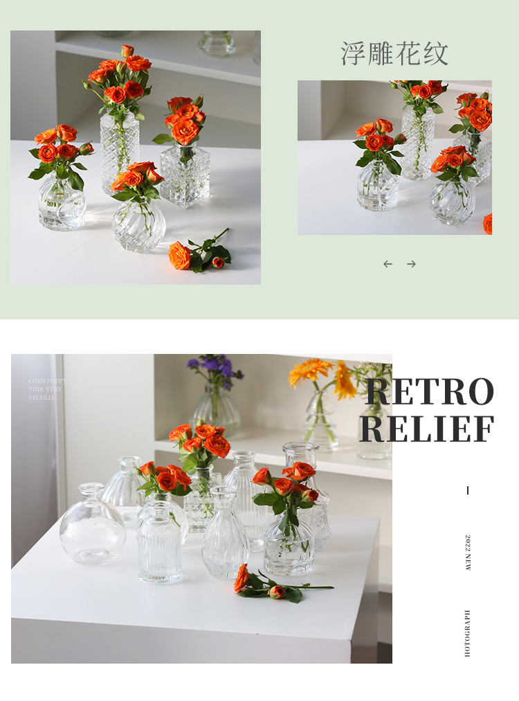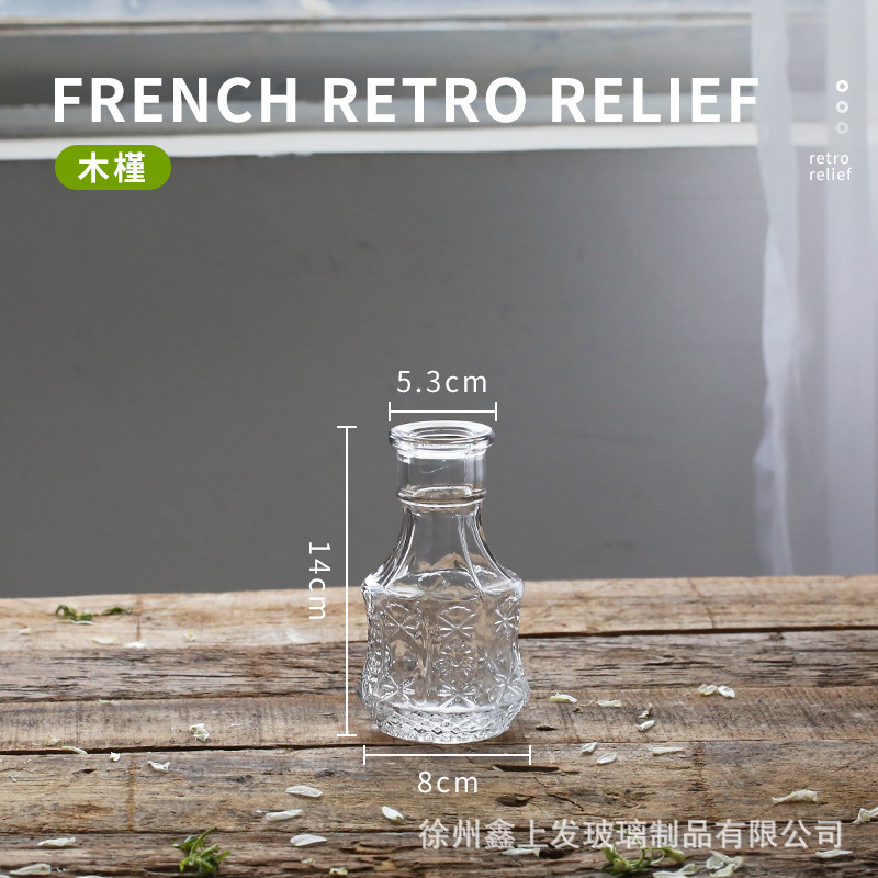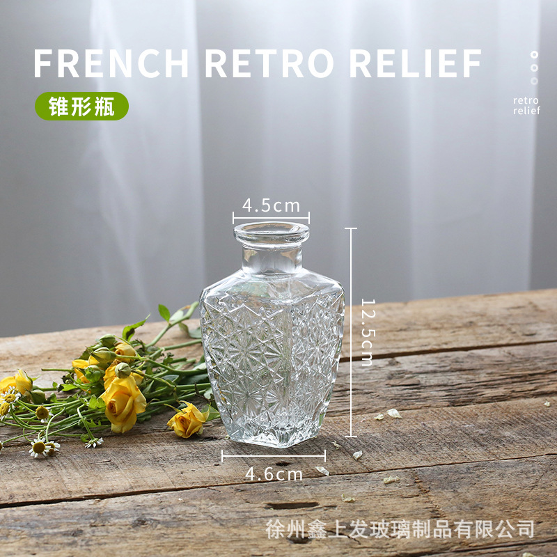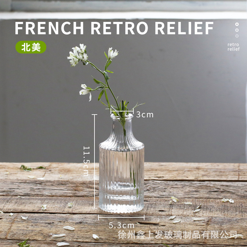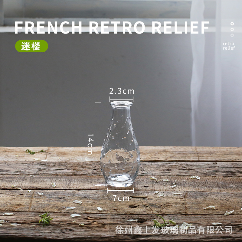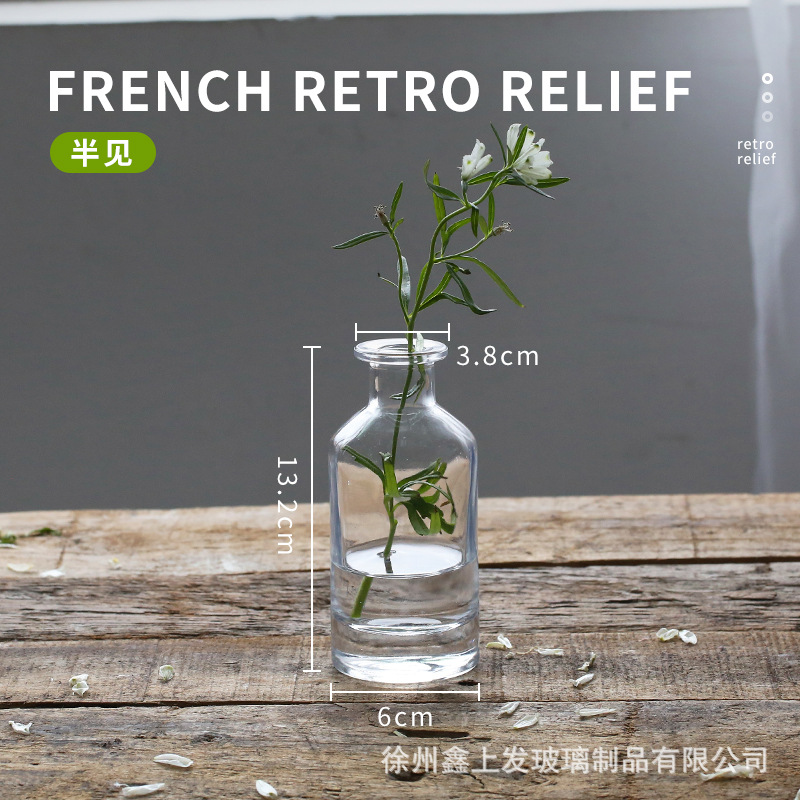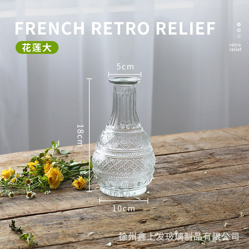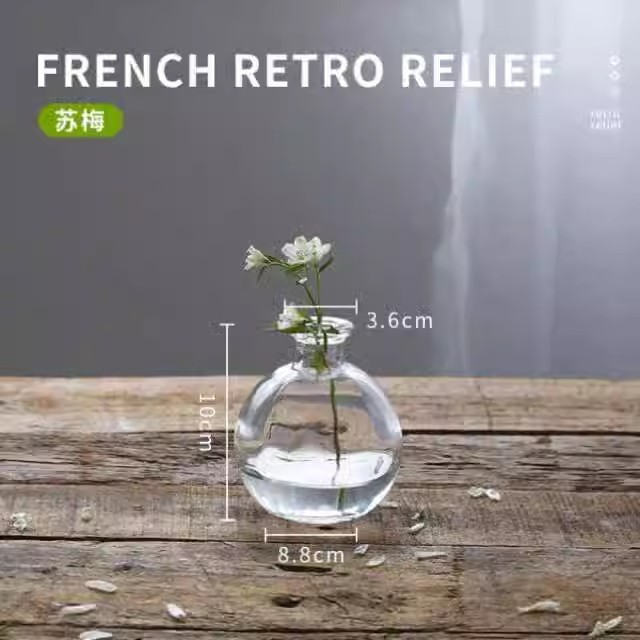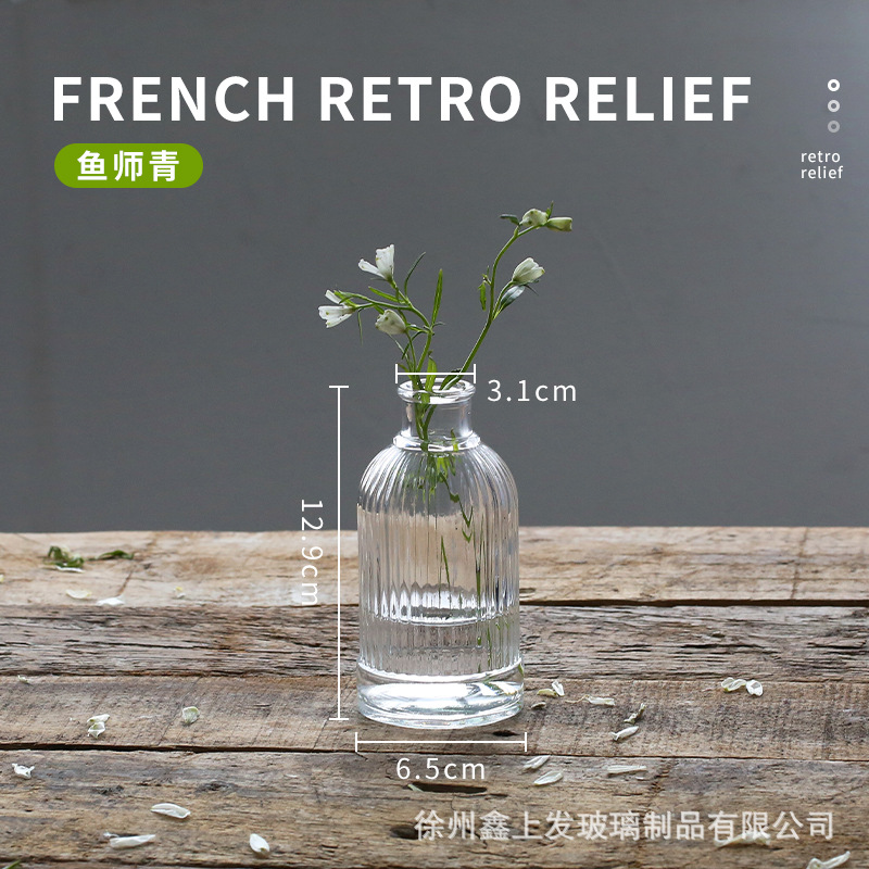 프랑스 복고풍 양각 유리 스타일 미니 작은 꽃병 투명 수경 꽃병 데스크탑 장식 장식품