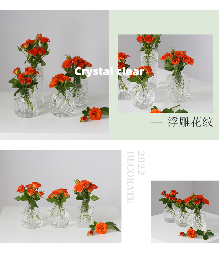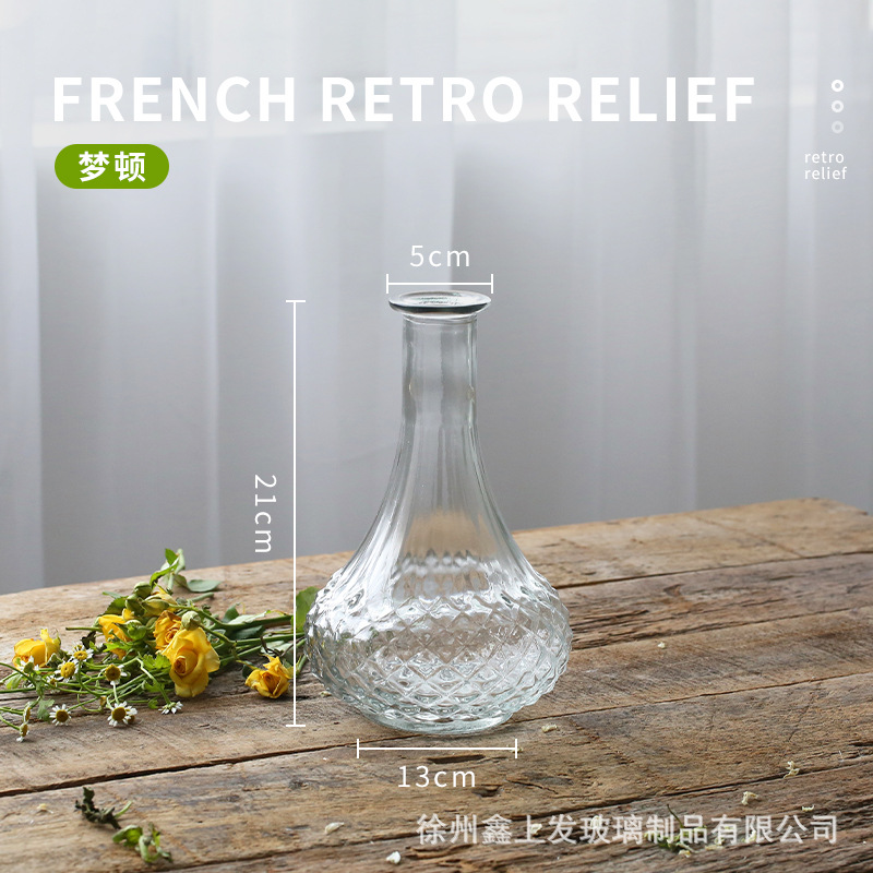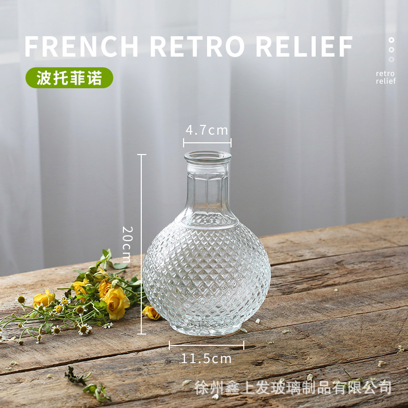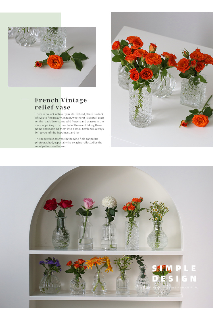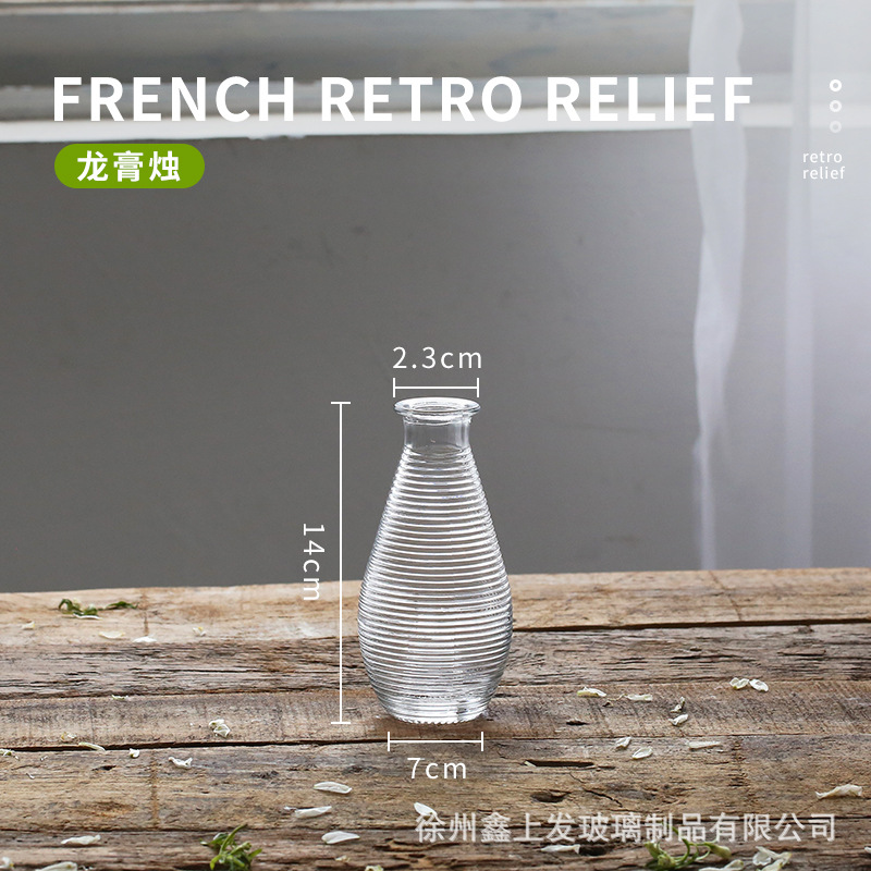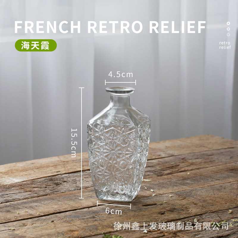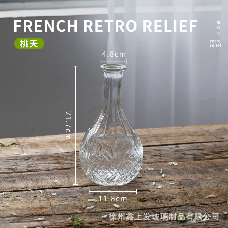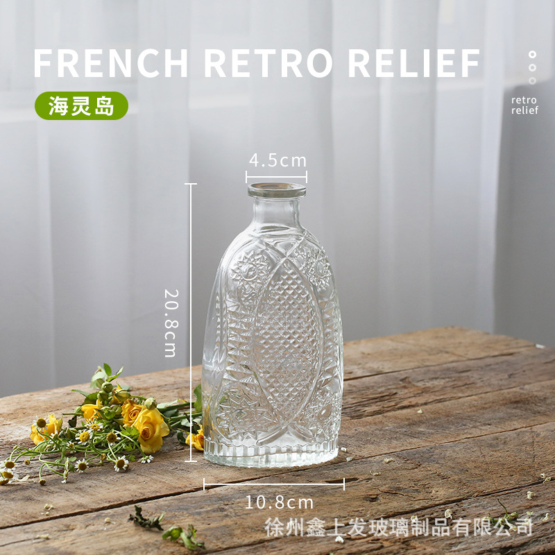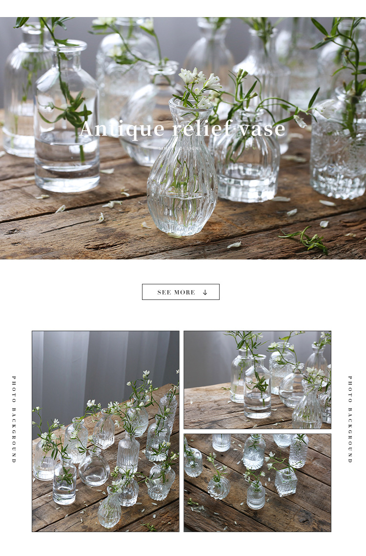 프랑스 복고풍 양각 유리 스타일 미니 작은 꽃병 투명 수경 꽃병 데스크탑 장식 장식품