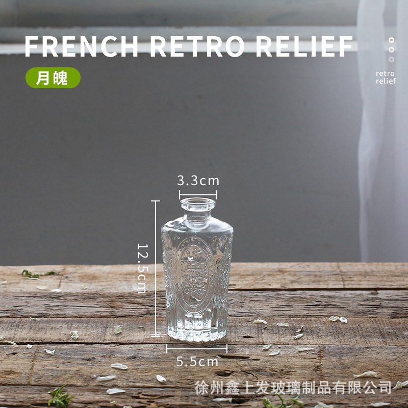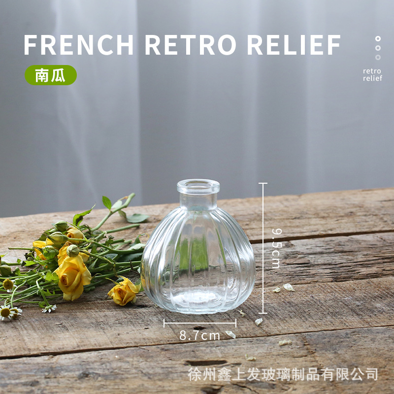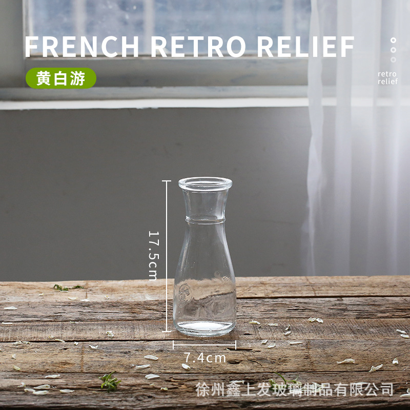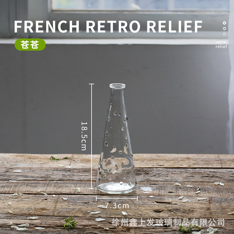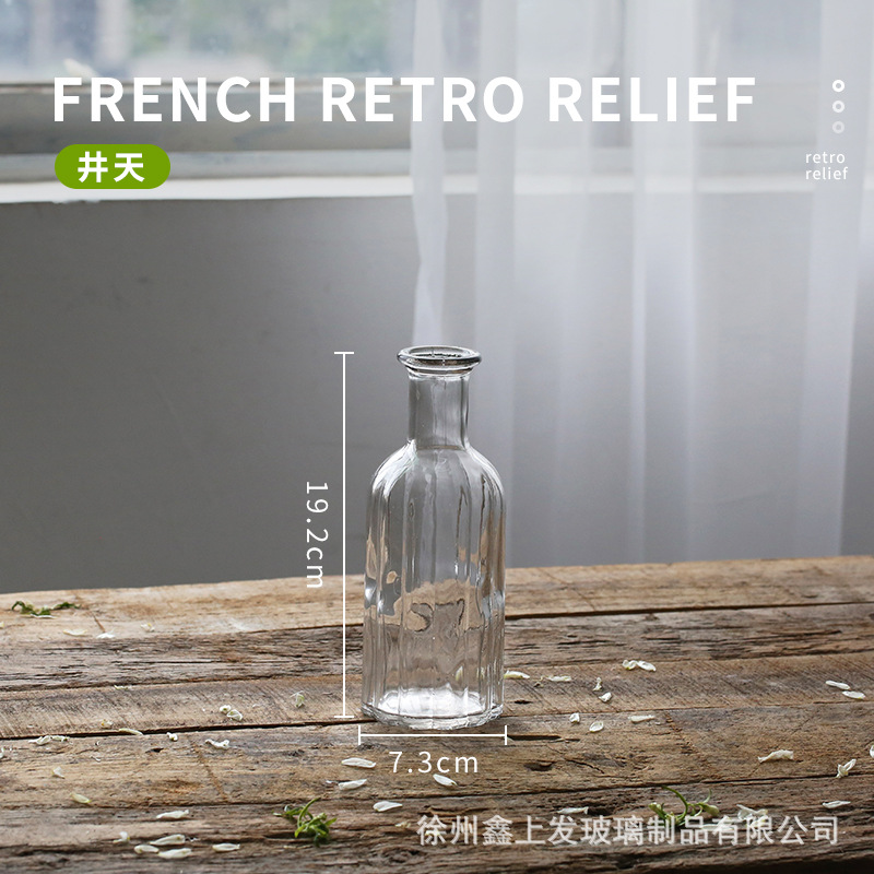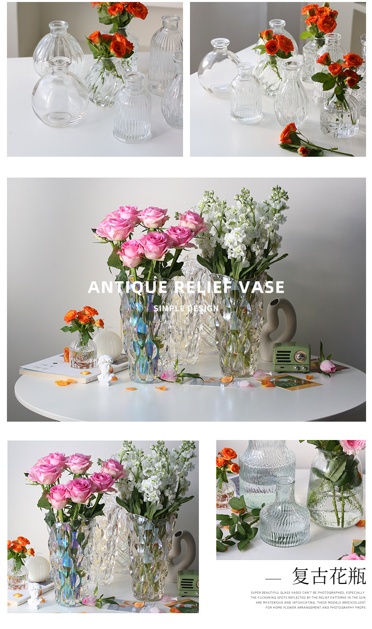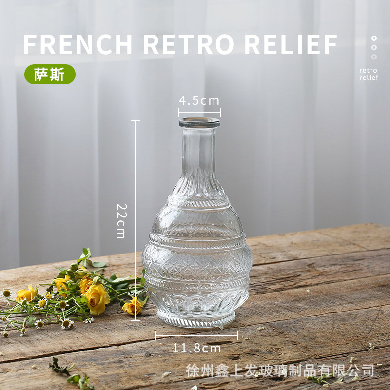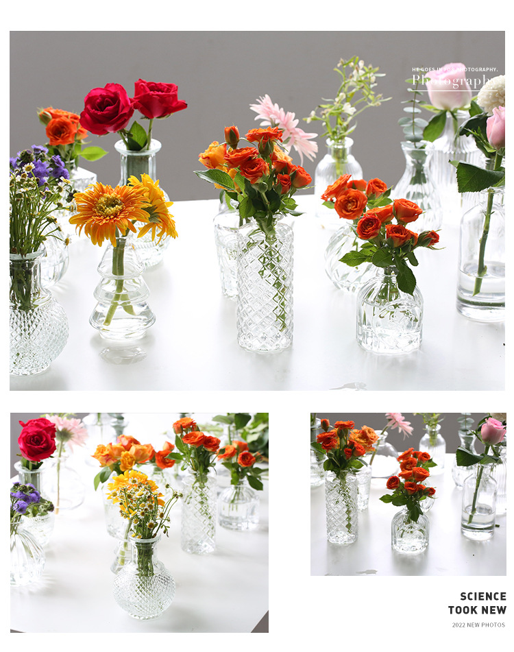 프랑스 복고풍 양각 유리 스타일 미니 작은 꽃병 투명 수경 꽃병 데스크탑 장식 장식품