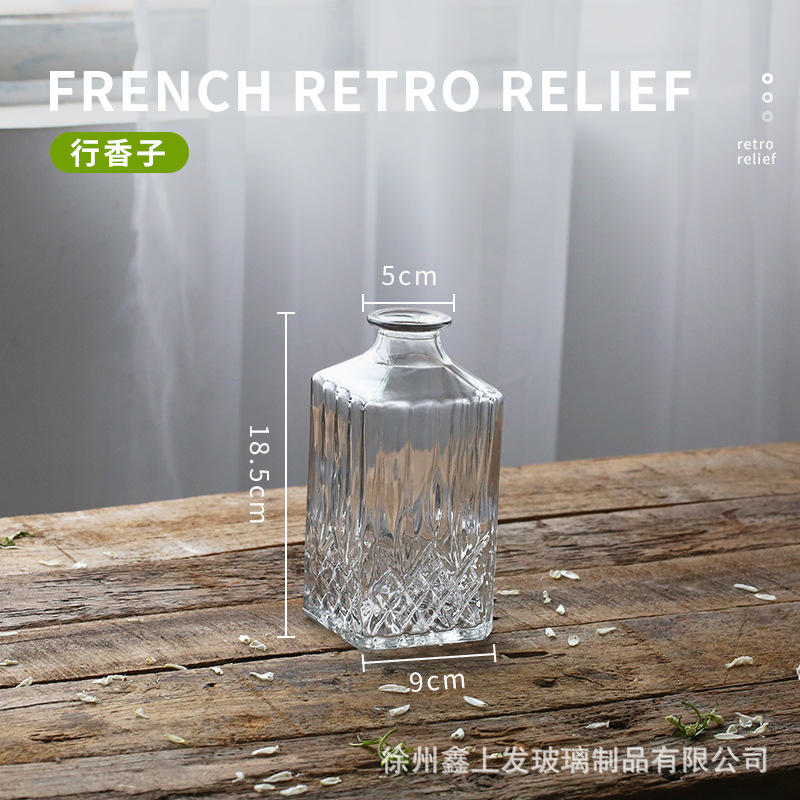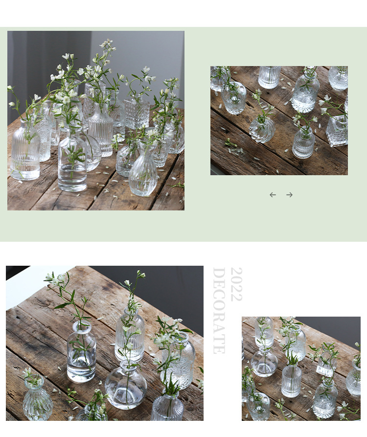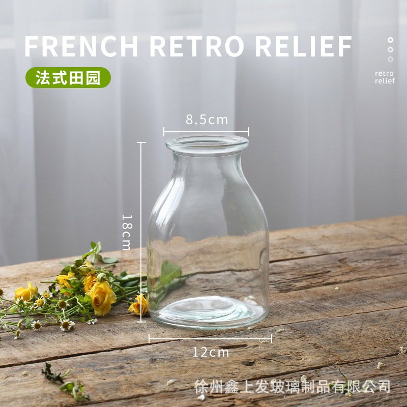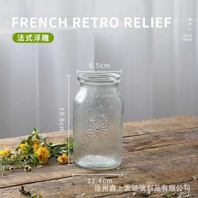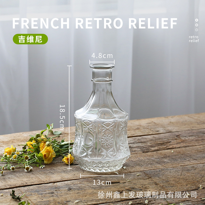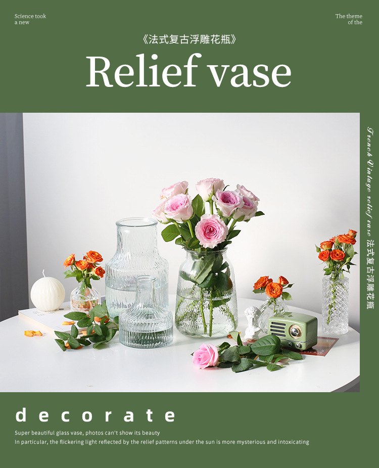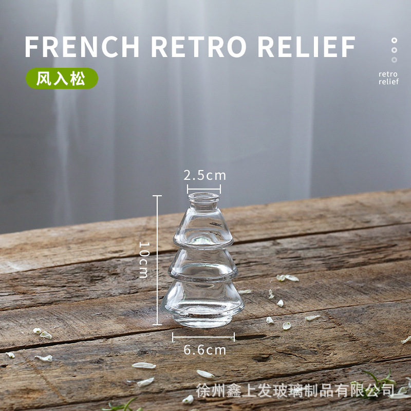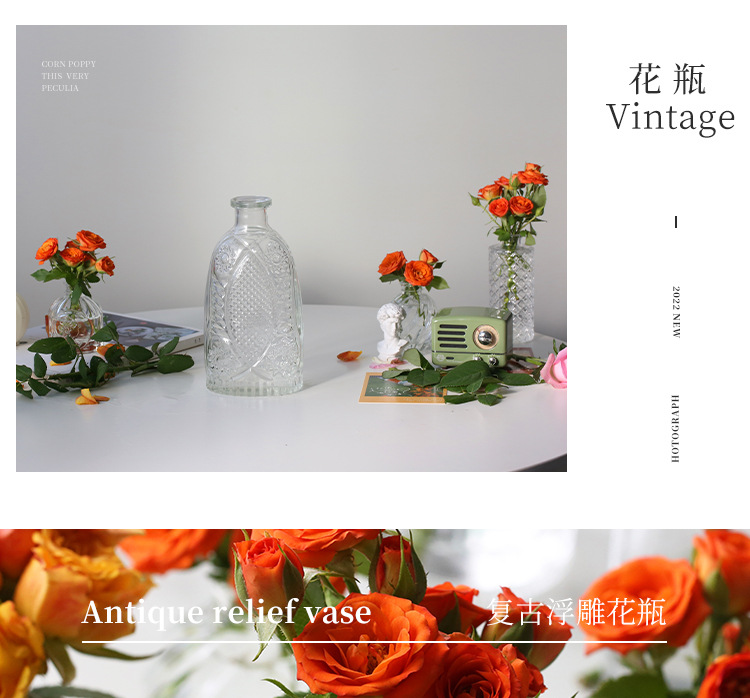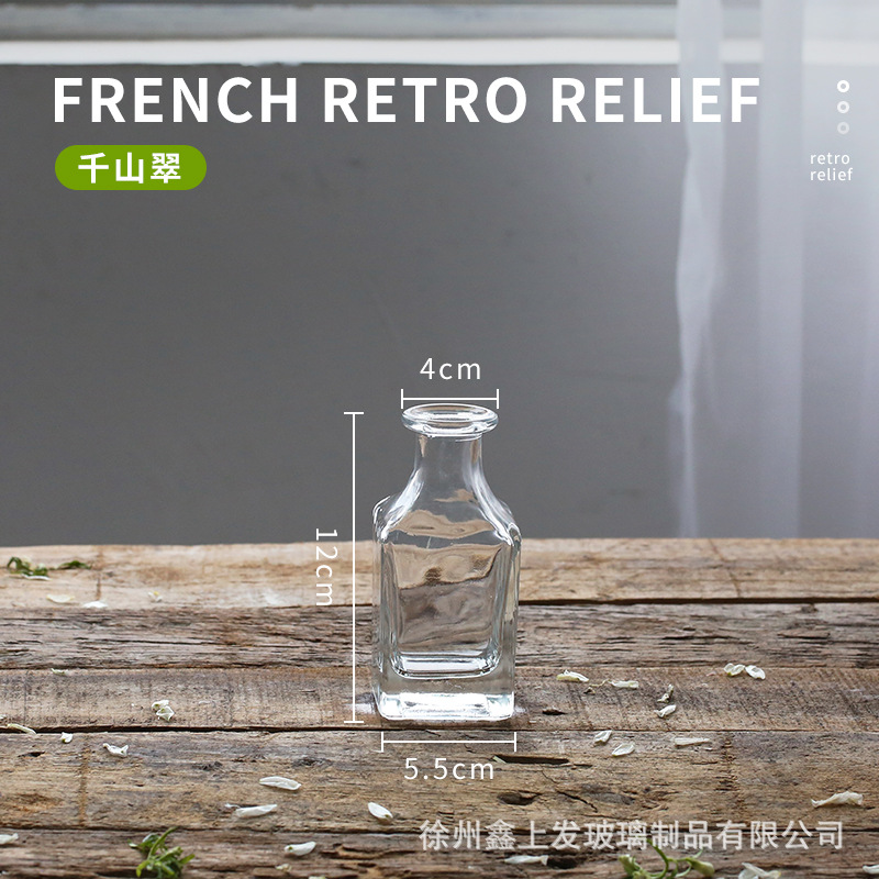 프랑스 복고풍 양각 유리 스타일 미니 작은 꽃병 투명 수경 꽃병 데스크탑 장식 장식품