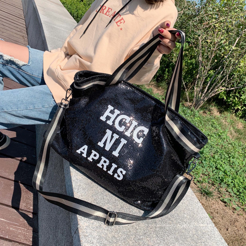 국경 간 새로운 패션 트렌디 쿨 여행 가방 대용량 스퀸 핸드백 알파벳 스포츠 피트니스 요가 어깨 가방스토어 가기