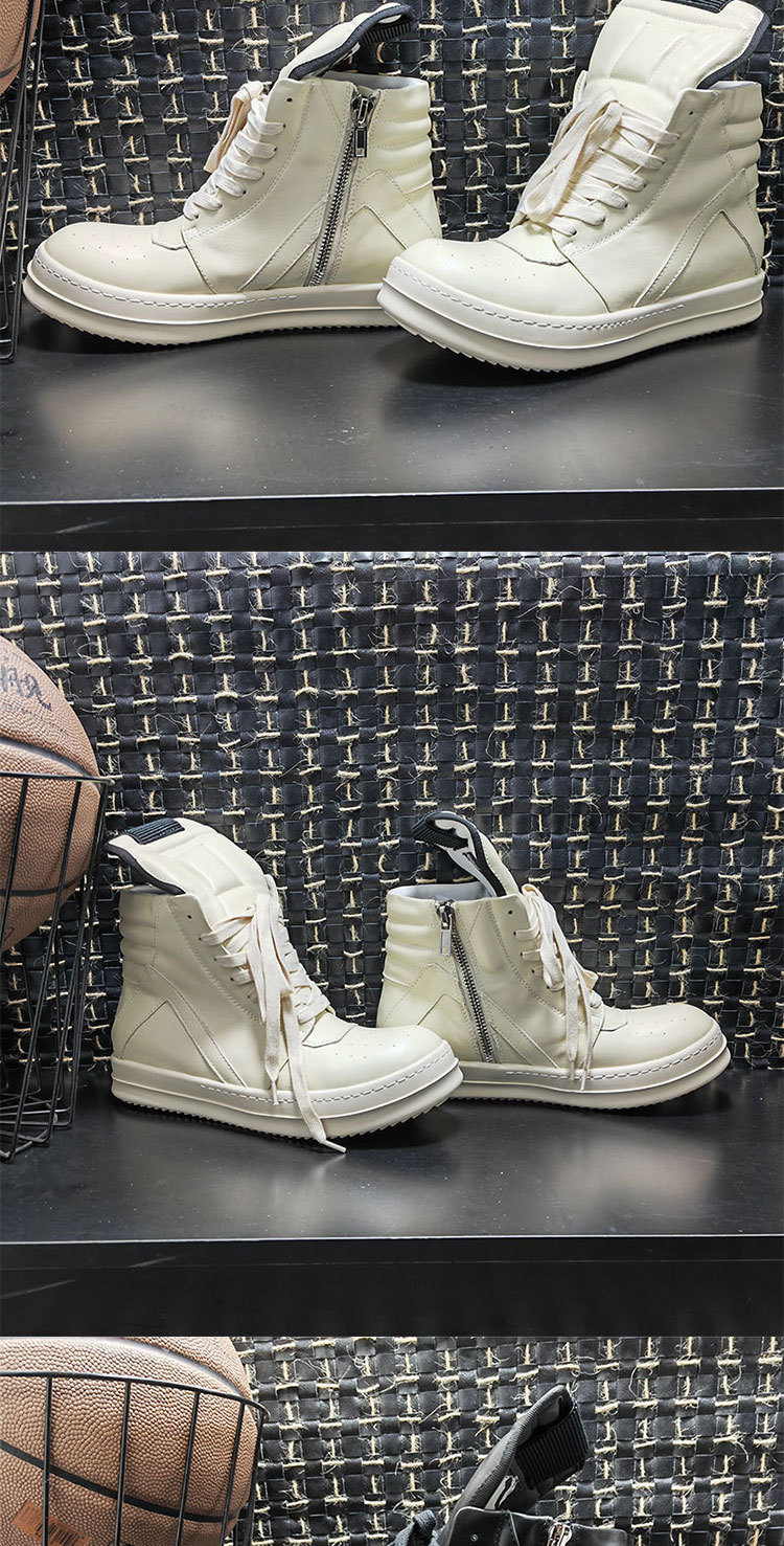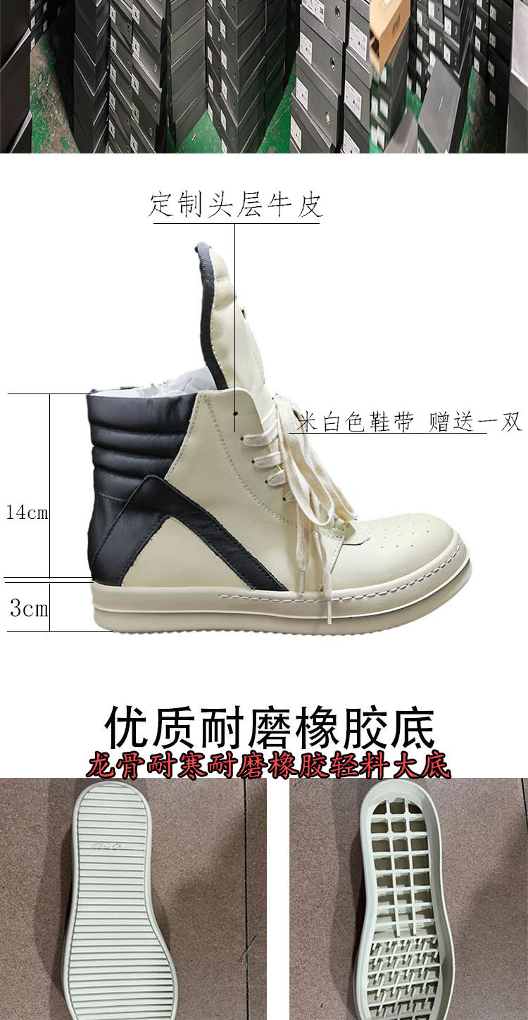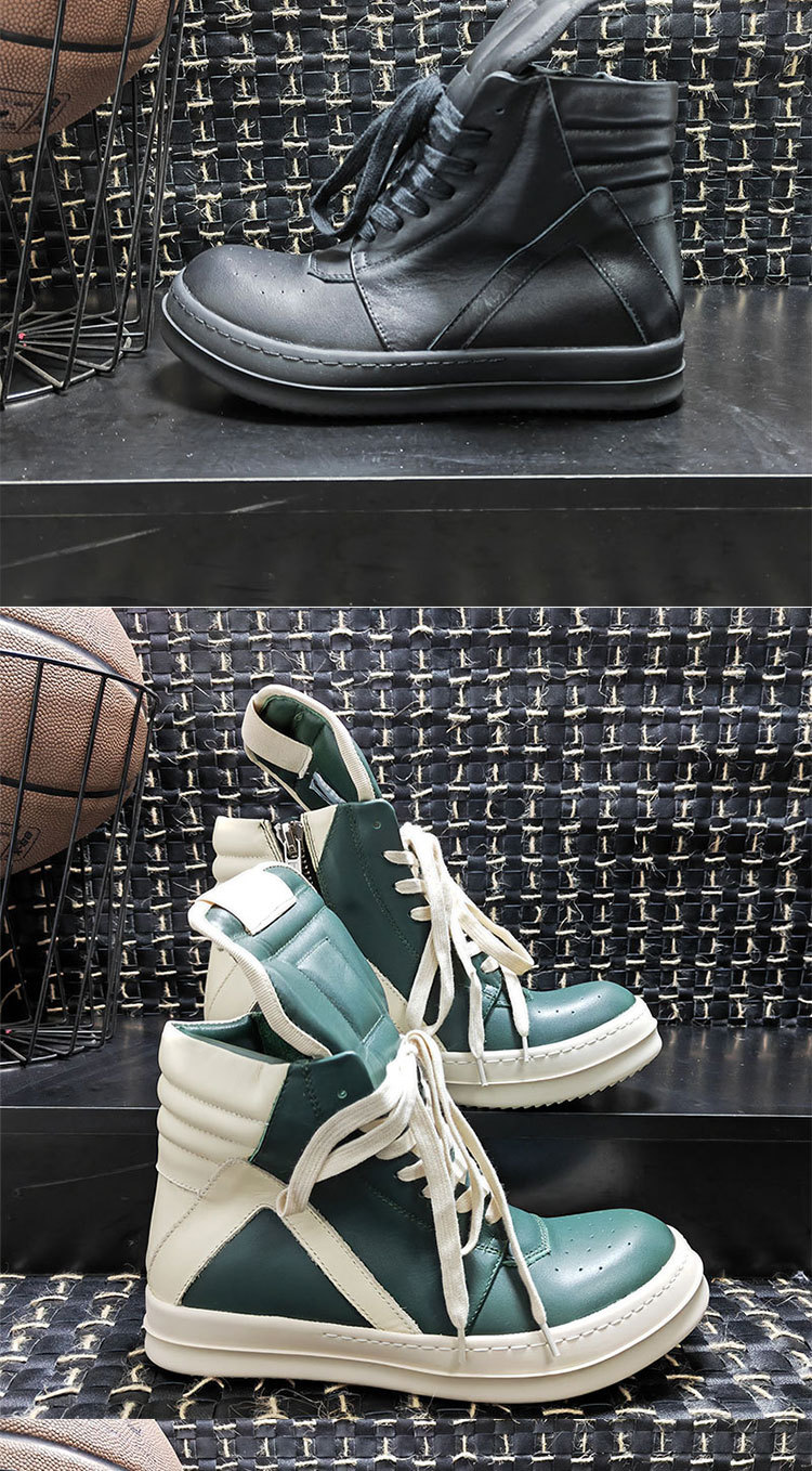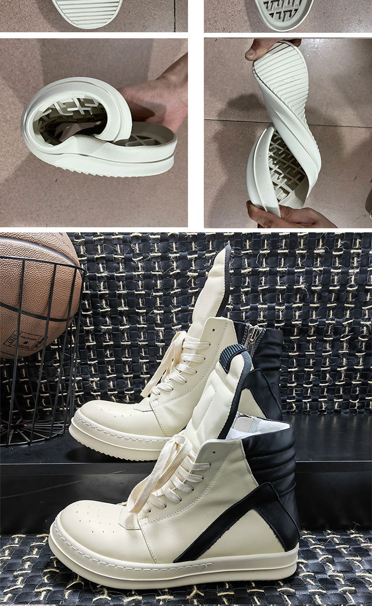 RO 클래식 얇은 바닥 역 삼각형 가을, 겨울 하이 탑 남성 신발 흑백 소 가죽 대형 유럽과 미국 스타일 캐주얼 커플 유행 스타일스토어 가기