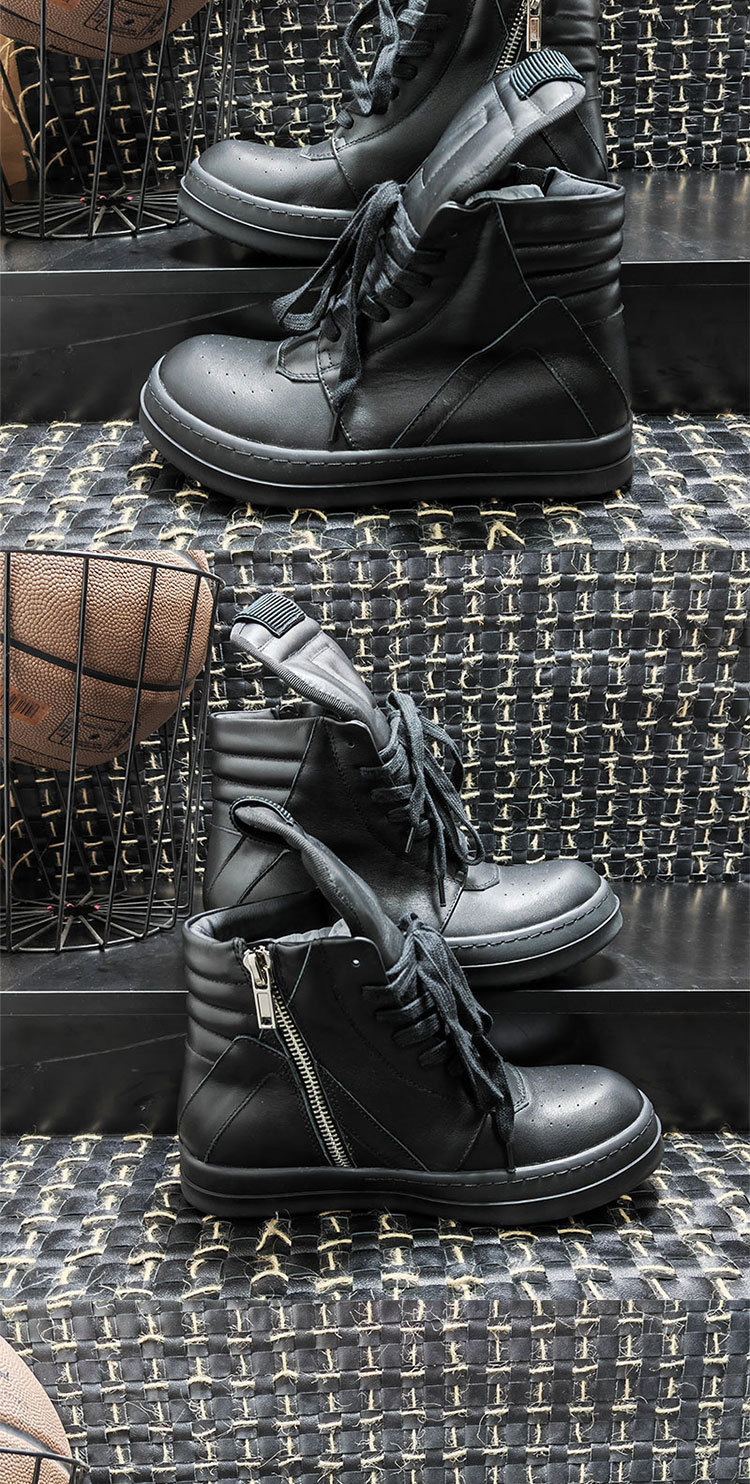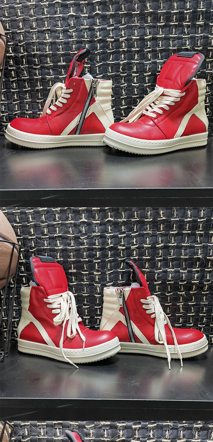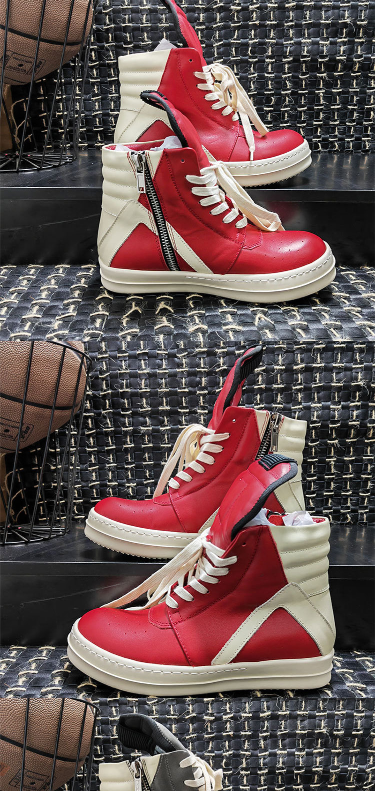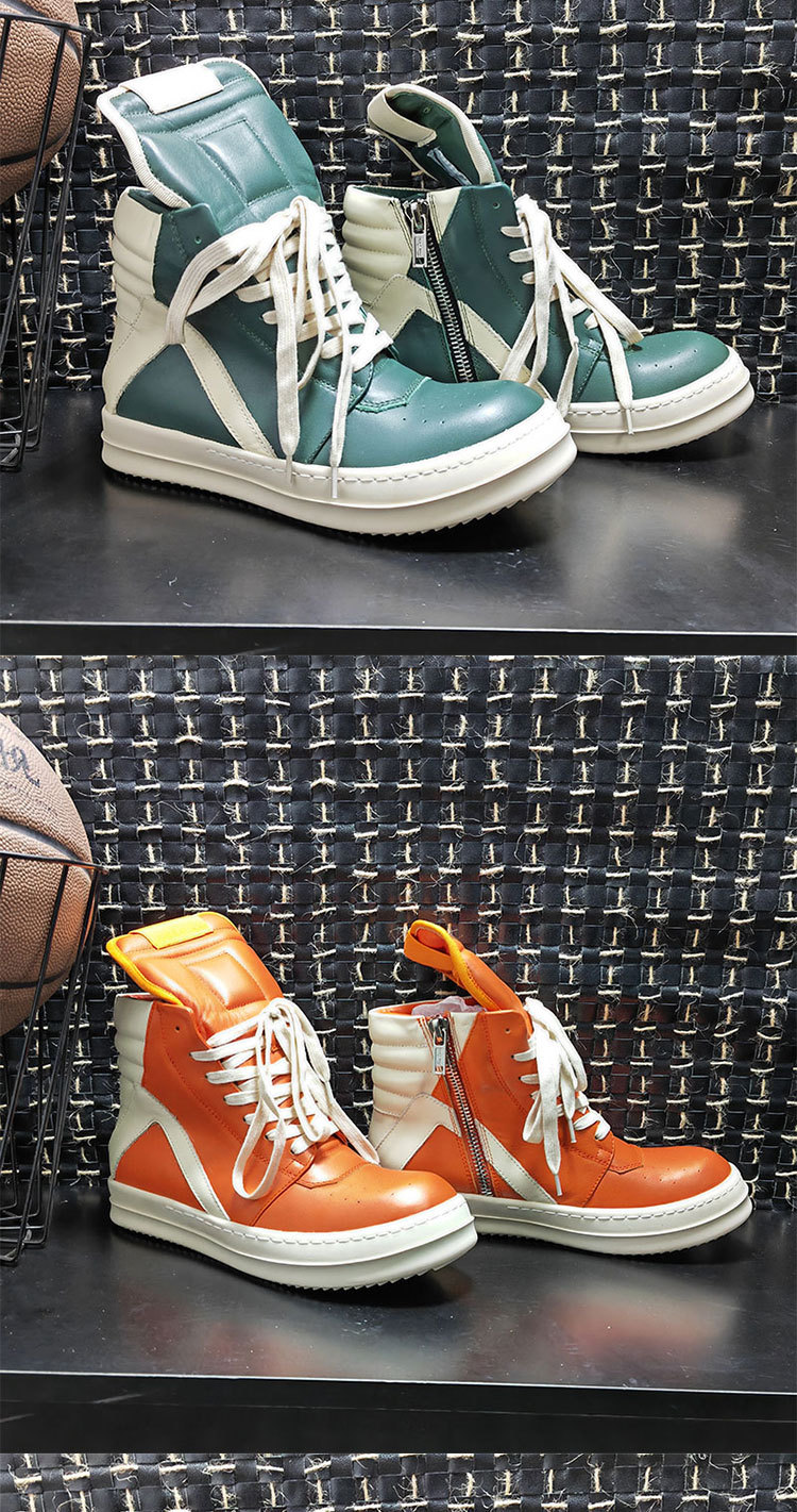 RO 클래식 얇은 바닥 역 삼각형 가을, 겨울 하이 탑 남성 신발 흑백 소 가죽 대형 유럽과 미국 스타일 캐주얼 커플 유행 스타일스토어 가기