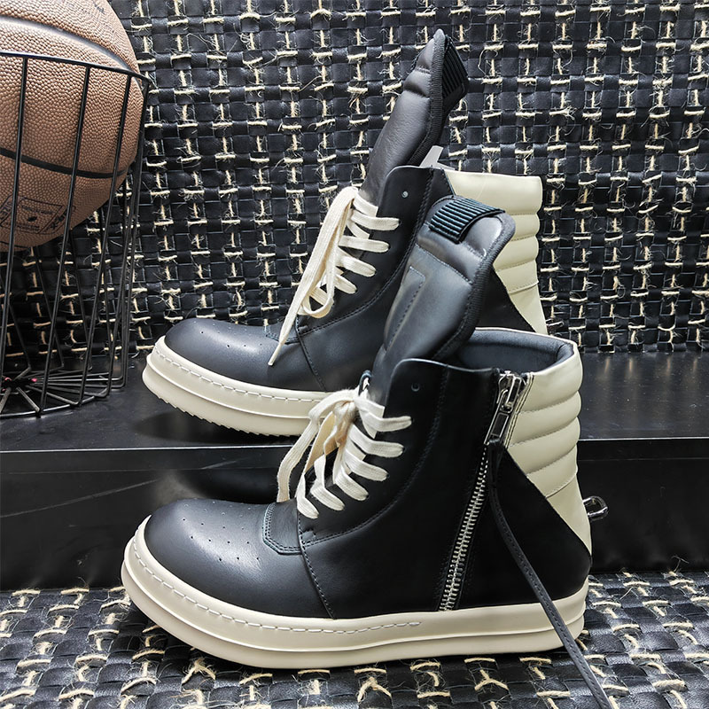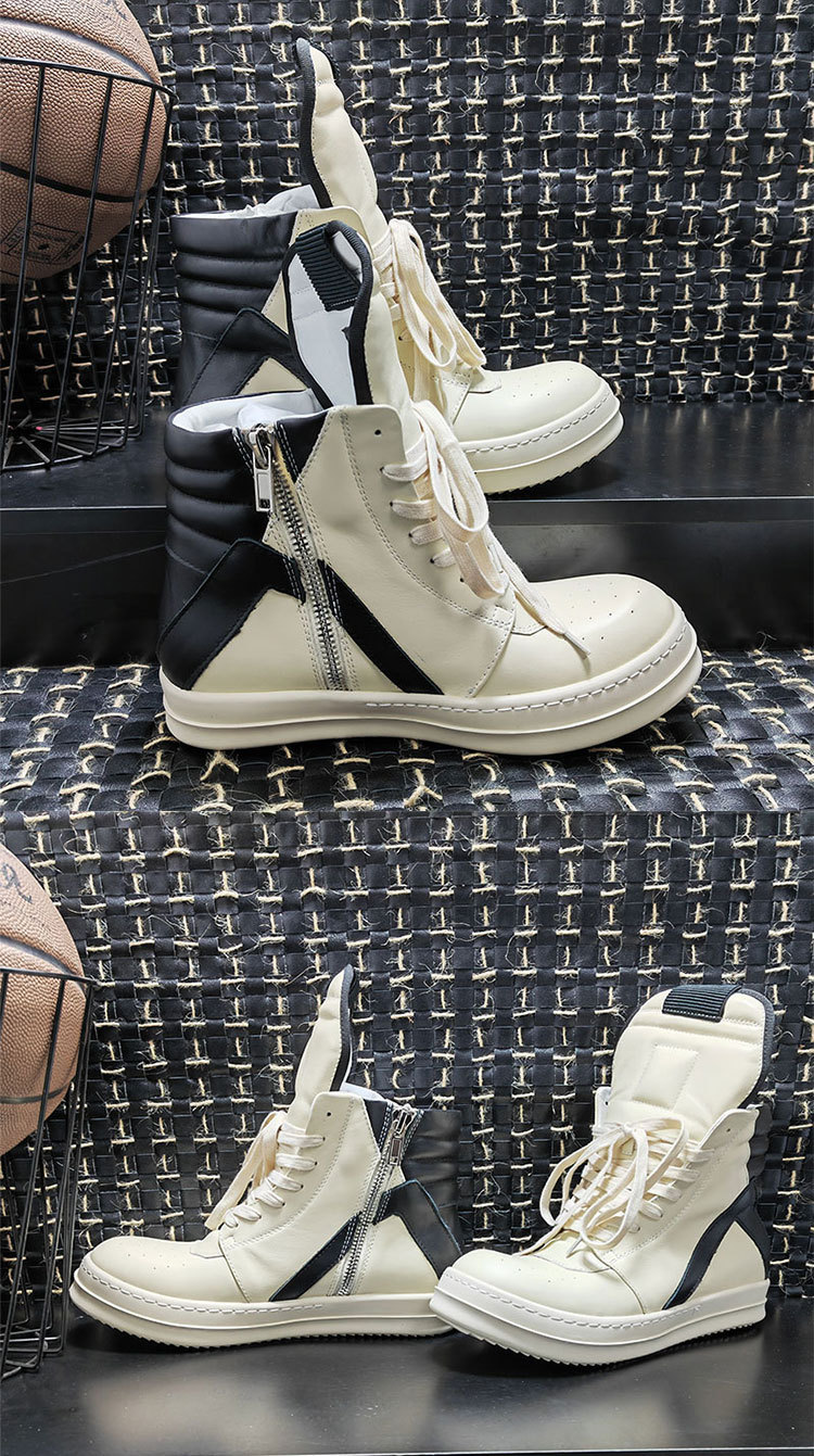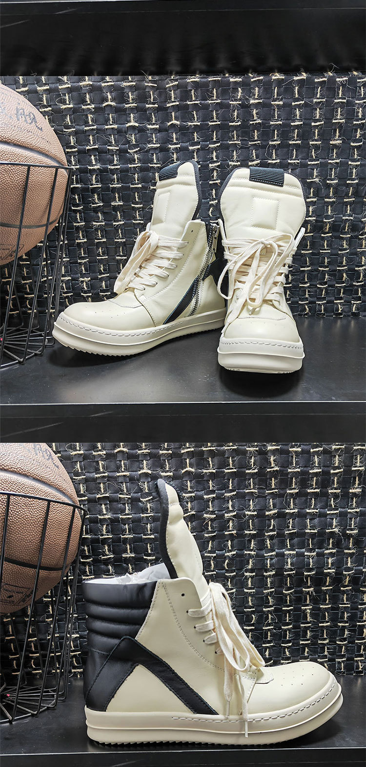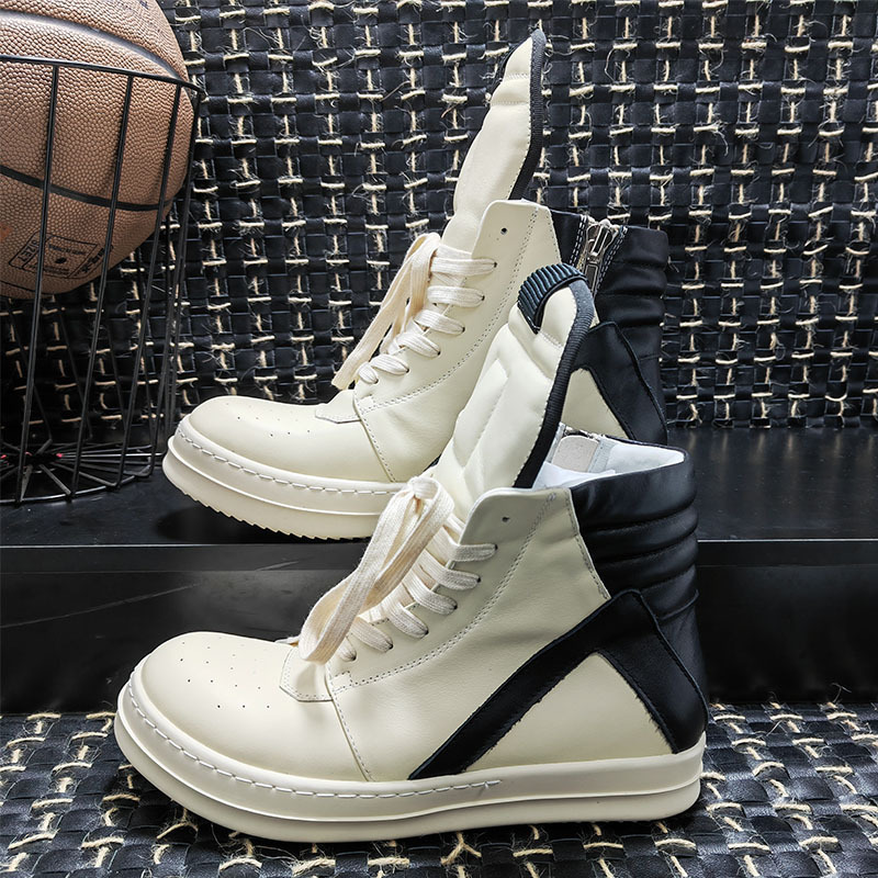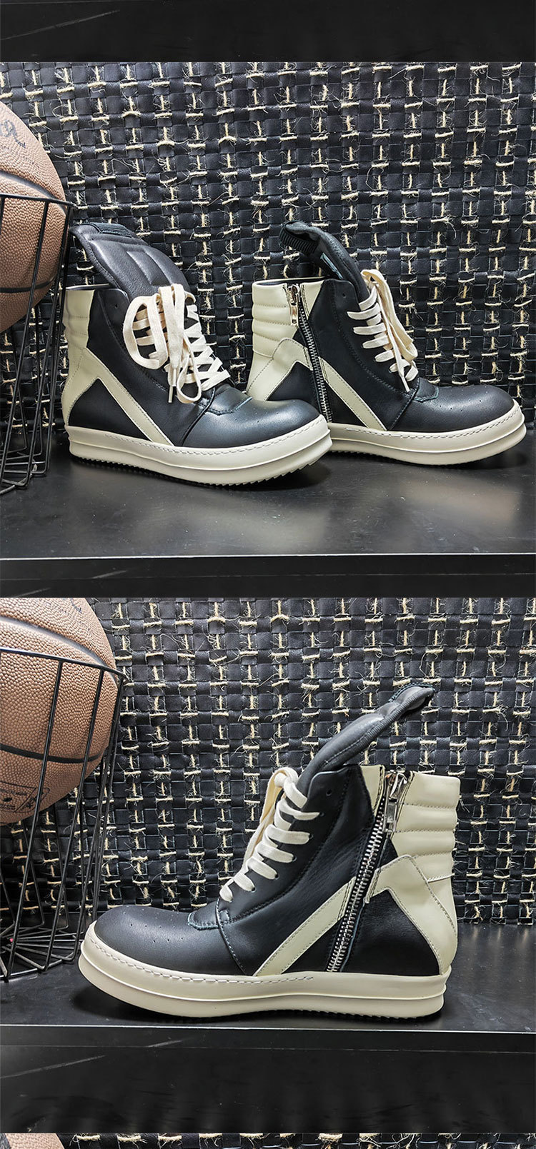 RO 클래식 얇은 바닥 역 삼각형 가을, 겨울 하이 탑 남성 신발 흑백 소 가죽 대형 유럽과 미국 스타일 캐주얼 커플 유행 스타일
