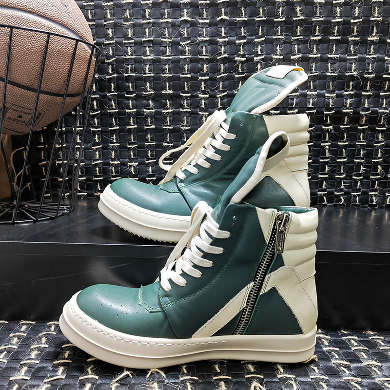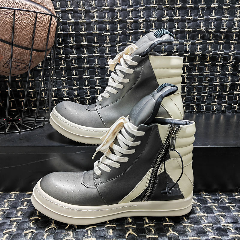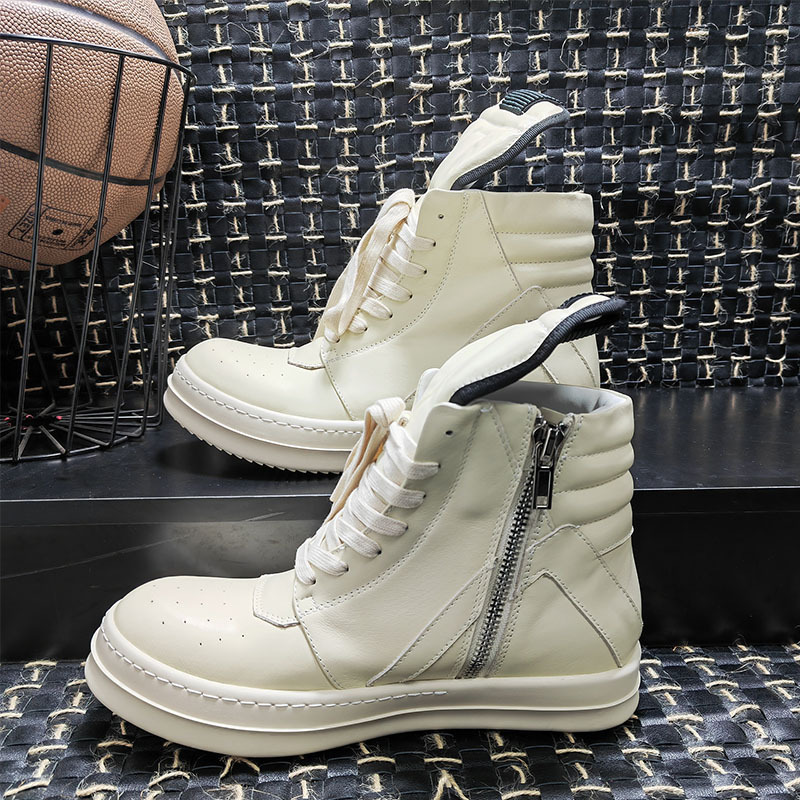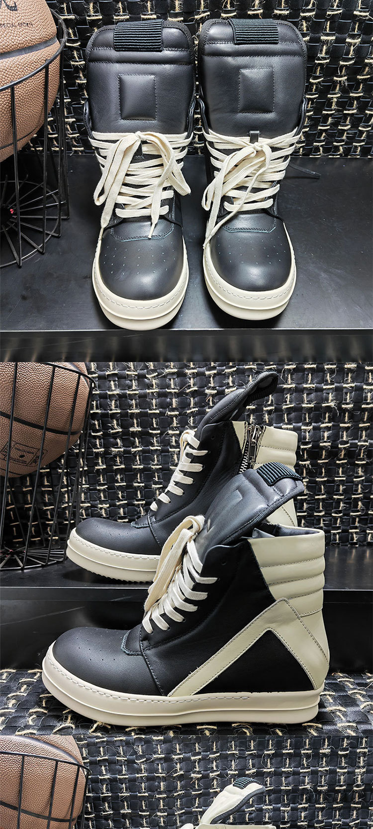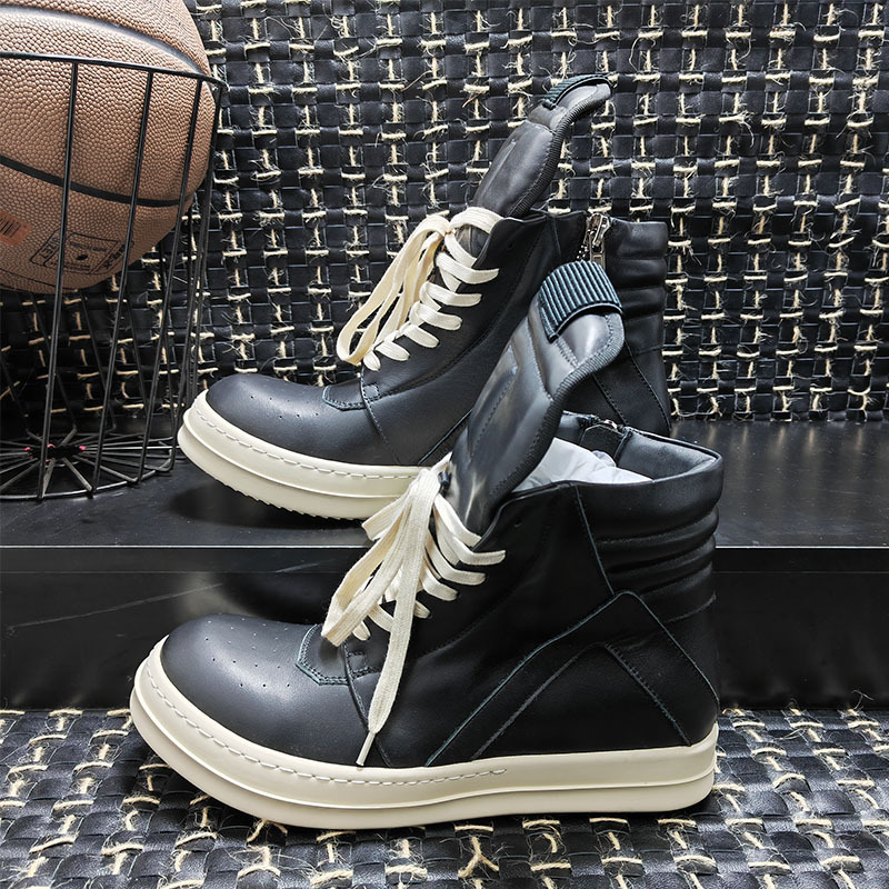 RO 클래식 얇은 바닥 역 삼각형 가을, 겨울 하이 탑 남성 신발 흑백 소 가죽 대형 유럽과 미국 스타일 캐주얼 커플 유행 스타일