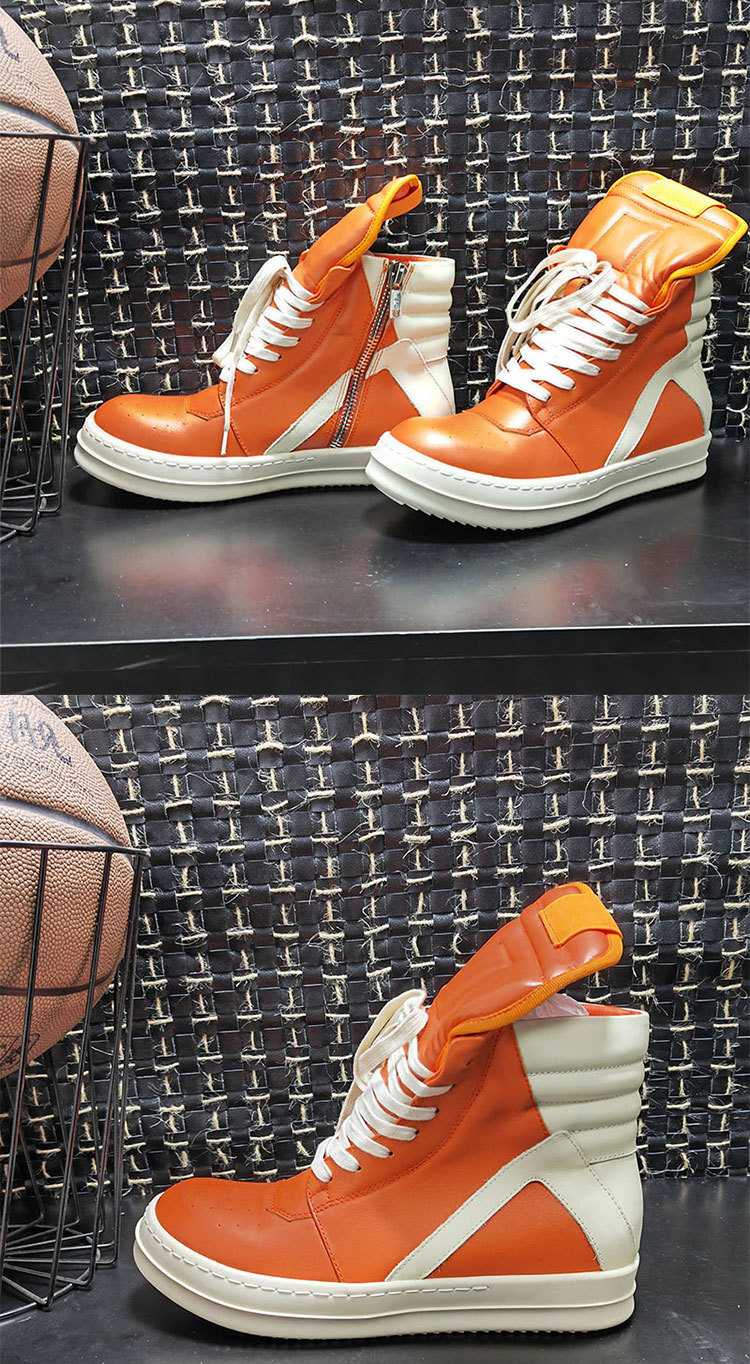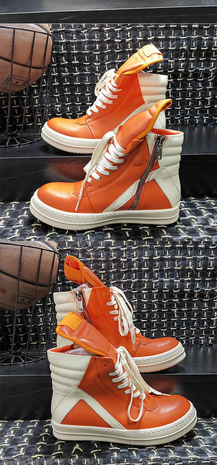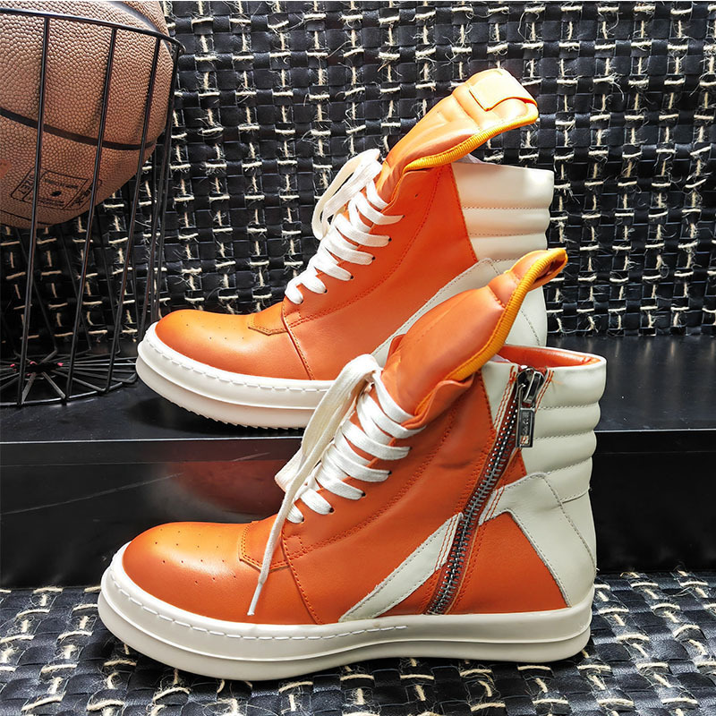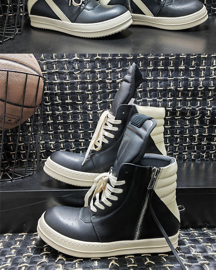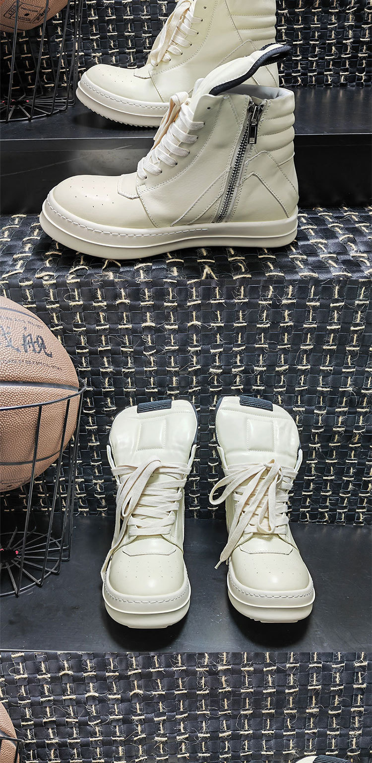 RO 클래식 얇은 바닥 역 삼각형 가을, 겨울 하이 탑 남성 신발 흑백 소 가죽 대형 유럽과 미국 스타일 캐주얼 커플 유행 스타일