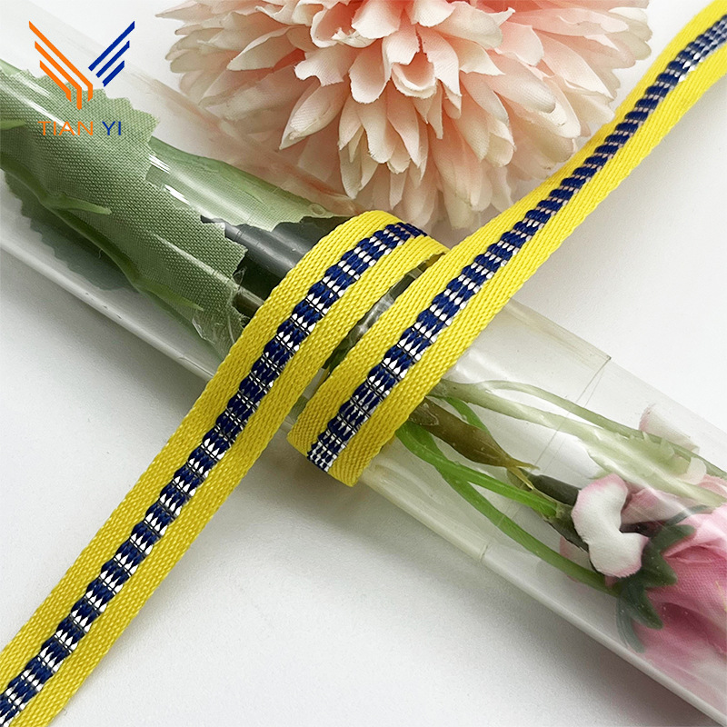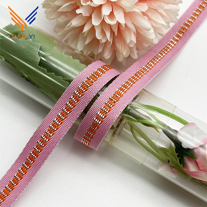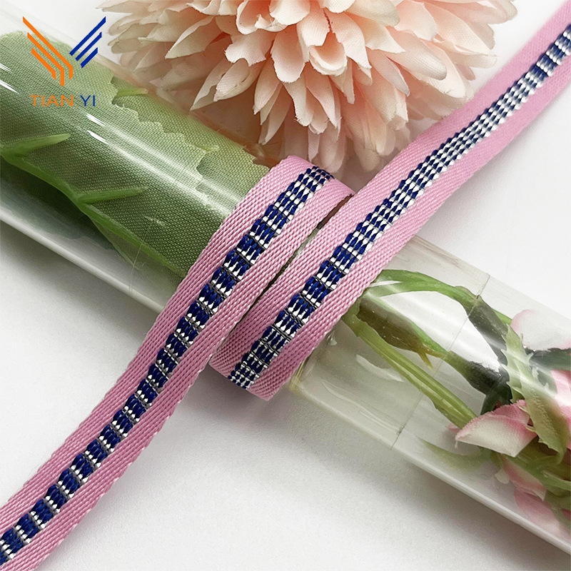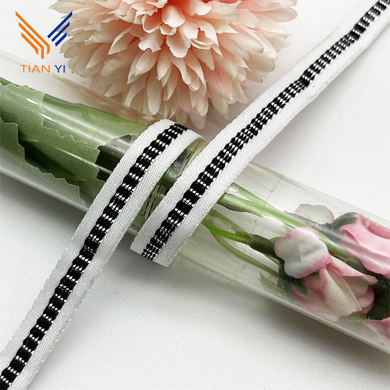 1cm 스트라이프 실버 인터 컬러 자카드 리본 홈 텍스타일 아동복 신발 및 모자 매달려 구슬 스트립 의류 액세서리 재고스토어 가기