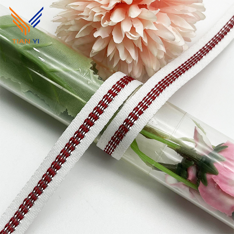 1cm 스트라이프 실버 인터 컬러 자카드 리본 홈 텍스타일 아동복 신발 및 모자 매달려 구슬 스트립 의류 액세서리 재고