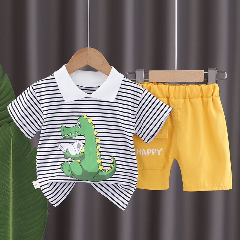아동 의류 소년 반팔 세트 2023 새로운 양식 폴로 셔츠 공룡 옷깃 어린이 여름 유행 의류스토어 가기