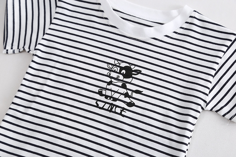 소년 여름 아기 스트라이프 짧은 소매 2023 new 0 1-3 반 어린이 데님 스트랩 반바지 세트