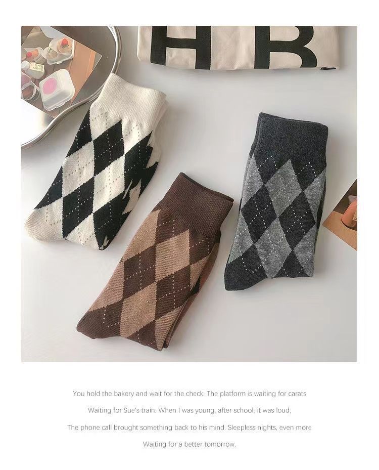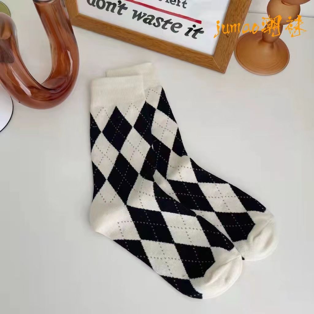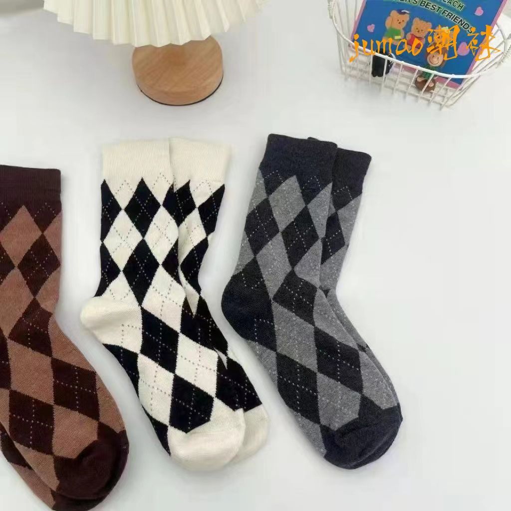 양말 여성용 봄과 가을 중간 길이 스타킹 일본식 다이아몬드 스타일 레트로 아카데믹 스타일 격자 무늬 스타킹 Instagram 인기있는 한국식 스타킹 여성