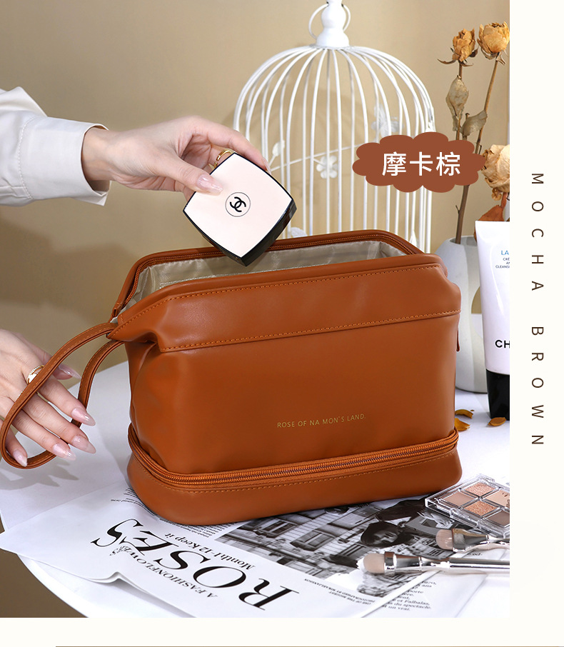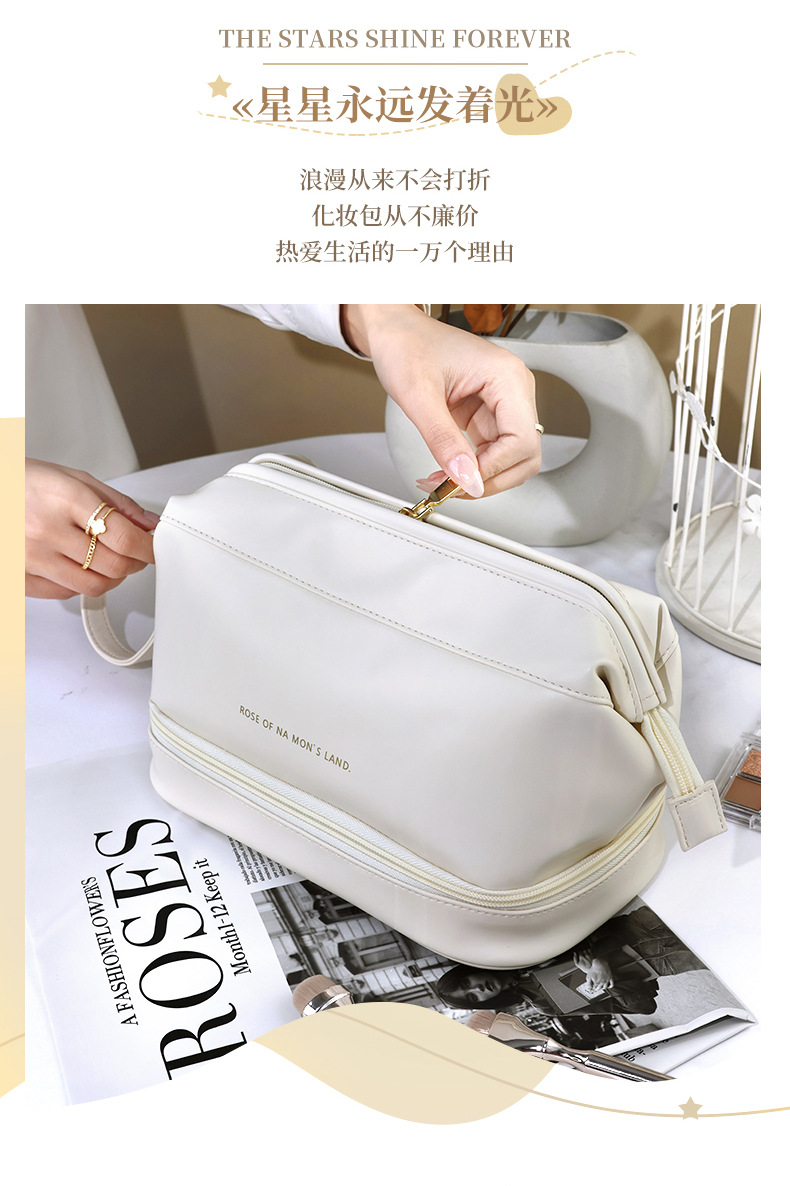 여성용 더블 레이어 클라우드 화장품 가방, 휴대용 여행용 PU 대용량 세면 용품 가방, 고급 고가 화장품 보관 가방스토어 가기