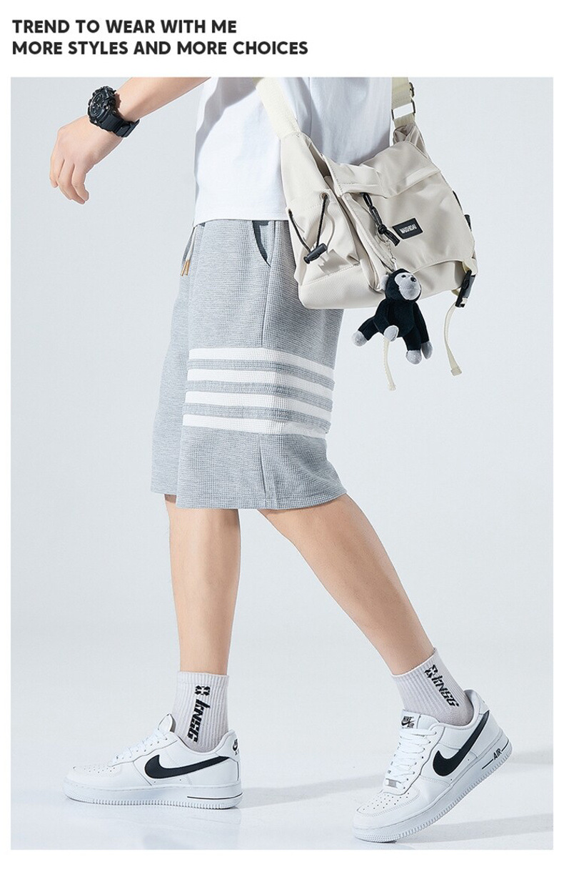와플 캐주얼 남성 반바지 여름 스포츠 바지 오프 웨어 바지 단색 농구 바지 반바지