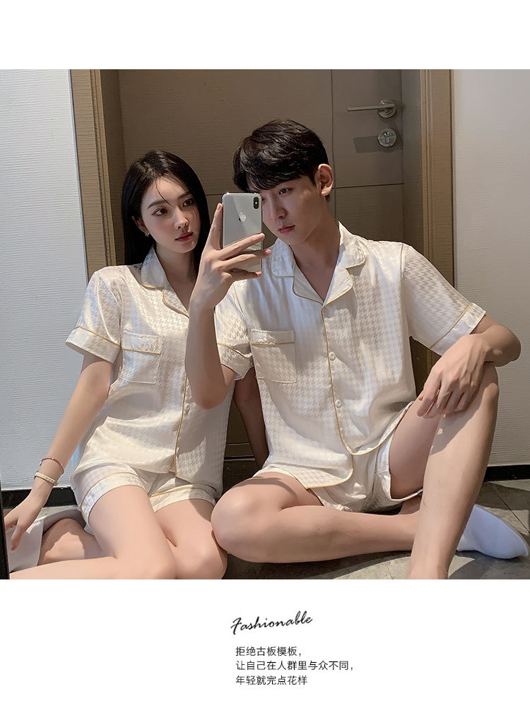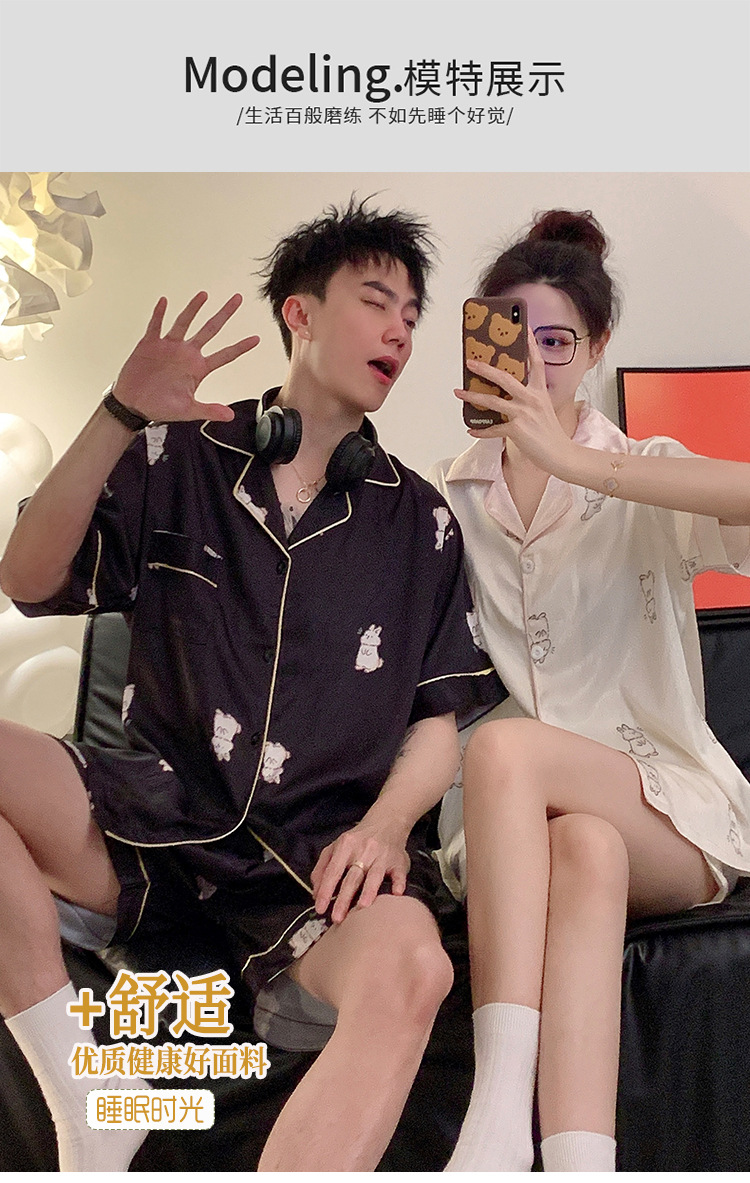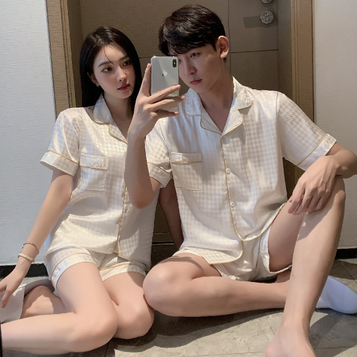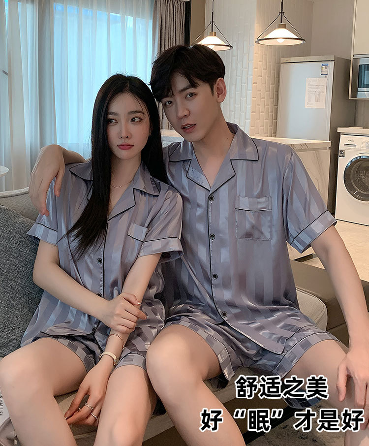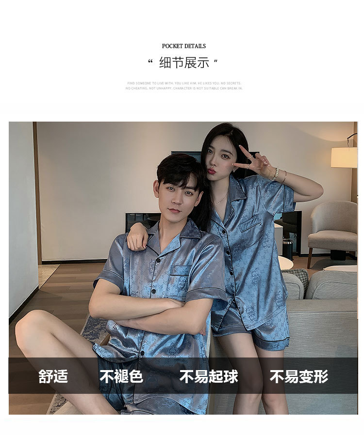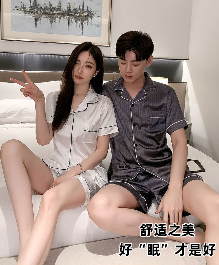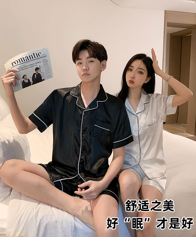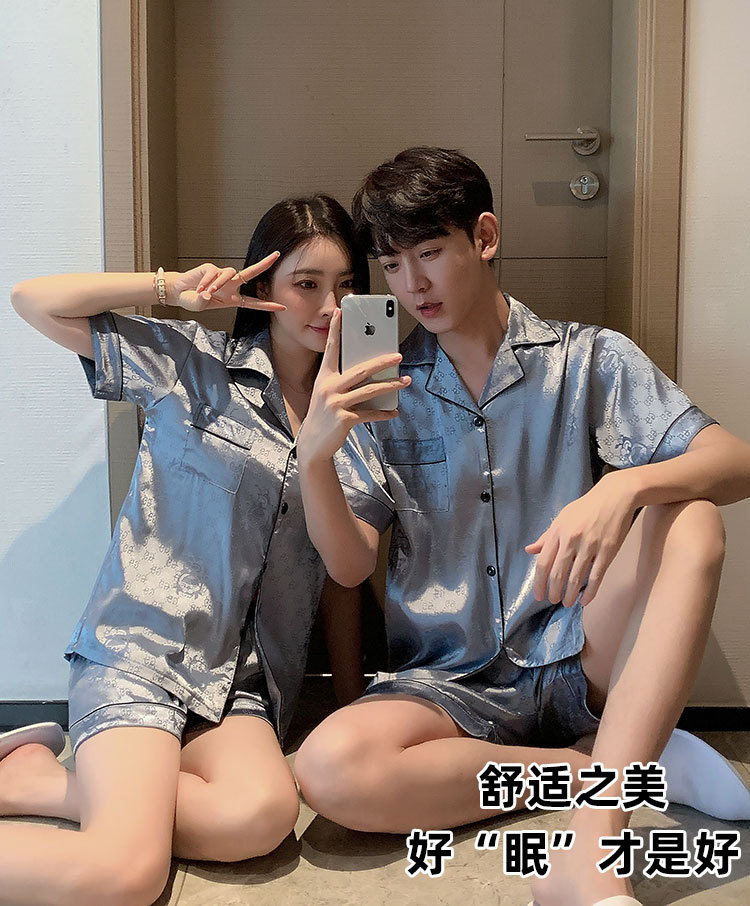 커플 잠옷 여성용 여름 아이스 실크 반팔 2024 신상 여름 남성용 실크 플러스 사이즈 홈웨어 세트스토어 가기