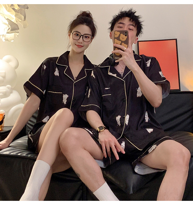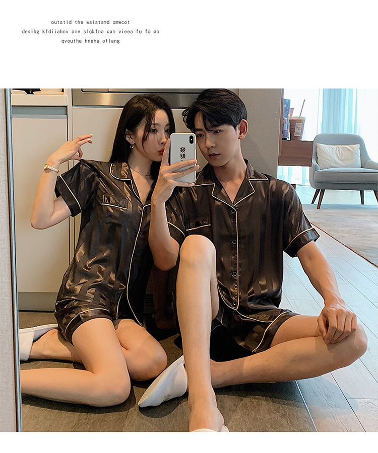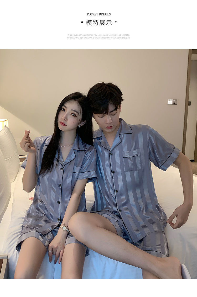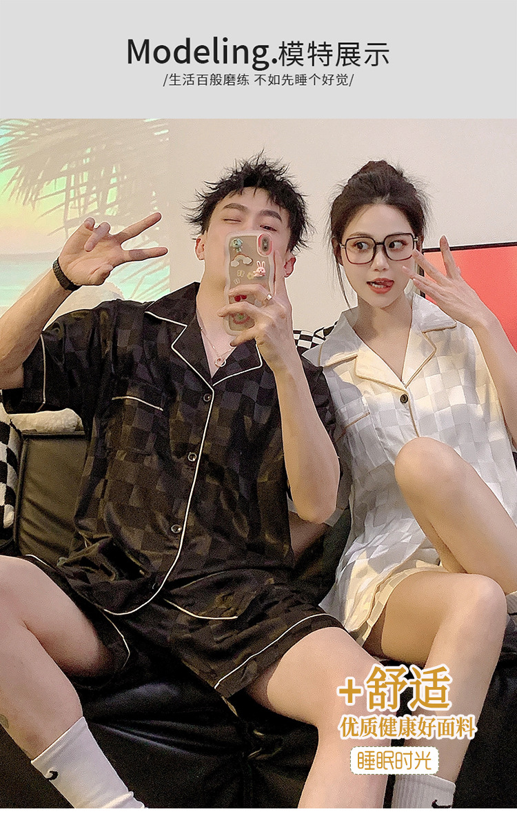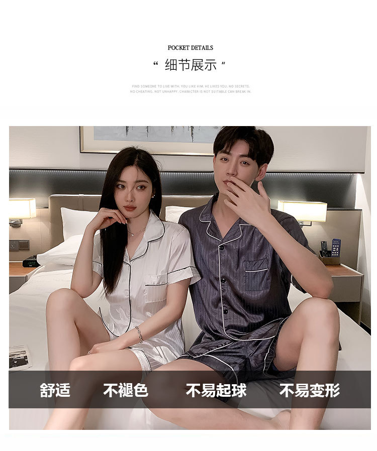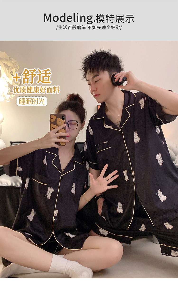 커플 잠옷 여성용 여름 아이스 실크 반팔 2024 신상 여름 남성용 실크 플러스 사이즈 홈웨어 세트스토어 가기