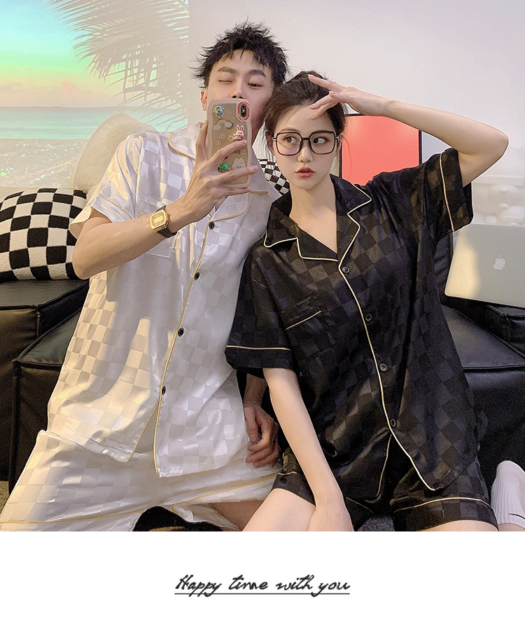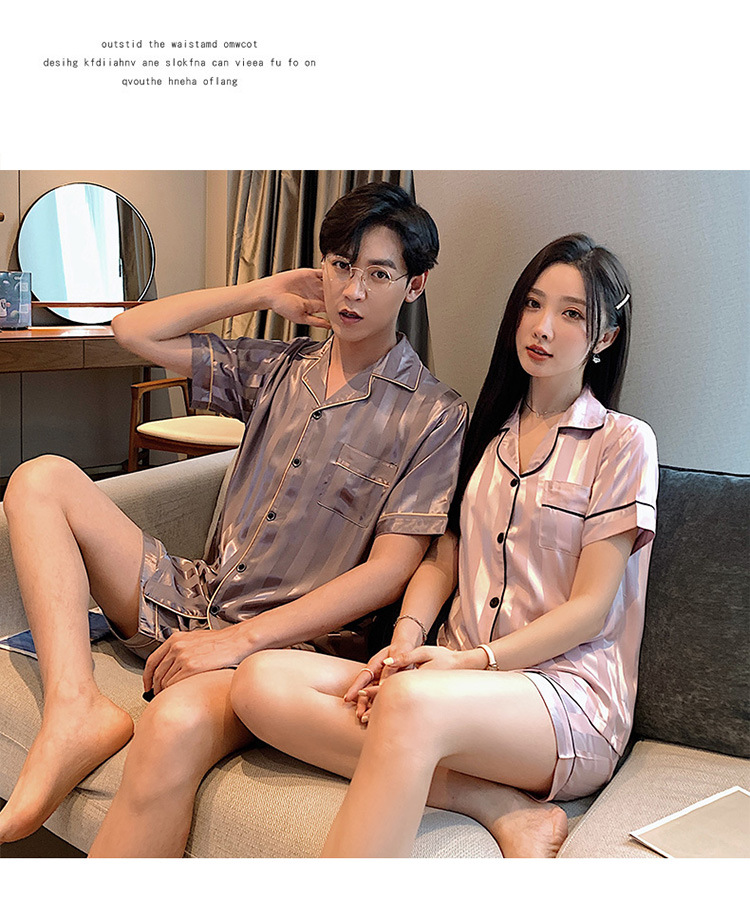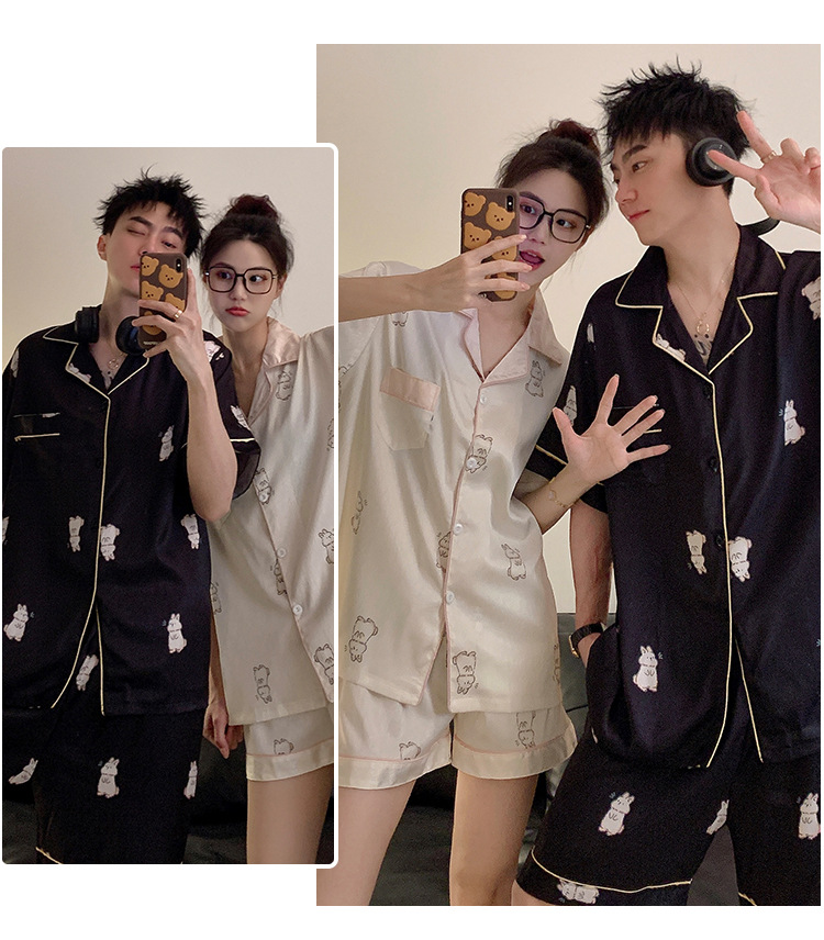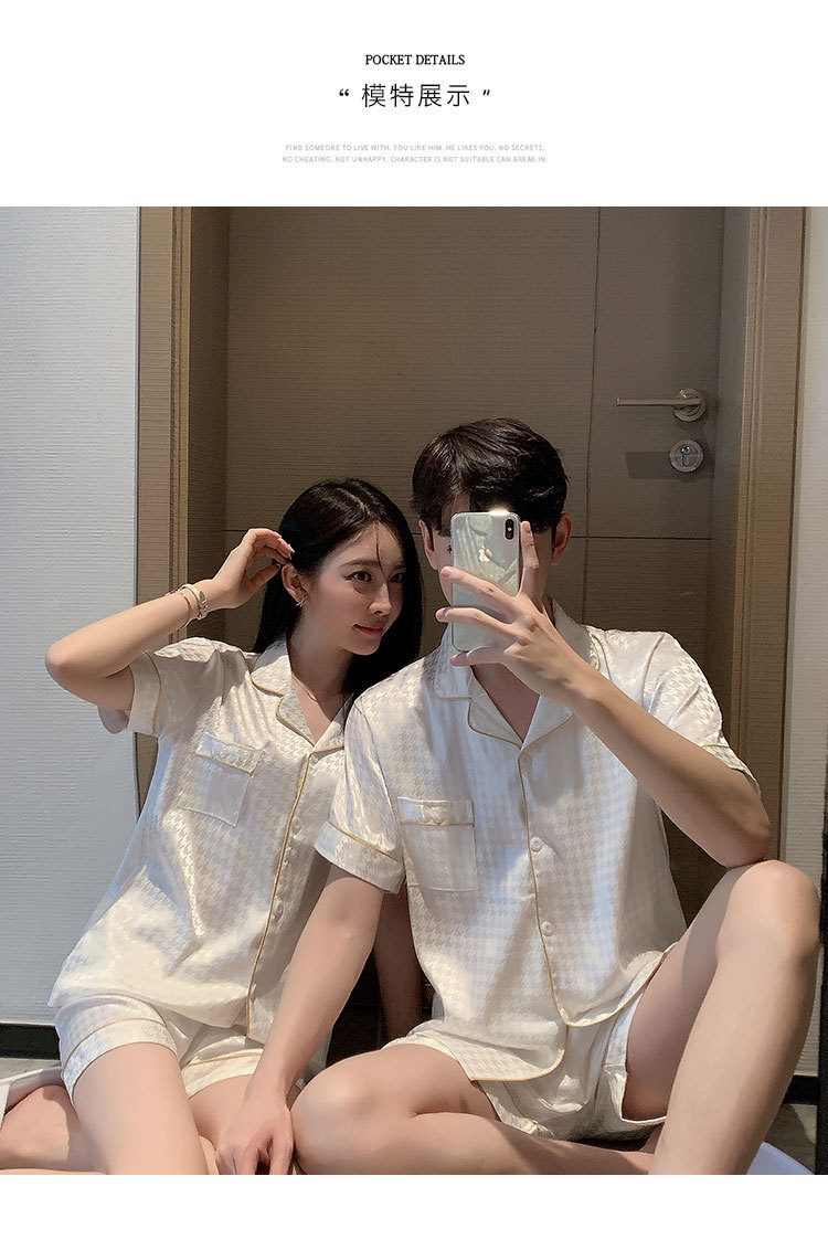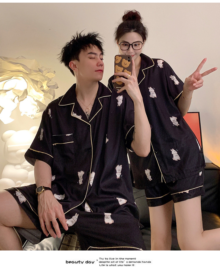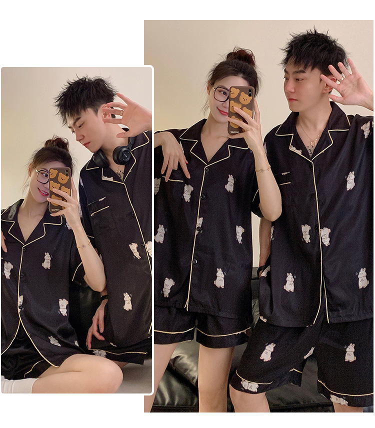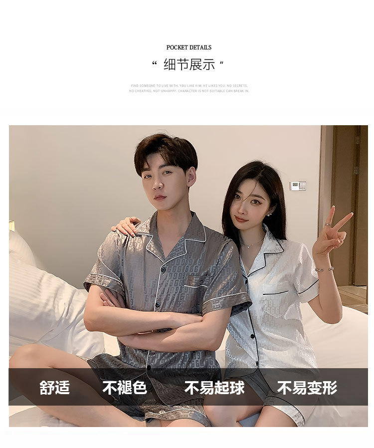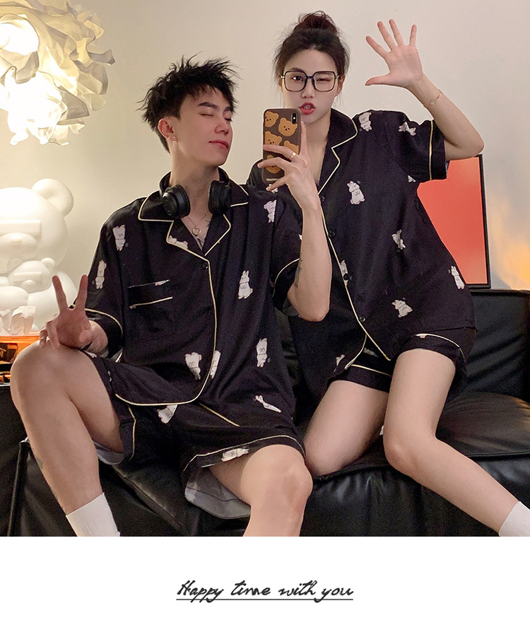 커플 잠옷 여성용 여름 아이스 실크 반팔 2024 신상 여름 남성용 실크 플러스 사이즈 홈웨어 세트스토어 가기