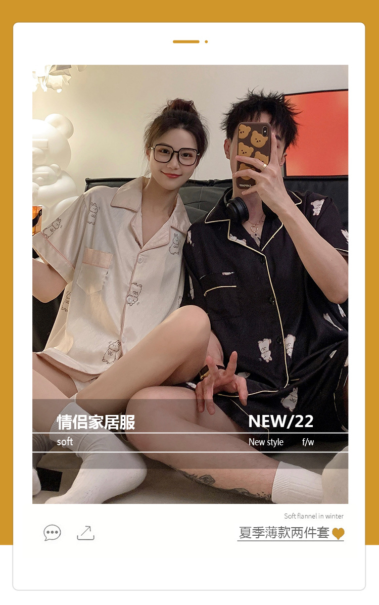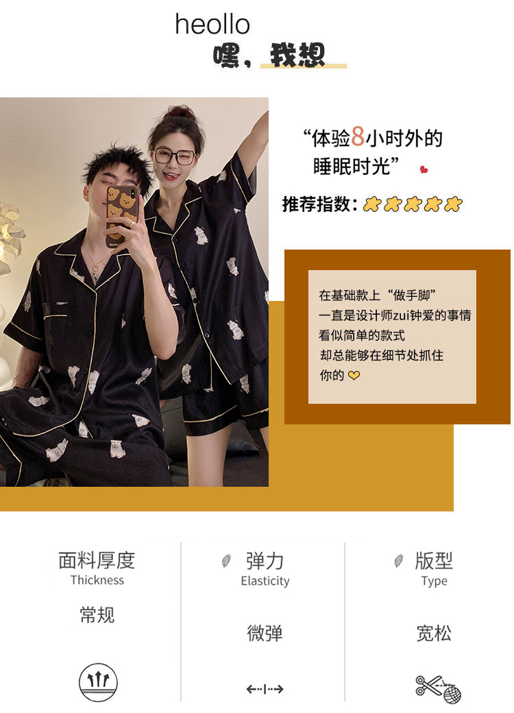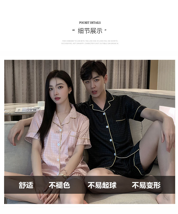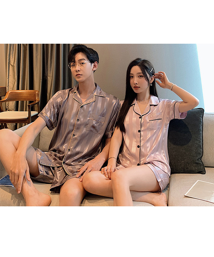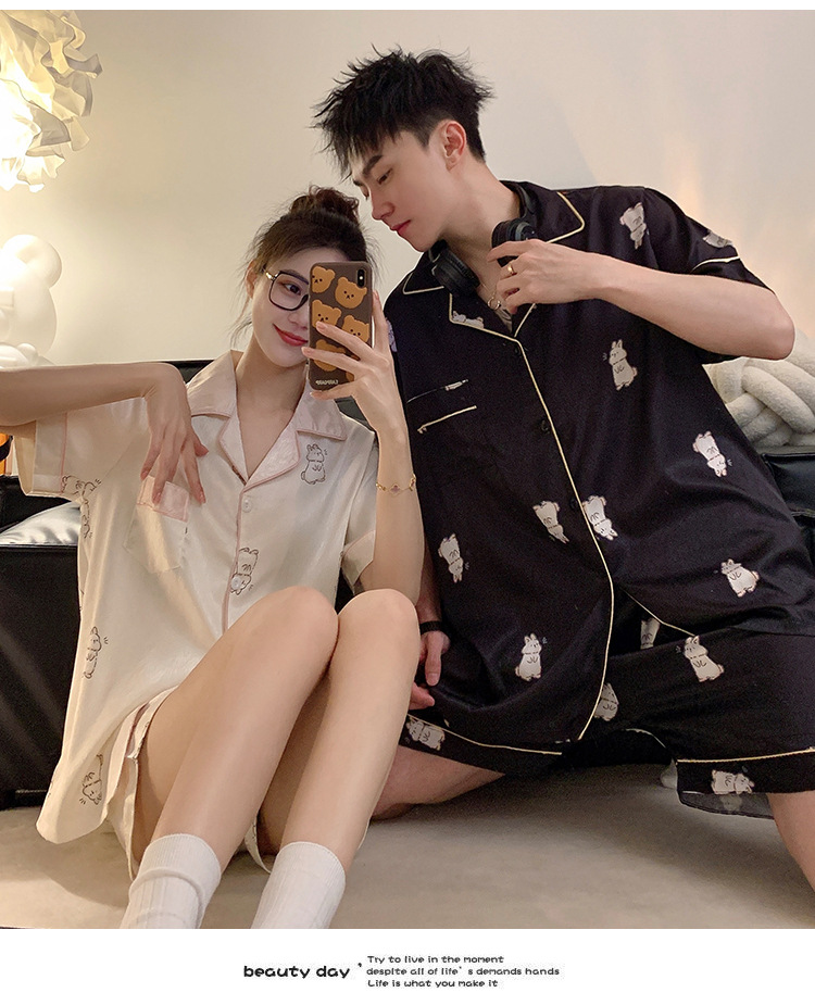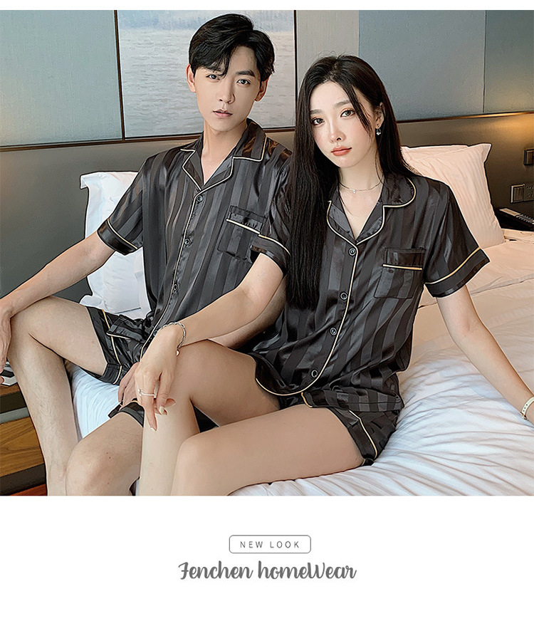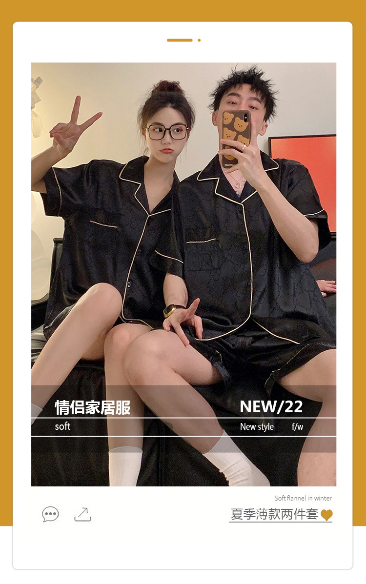 커플 잠옷 여성용 여름 아이스 실크 반팔 2024 신상 여름 남성용 실크 플러스 사이즈 홈웨어 세트스토어 가기