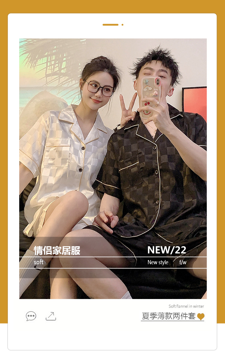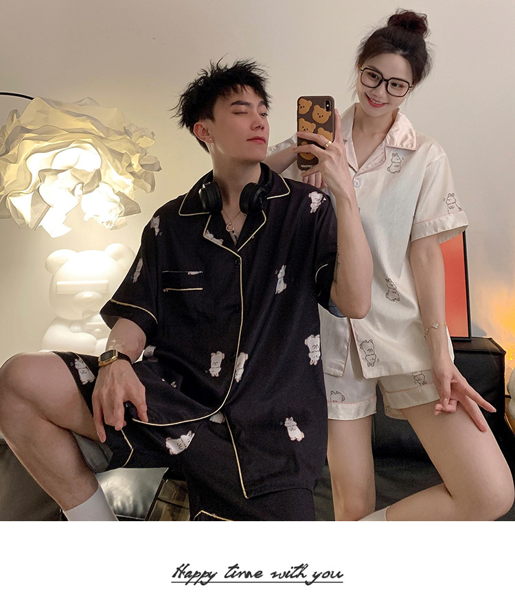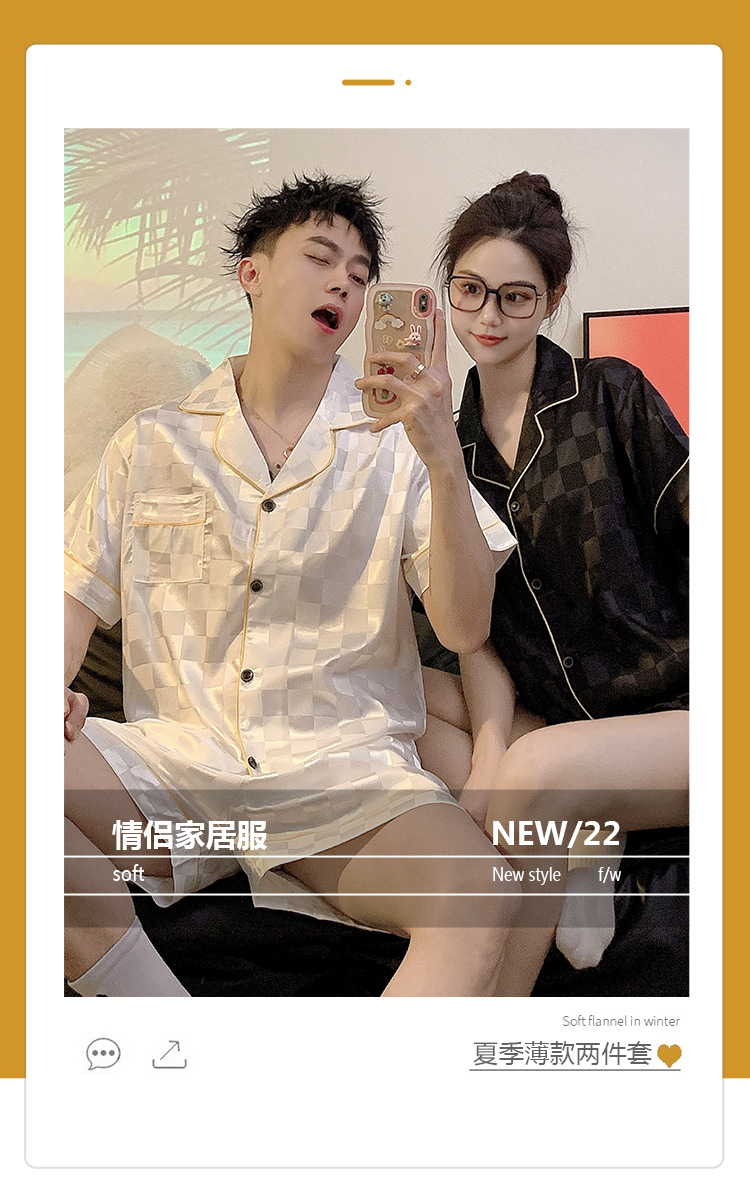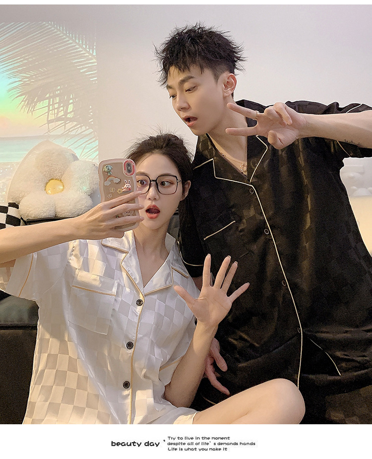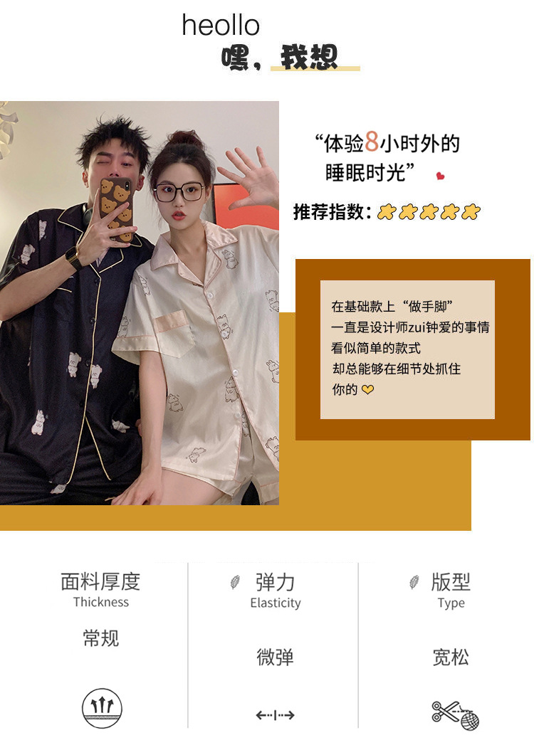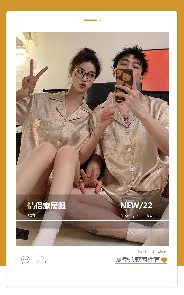 커플 잠옷 여성용 여름 아이스 실크 반팔 2024 신상 여름 남성용 실크 플러스 사이즈 홈웨어 세트스토어 가기