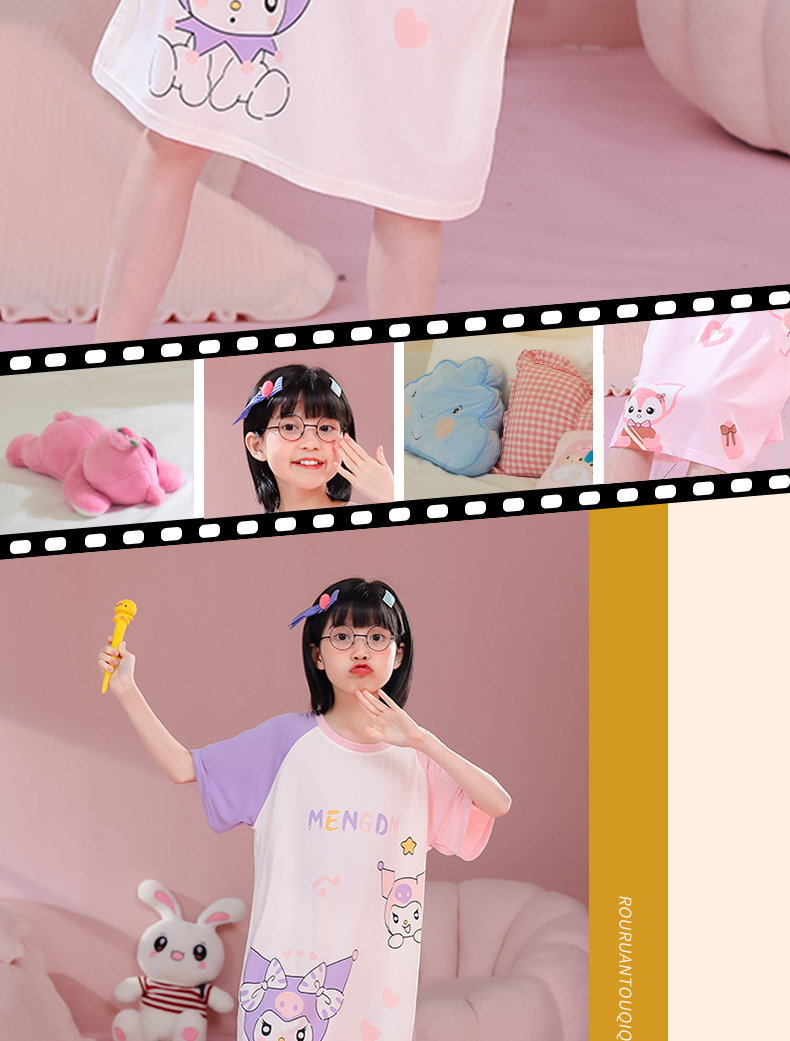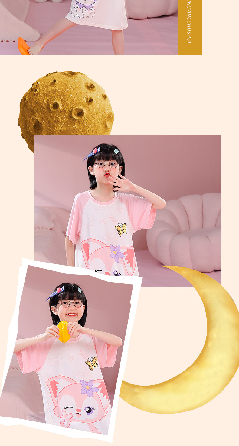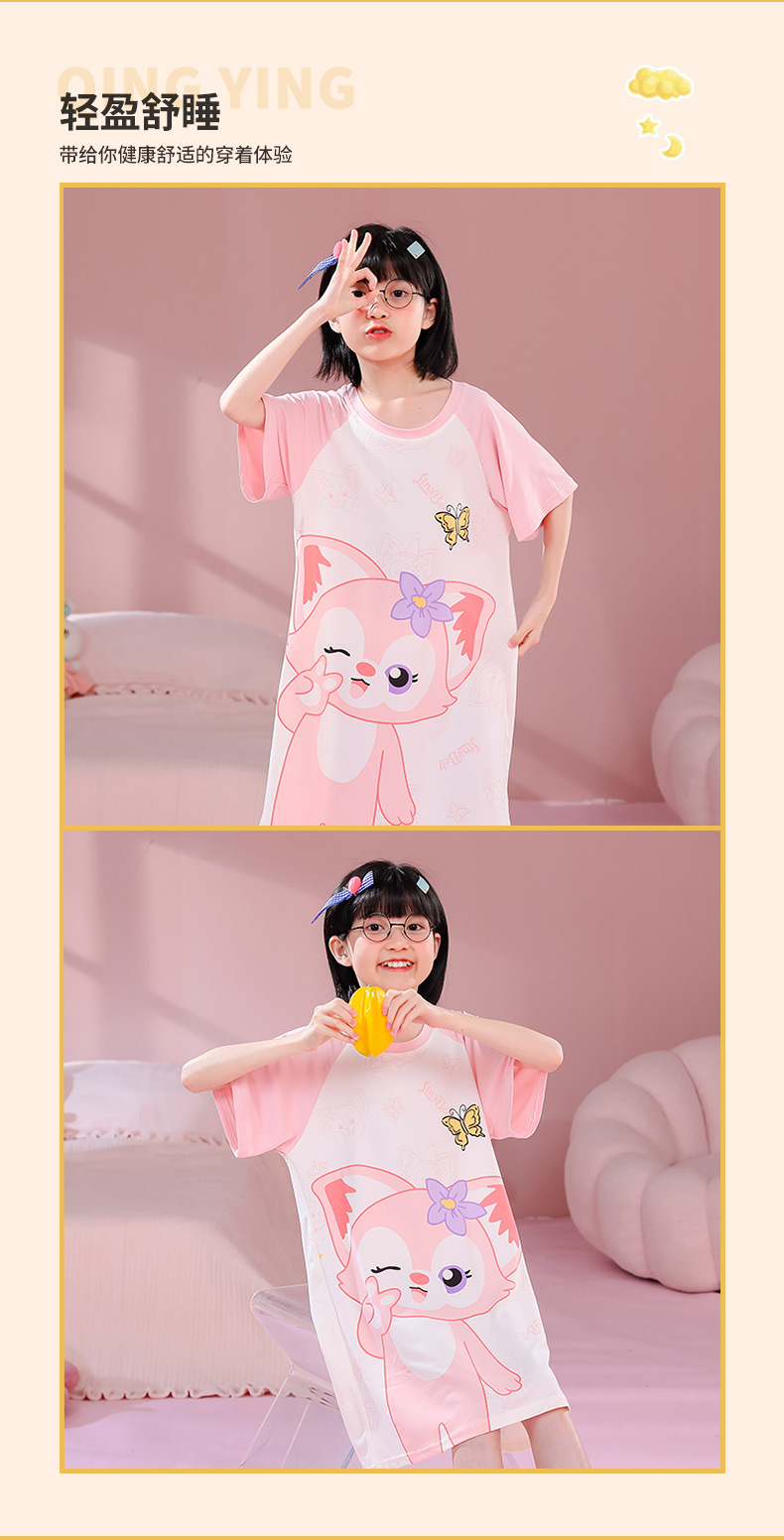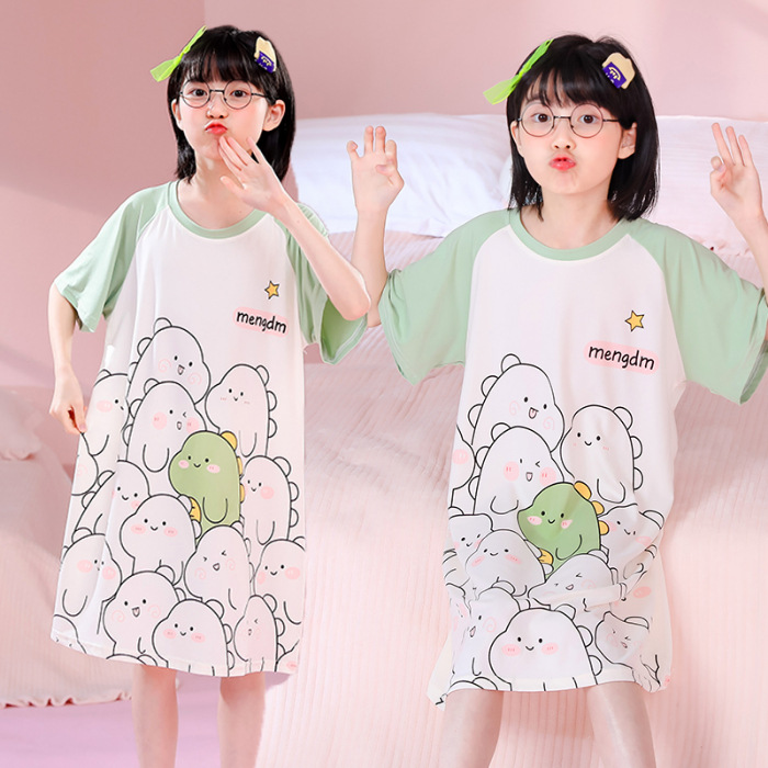 어린이 잠옷 Kulomi 여름 소녀 반팔 귀여운 만화 어린이 잠옷 원피스 큰 어린이 에어컨 옷스토어 가기