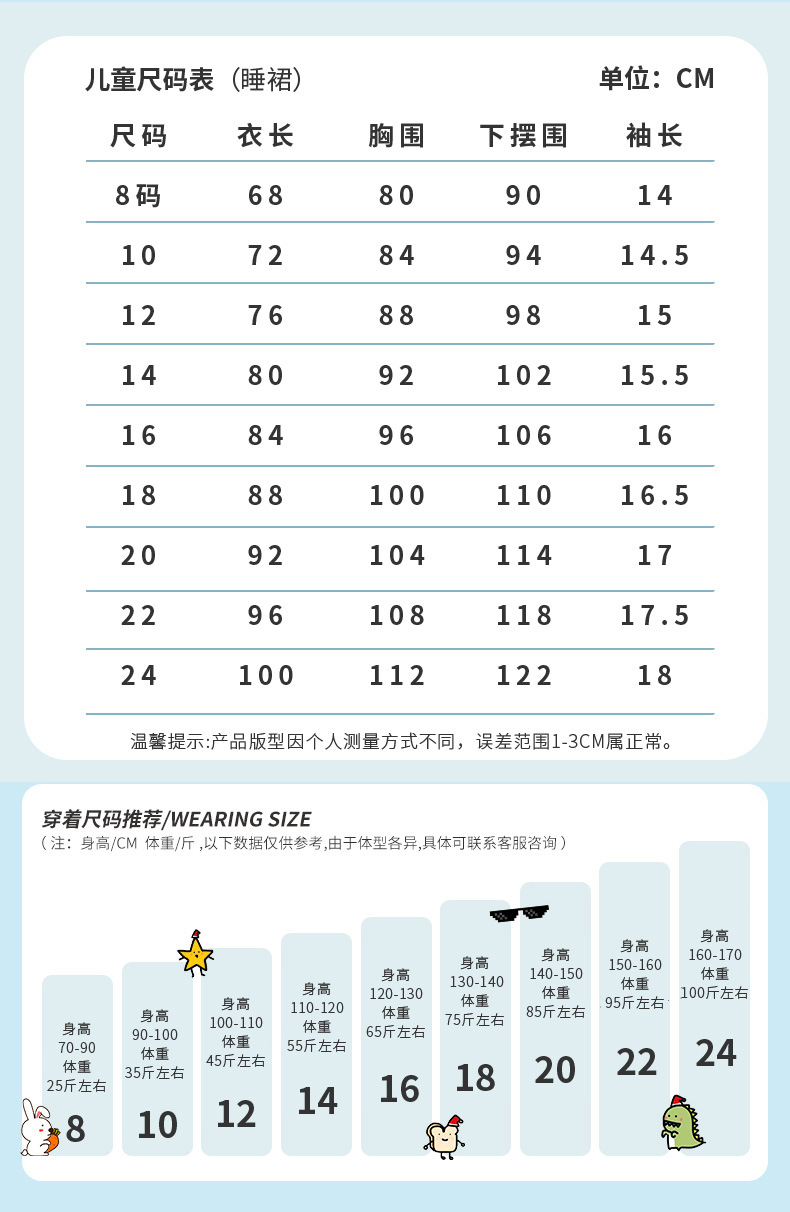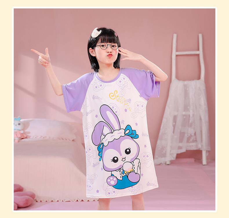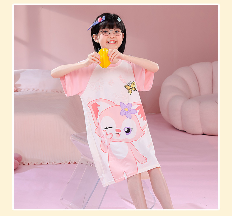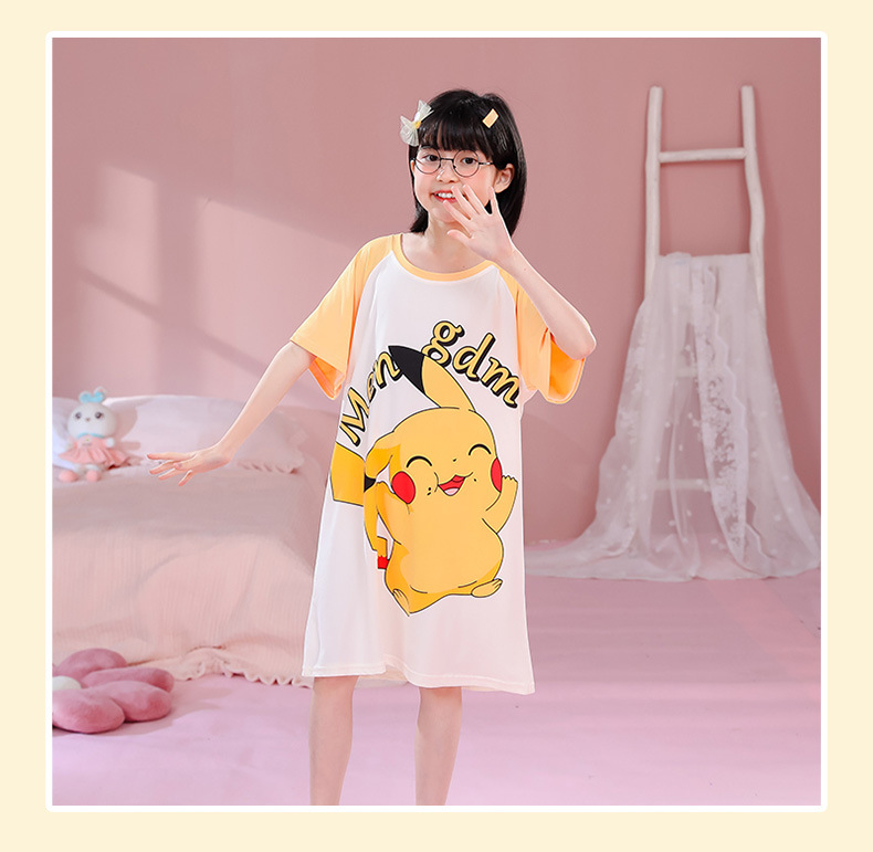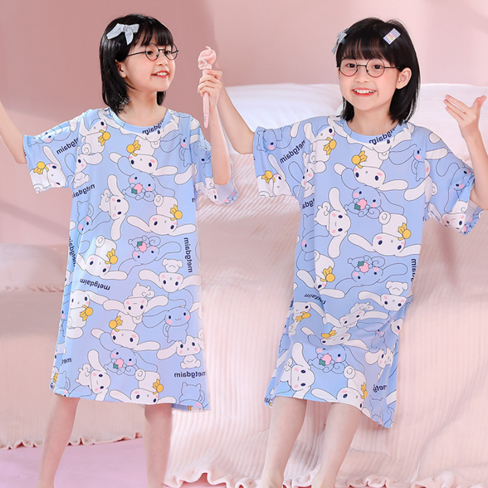 어린이 잠옷 Kulomi 여름 소녀 반팔 귀여운 만화 어린이 잠옷 원피스 큰 어린이 에어컨 옷스토어 가기