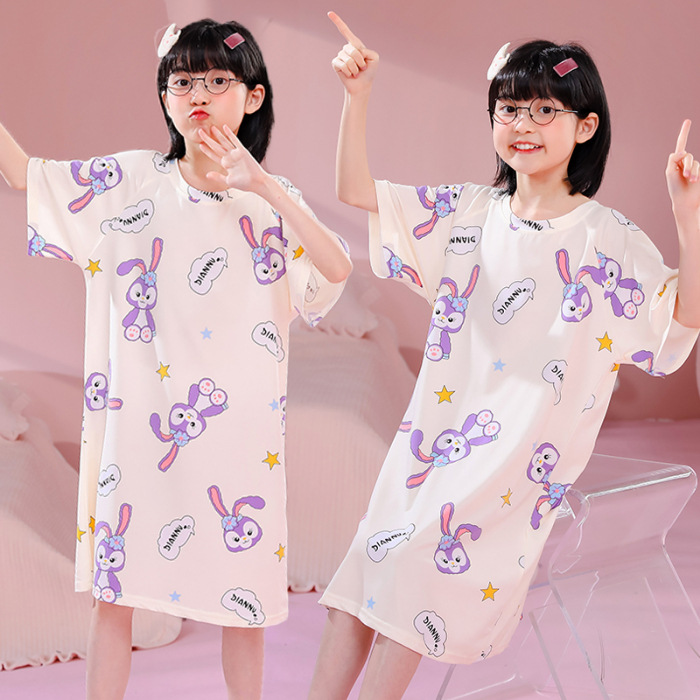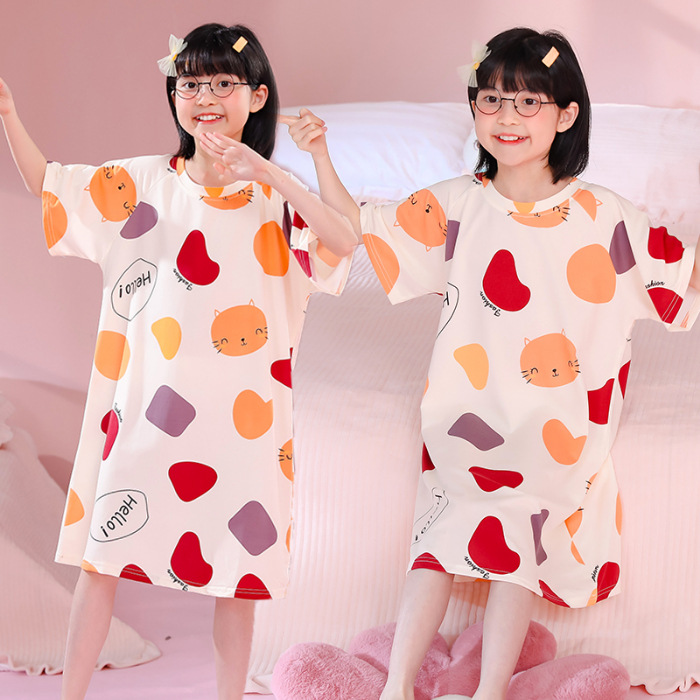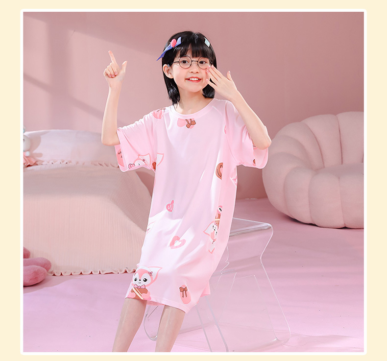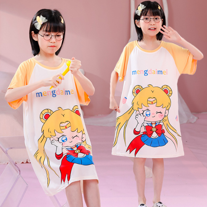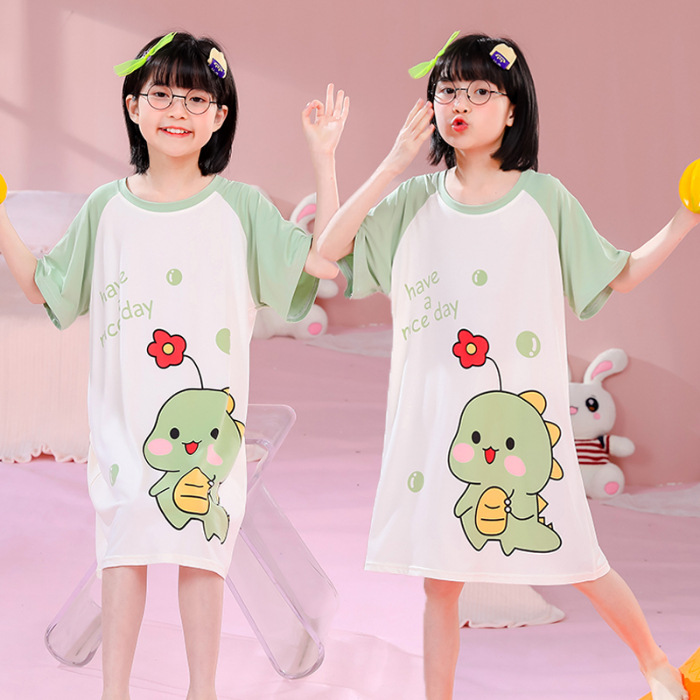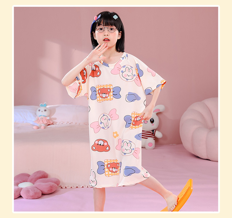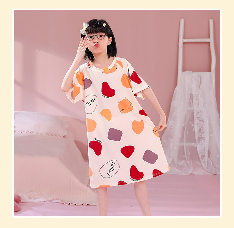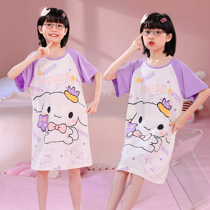 어린이 잠옷 Kulomi 여름 소녀 반팔 귀여운 만화 어린이 잠옷 원피스 큰 어린이 에어컨 옷