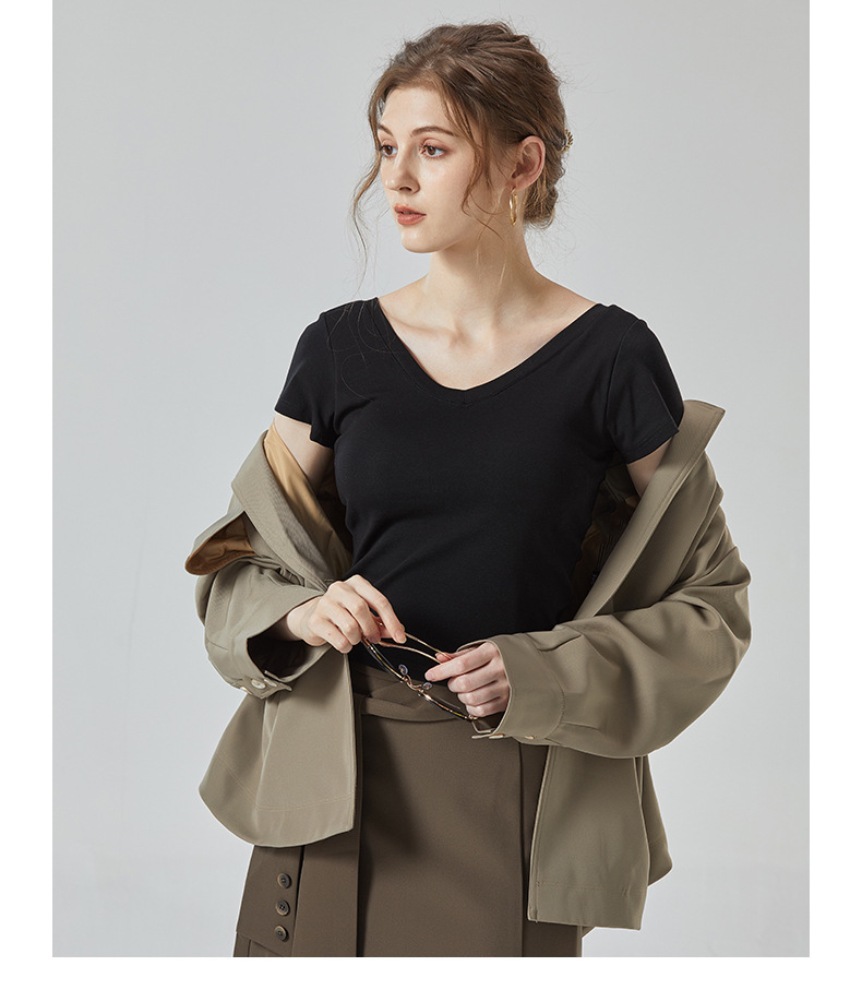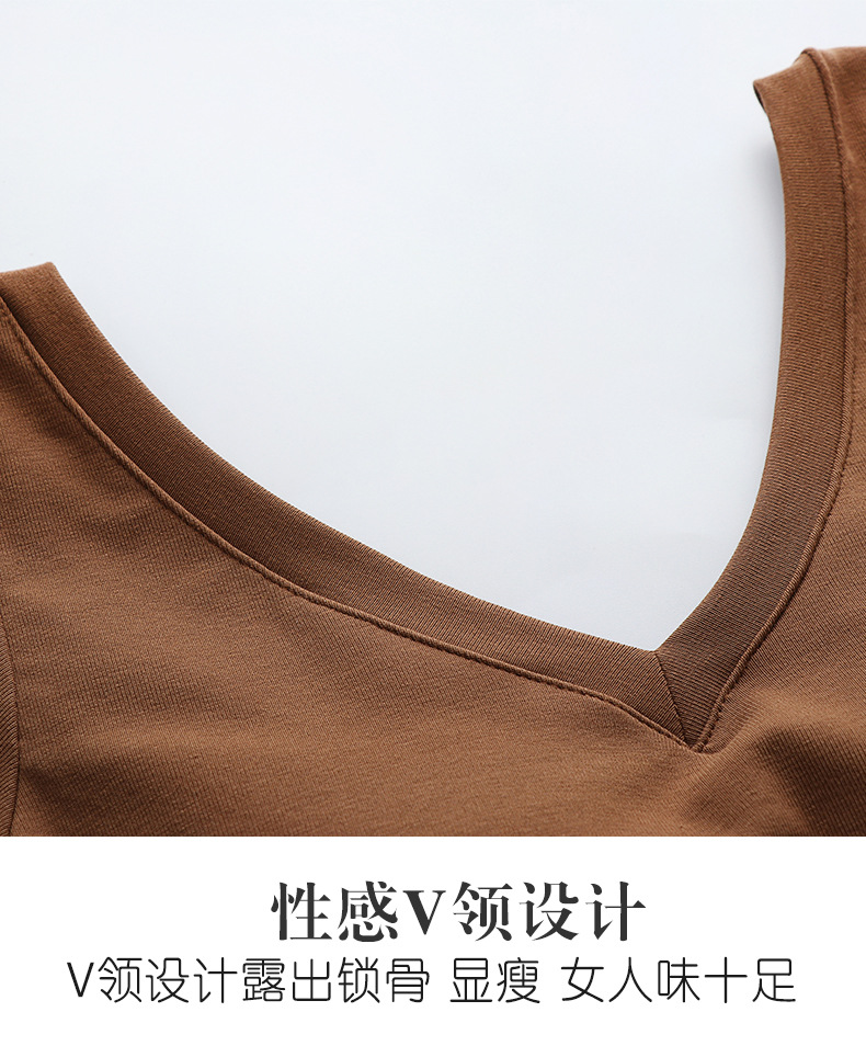 웨어 프리 브라 브이넥 반팔 티셔츠 여성용 퓨어 코튼 벨트 가슴 패드 컵 원피스 스몰 아름다운 등 슬림핏 여름 탑