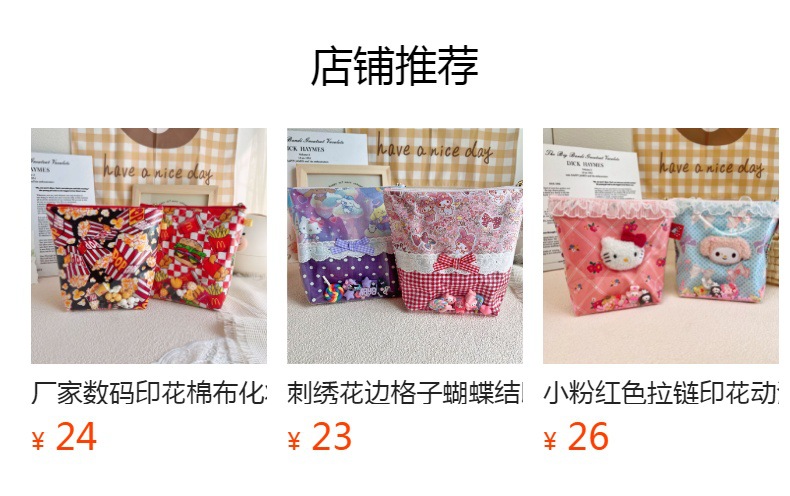 수제 어린 소녀 인형 투명 퀵 샌드 가방 디지털 인쇄 면 화장품 가방 매일 일치하는 저장 가방 도매스토어 가기