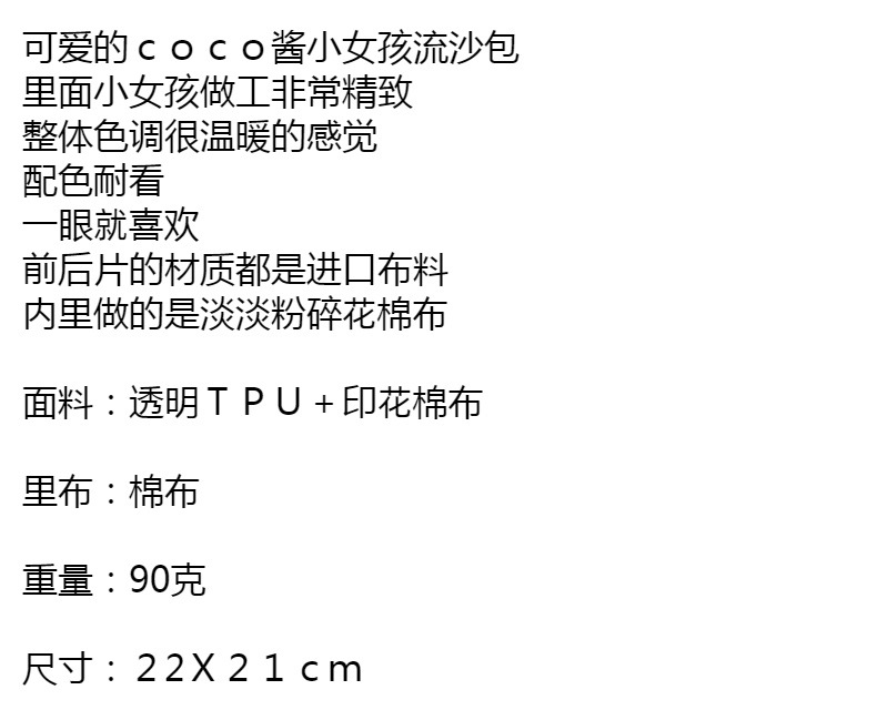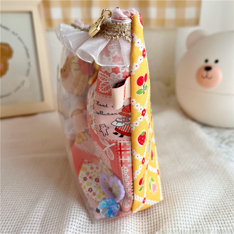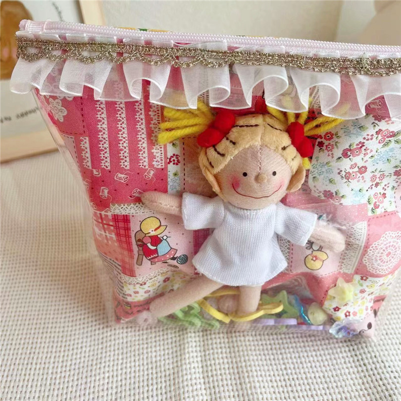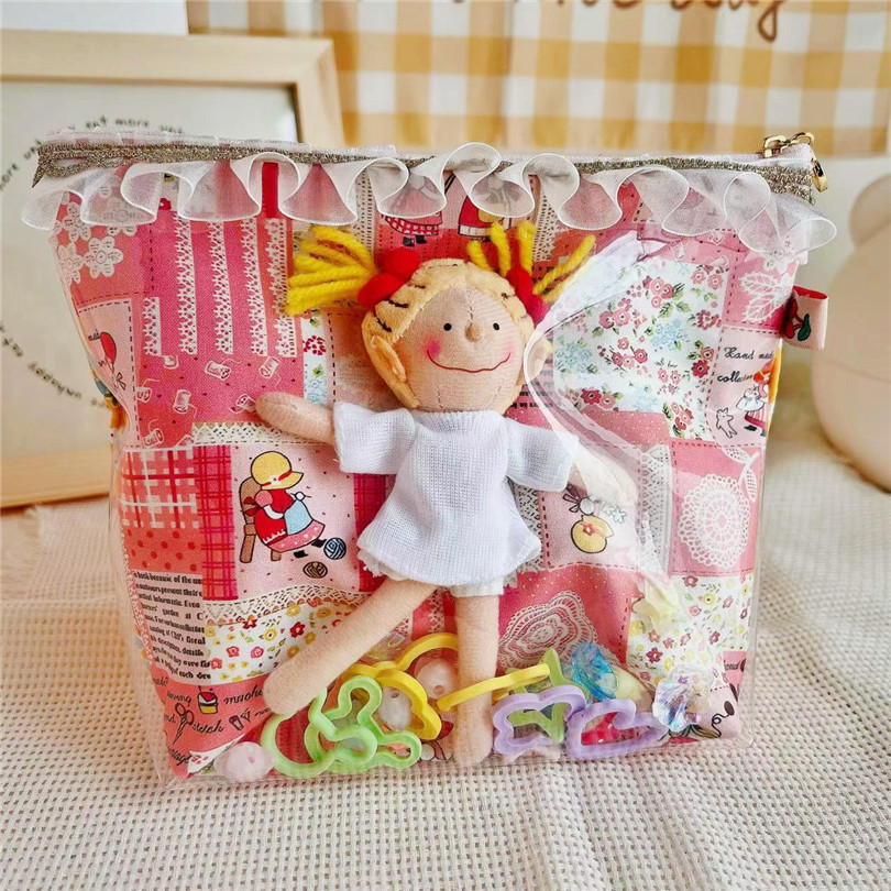 수제 어린 소녀 인형 투명 퀵 샌드 가방 디지털 인쇄 면 화장품 가방 매일 일치하는 저장 가방 도매