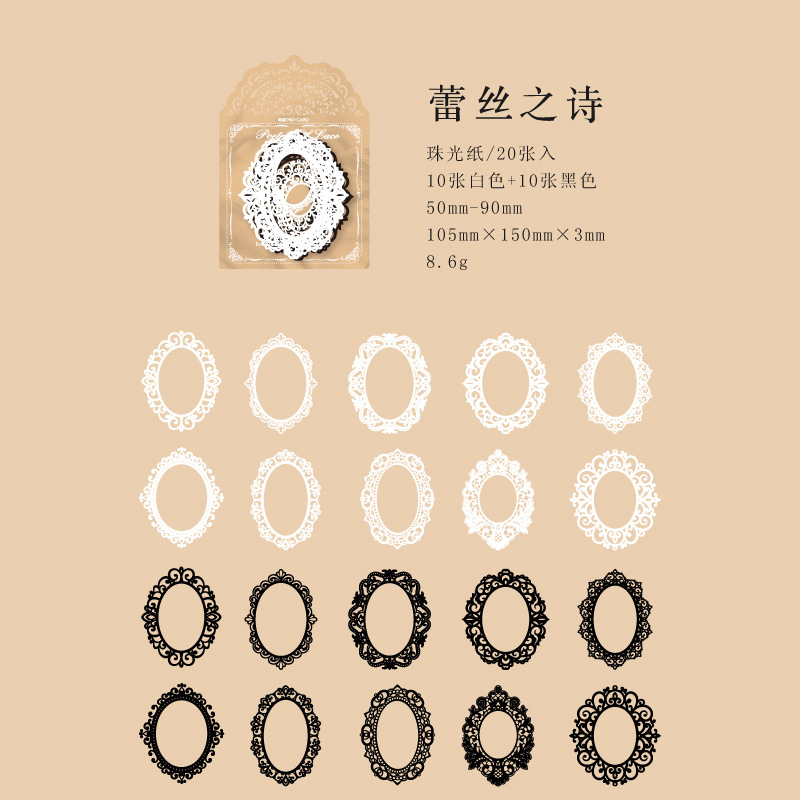 모 모 영감 엠보싱 시리즈 레이스 종이 복고풍 예술적 세공 콜라주 핸드북 DIY 장식 재료 카드