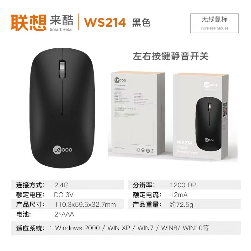 국경 간 멋진 WS214 무선 마우스 비즈니스 사무실 전력 절약 노트북 데스크톱 컴퓨터 게임 휴대용 도매스토어 가기