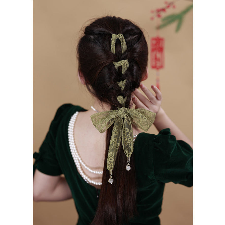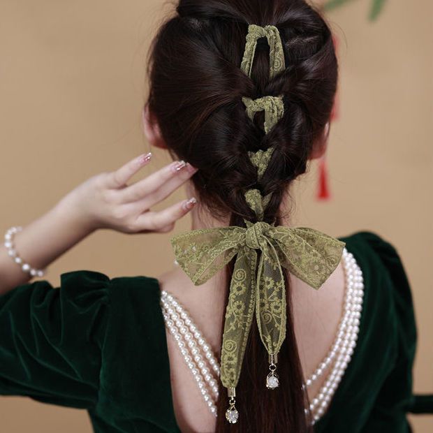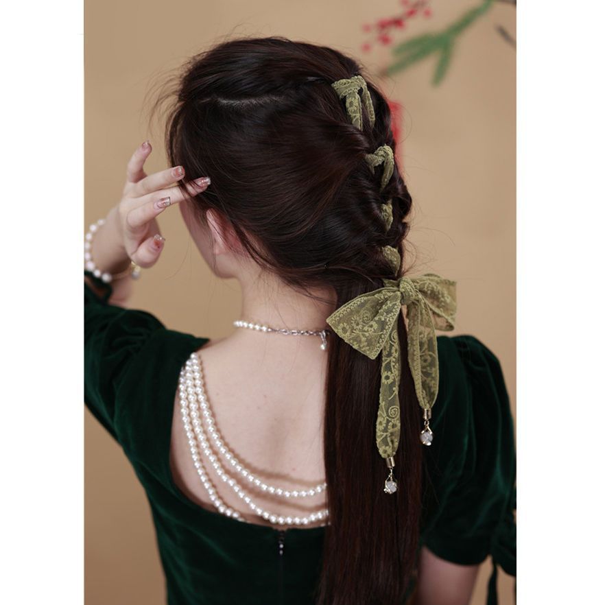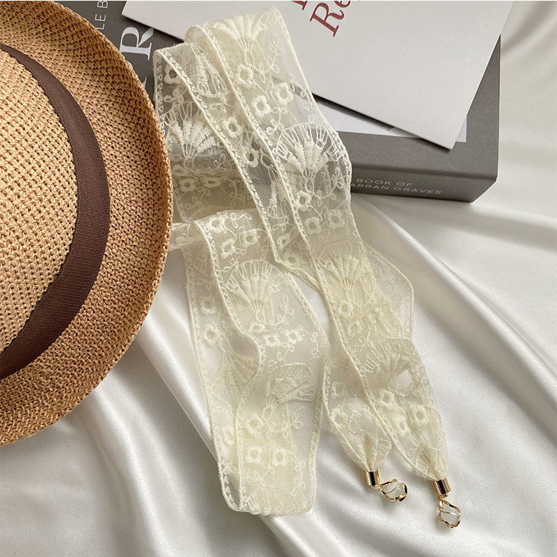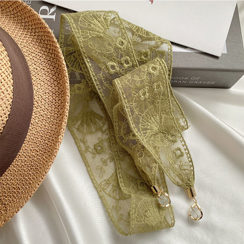 한국 레이스 벨트 녹색 리본 장식 스카프 작은 스카프 머리 벨트 긴 얇은 좁은 펜던트 목걸이 스카프 여성