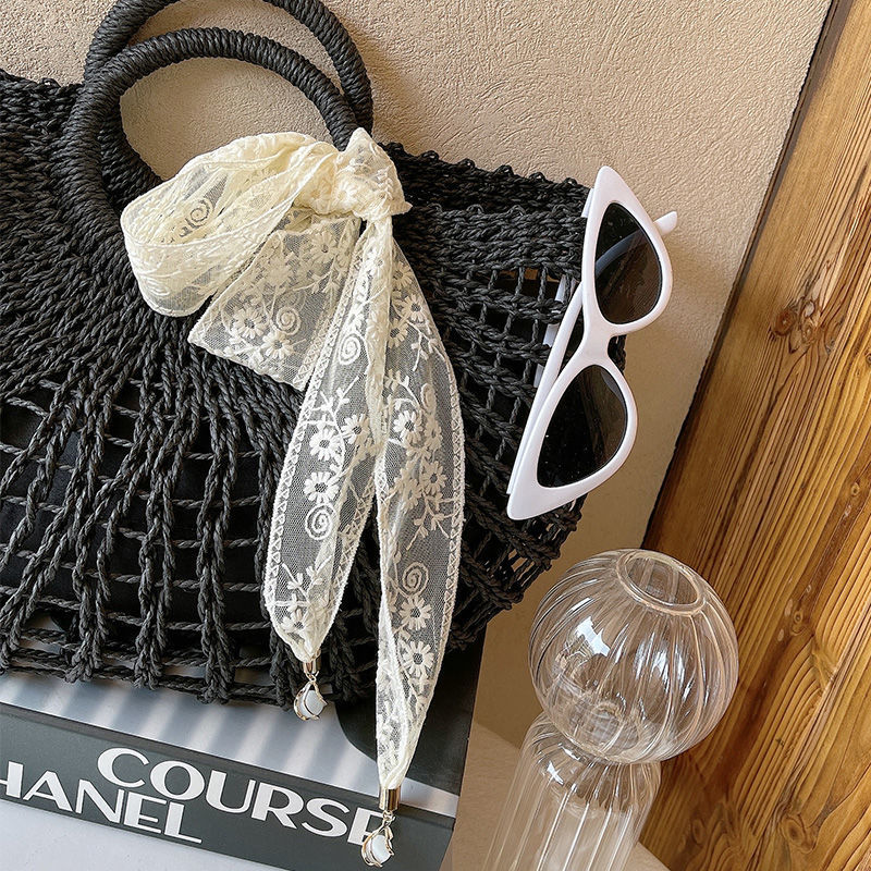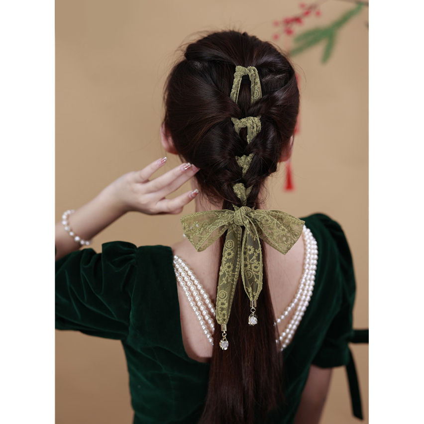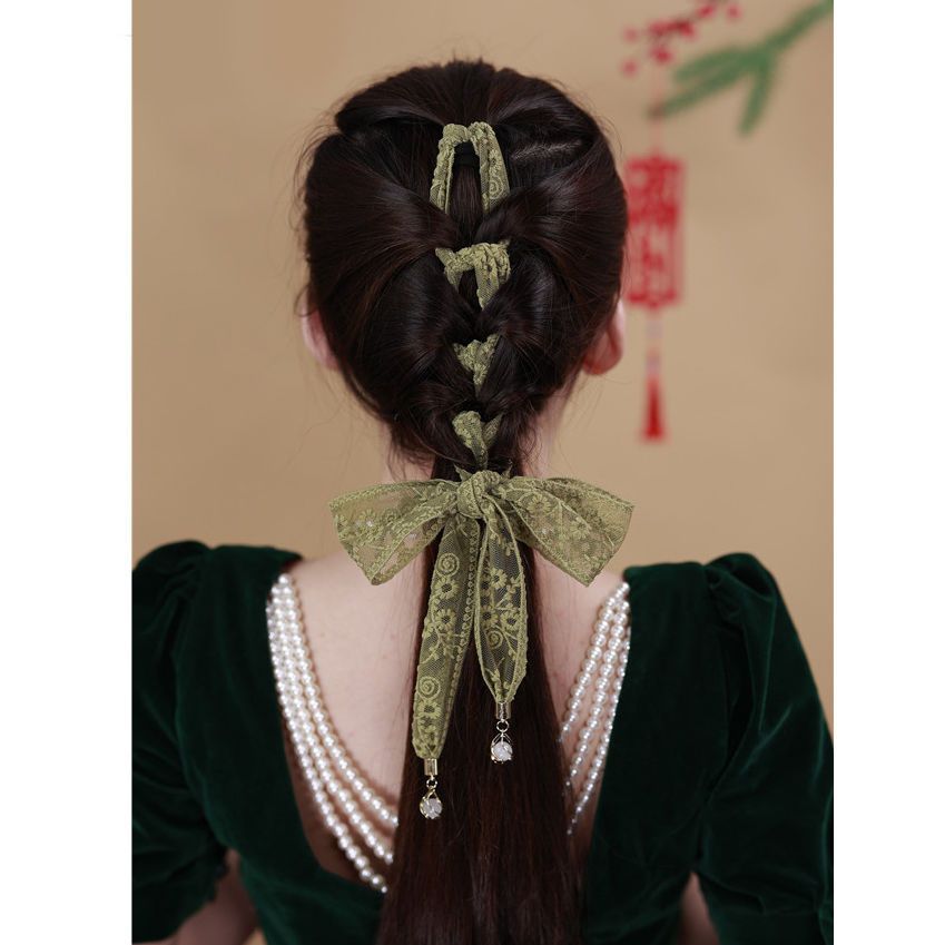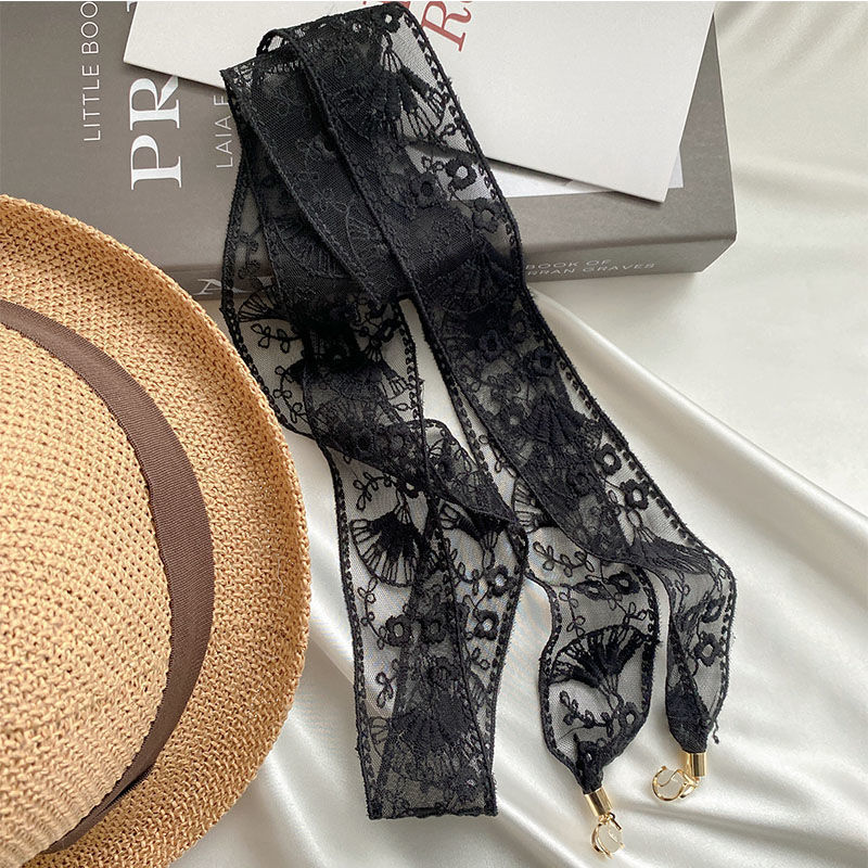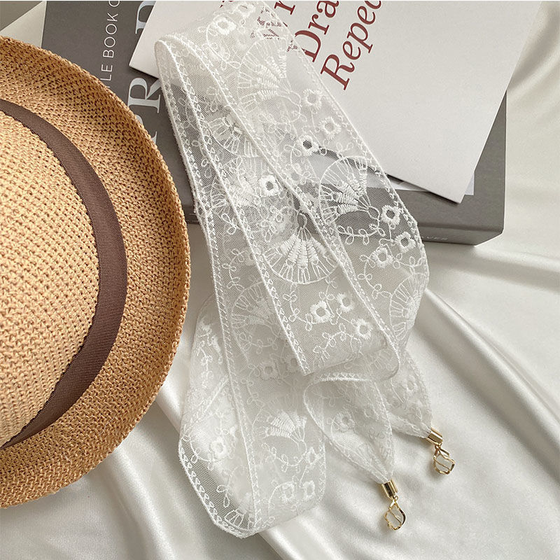 한국 레이스 벨트 녹색 리본 장식 스카프 작은 스카프 머리 벨트 긴 얇은 좁은 펜던트 목걸이 스카프 여성