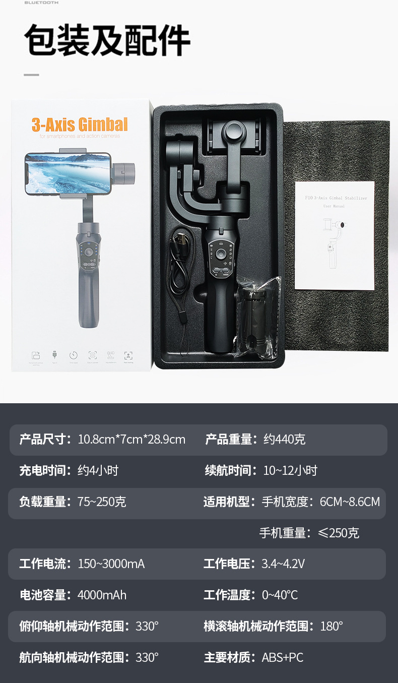 F10pro 휴대용 3축 짐벌 안정기, 흔들림 방지, 인터넷 연예인 라이브 방송, 축 방진 촬영, 브이로그 필수품스토어 가기