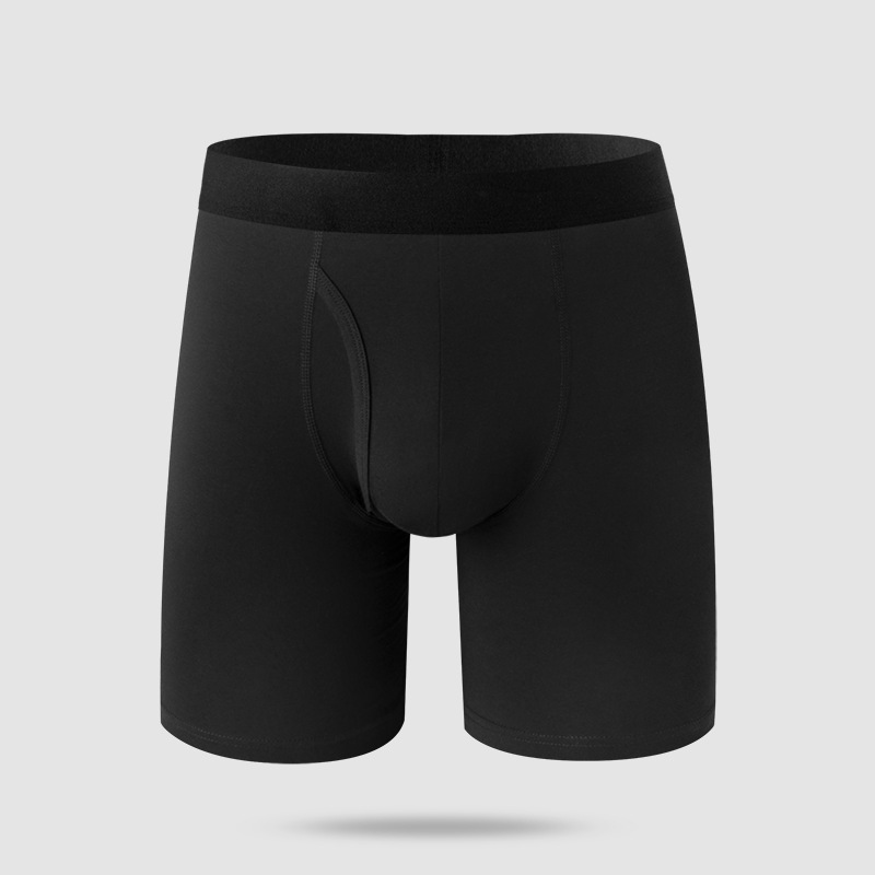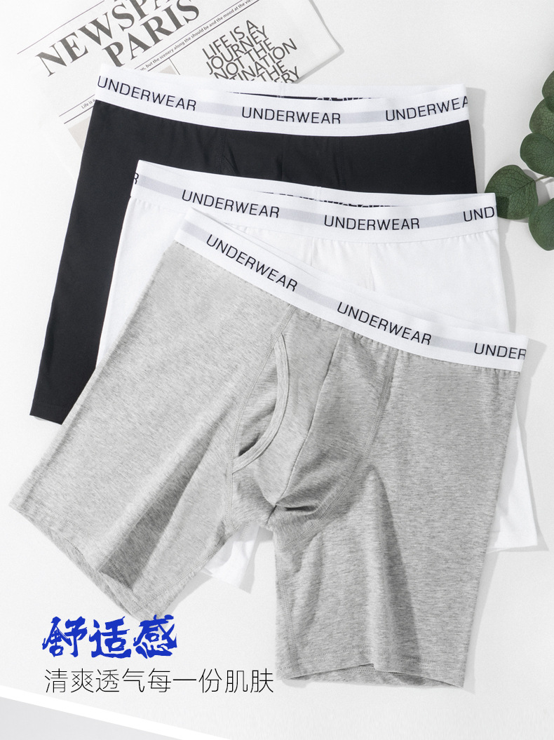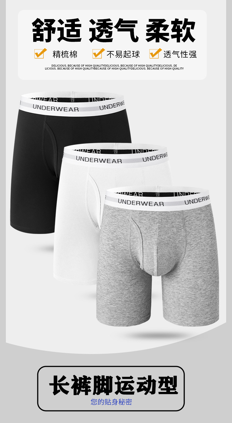 크로스보더 스포츠 남성 속옷, 남성용 단색 중간 허리면 소재, 길어진 디자인, 다리 마찰 방지, 통기성 좋은 러닝 사각팬티+스토어 가기