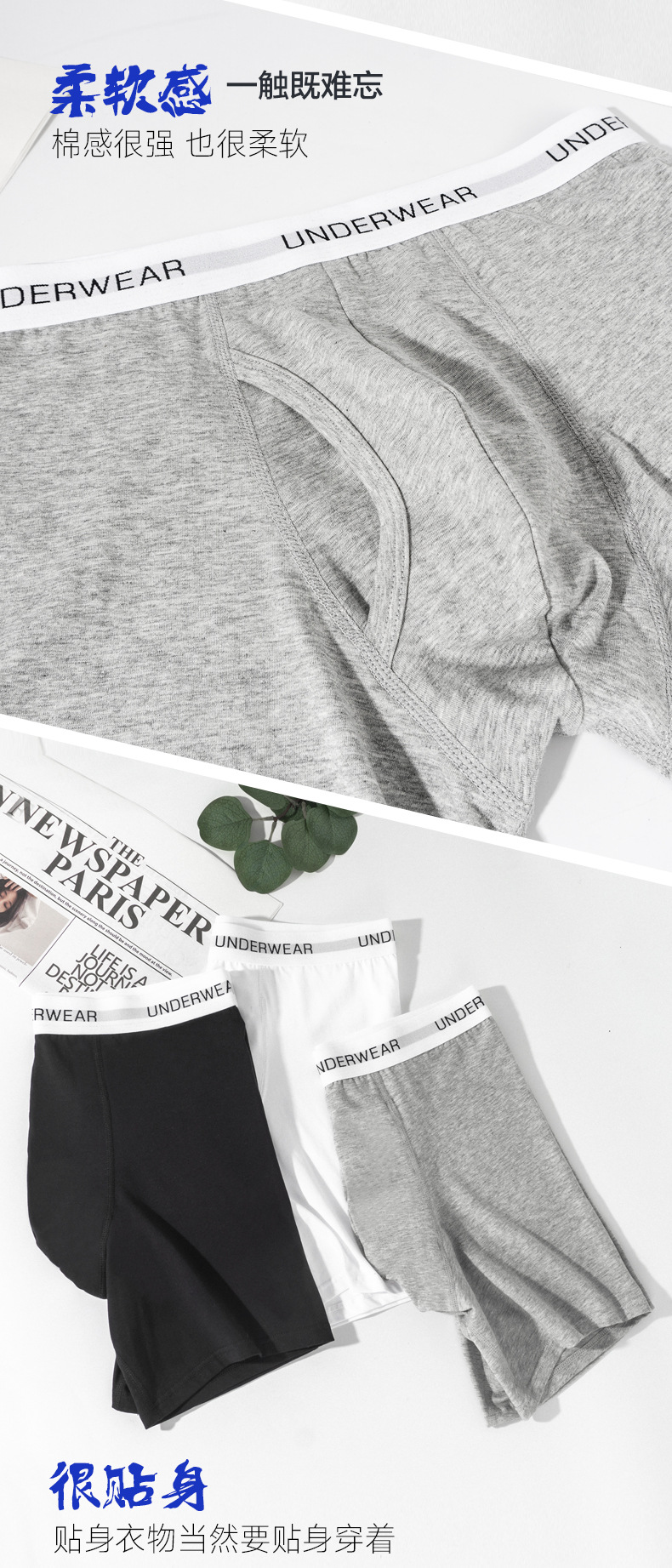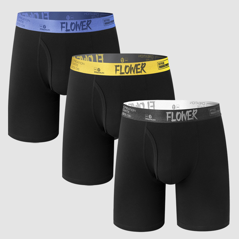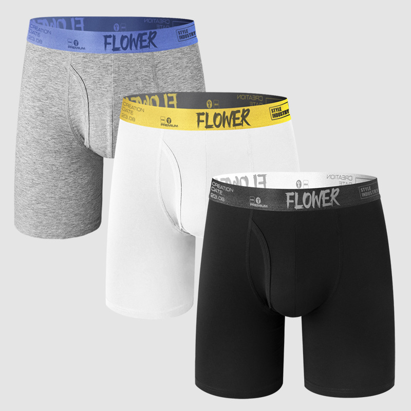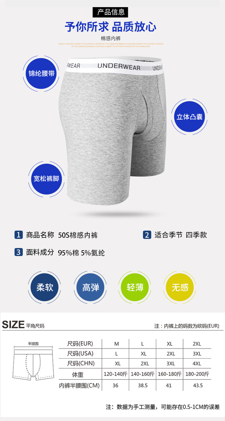 크로스보더 스포츠 남성 속옷, 남성용 단색 중간 허리면 소재, 길어진 디자인, 다리 마찰 방지, 통기성 좋은 러닝 사각팬티+스토어 가기