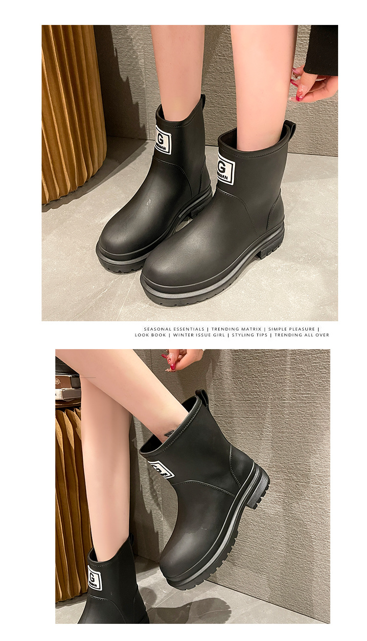 크로스 보더 패션 한국 여성 레인 슈즈 여성용 유럽 및 미국 스타일 장화 여성용 성인용 미끄럼 방지 내마모성 방수 고무 신발스토어 가기