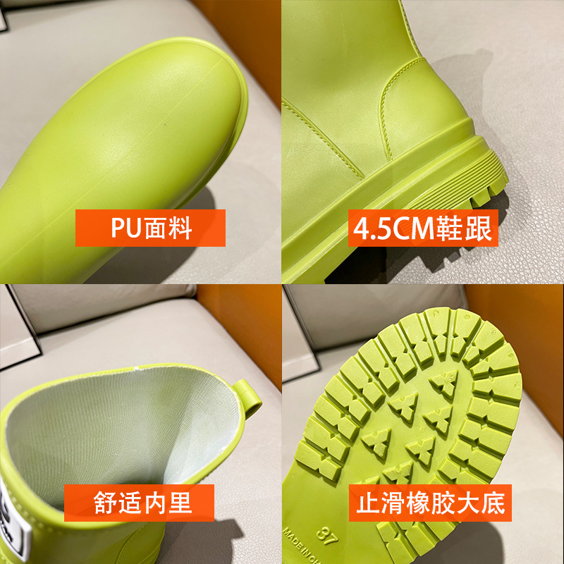 크로스 보더 패션 한국 여성 레인 슈즈 여성용 유럽 및 미국 스타일 장화 여성용 성인용 미끄럼 방지 내마모성 방수 고무 신발