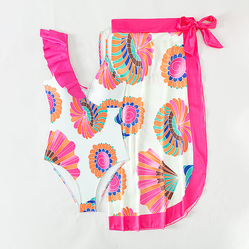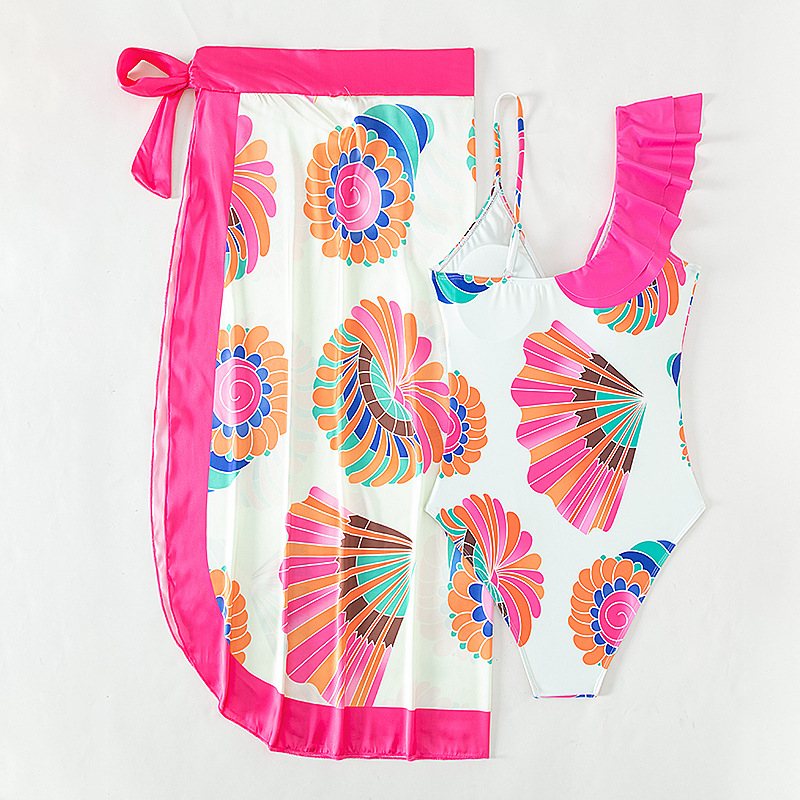 2025 신상 프린트 원피스 수영복 러플 비키니 여성 쉬폰 커버업 세트 롱스커트 해외배송 비키니스토어 가기