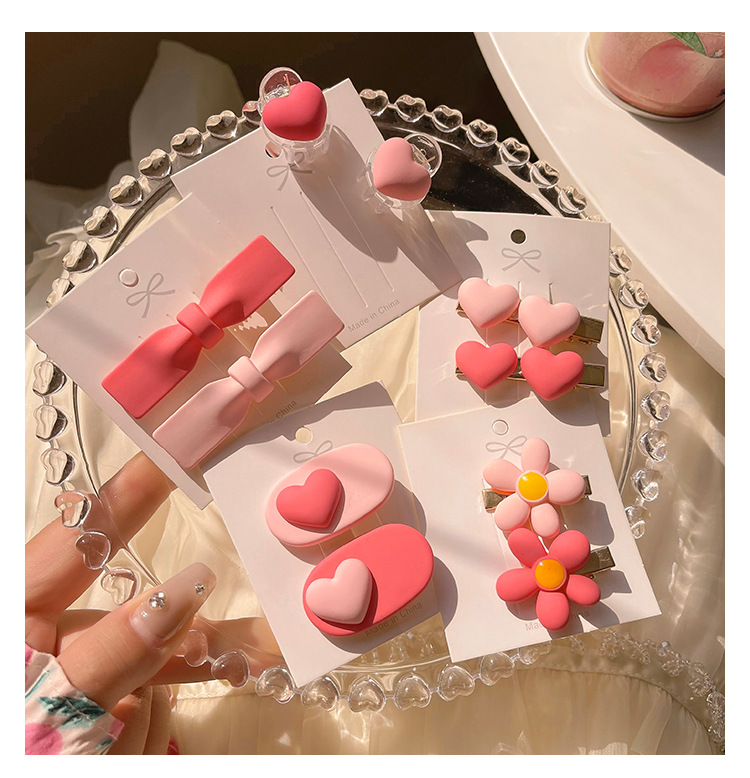 핑크 스타일 사랑 머리핀 여자의 옆 앞머리 최고 머리 머리핀 공주 머리 깨진 머리 클립 귀여운 머리핀 머리 장식스토어 가기