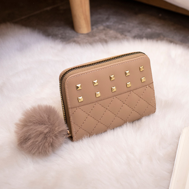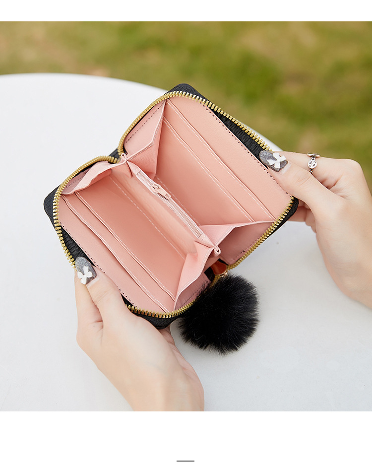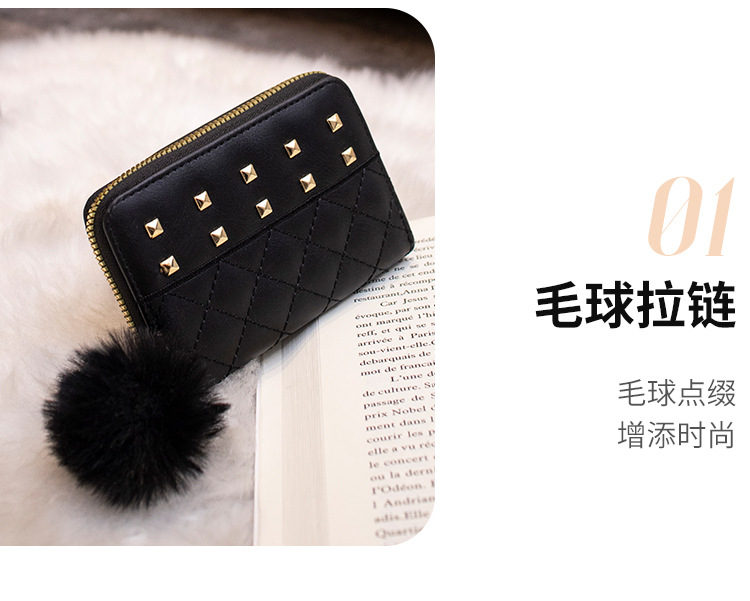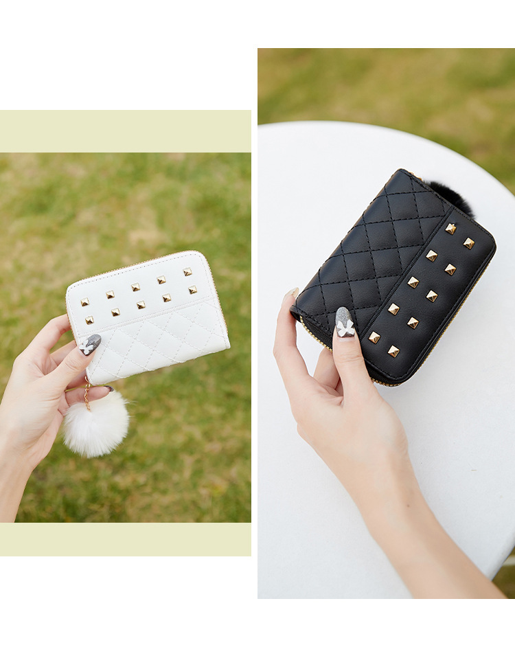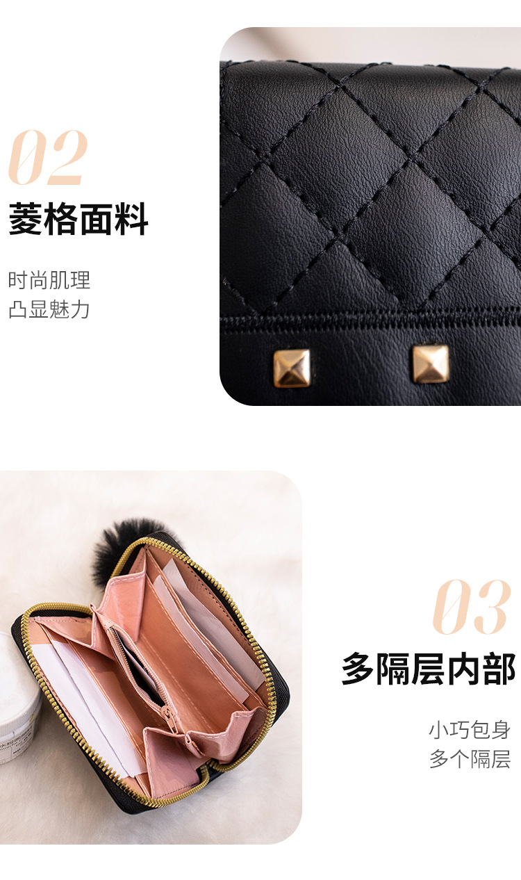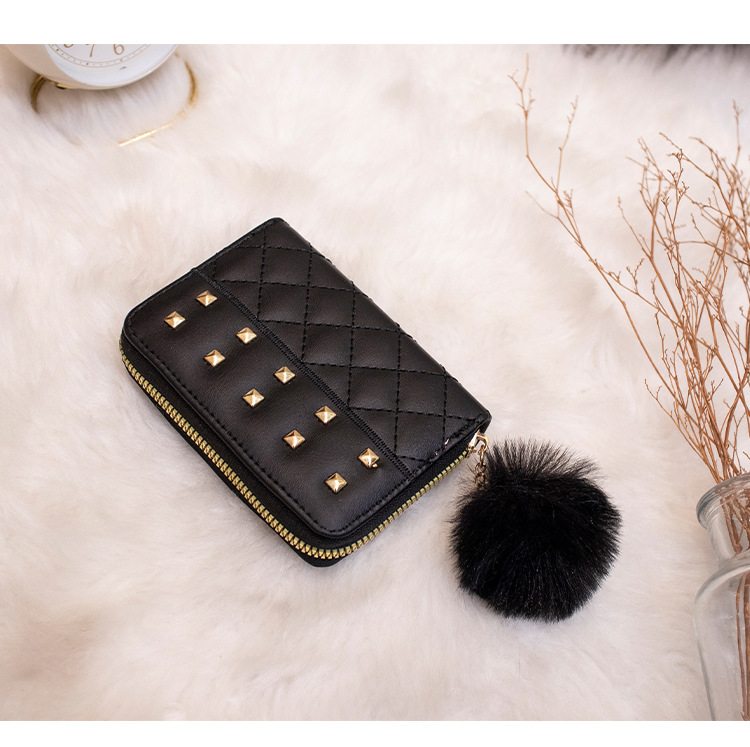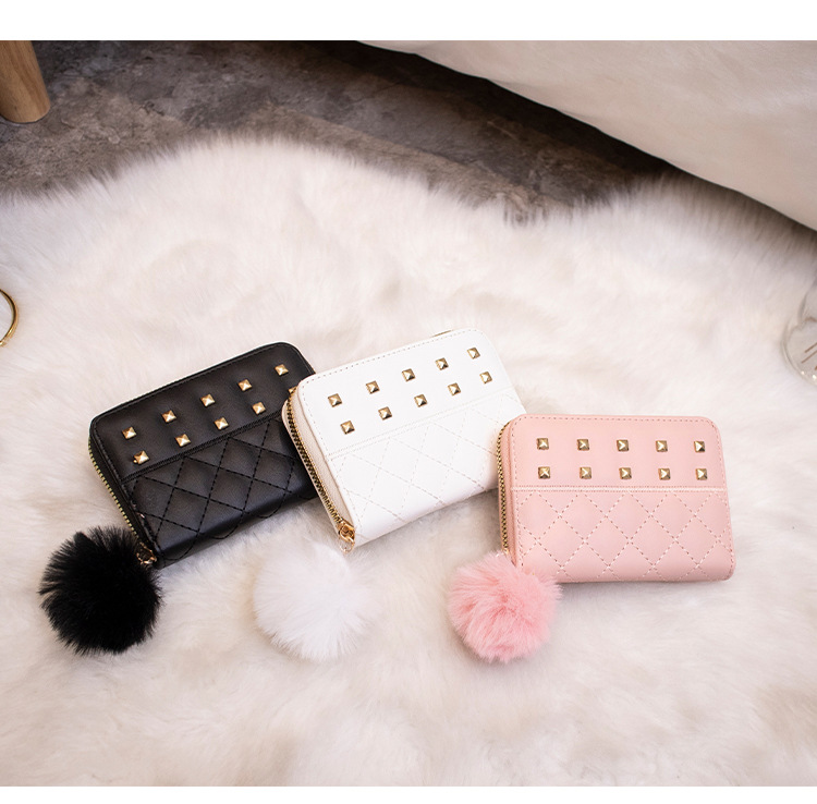 2023 새로운 패션 숙녀 지갑 클러치 백 짧은 변화 지갑 마름모 모피 공 장식 카드 가방 머리카락의 세대