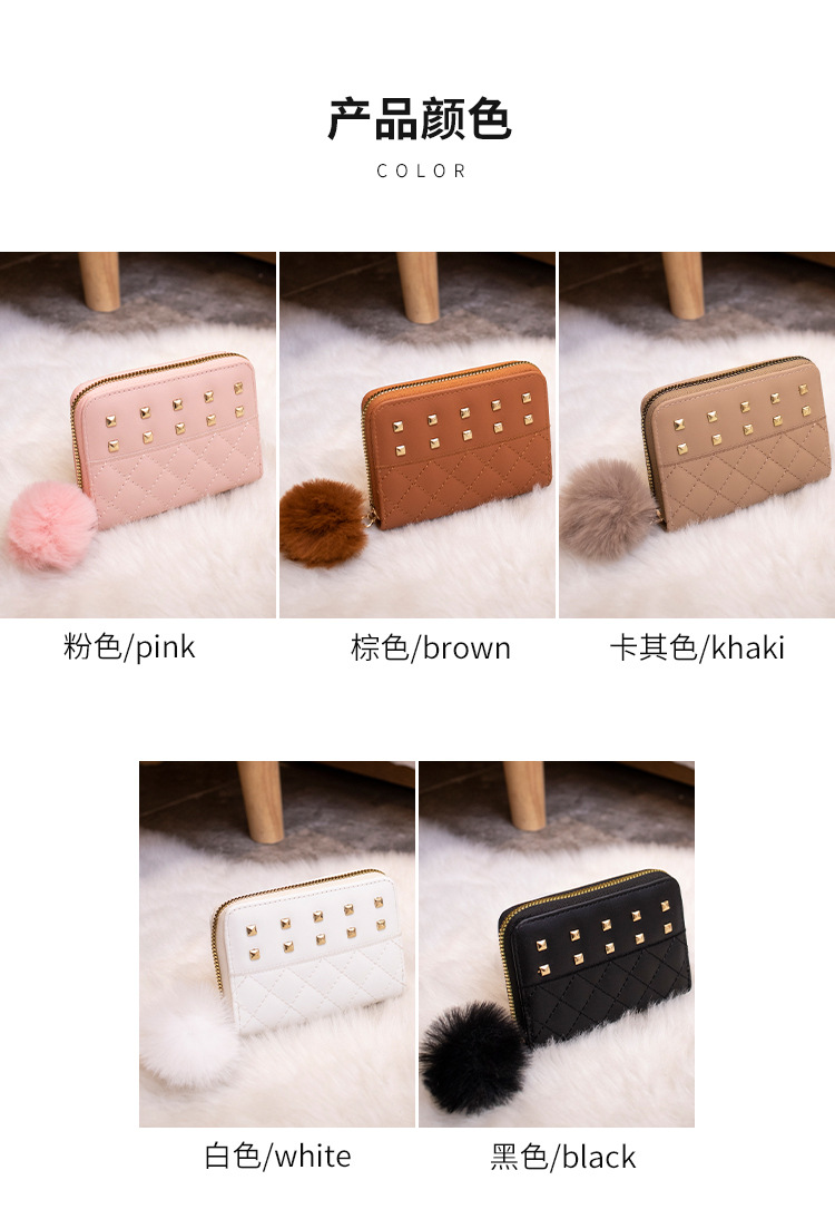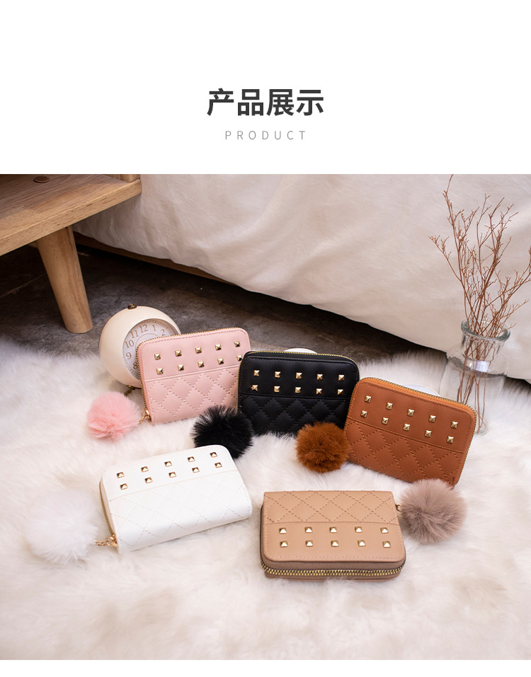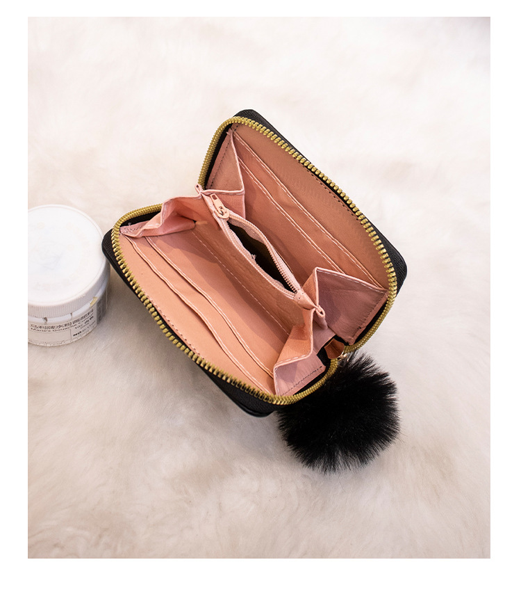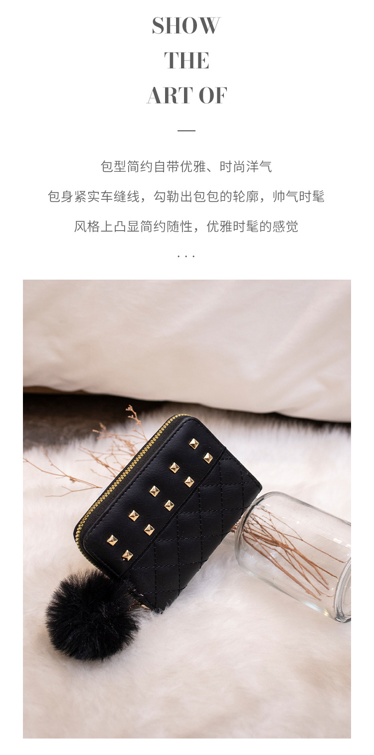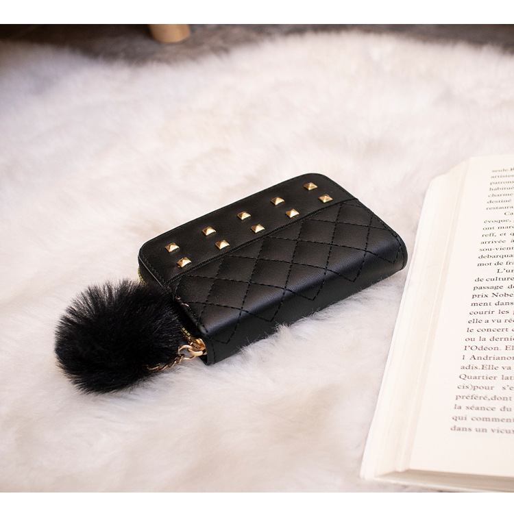 2023 새로운 패션 숙녀 지갑 클러치 백 짧은 변화 지갑 마름모 모피 공 장식 카드 가방 머리카락의 세대