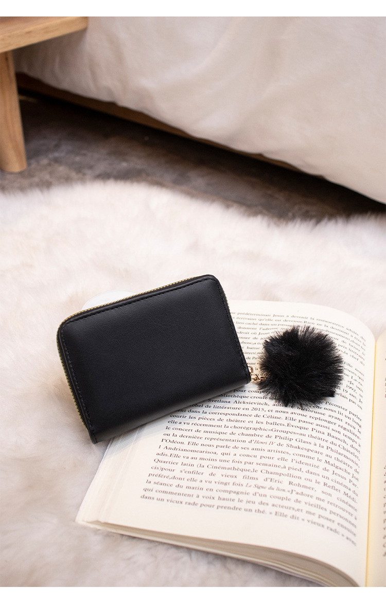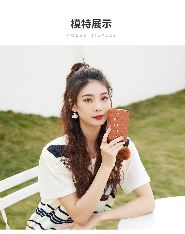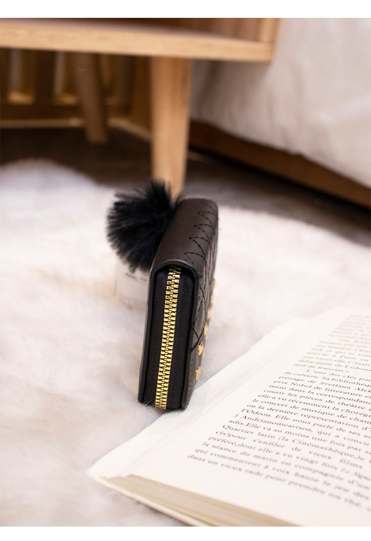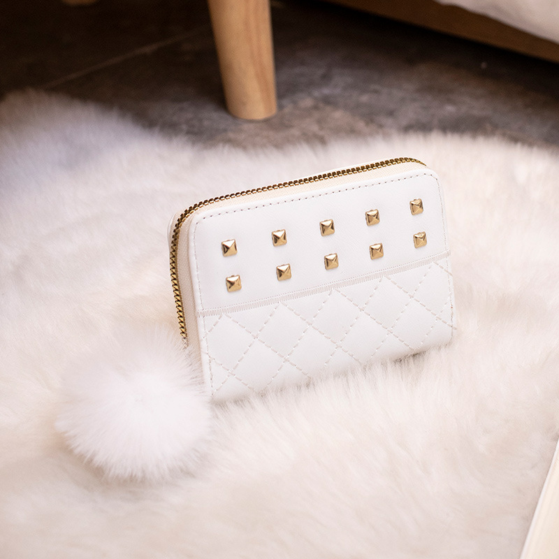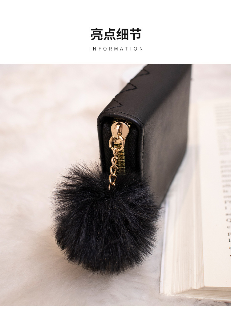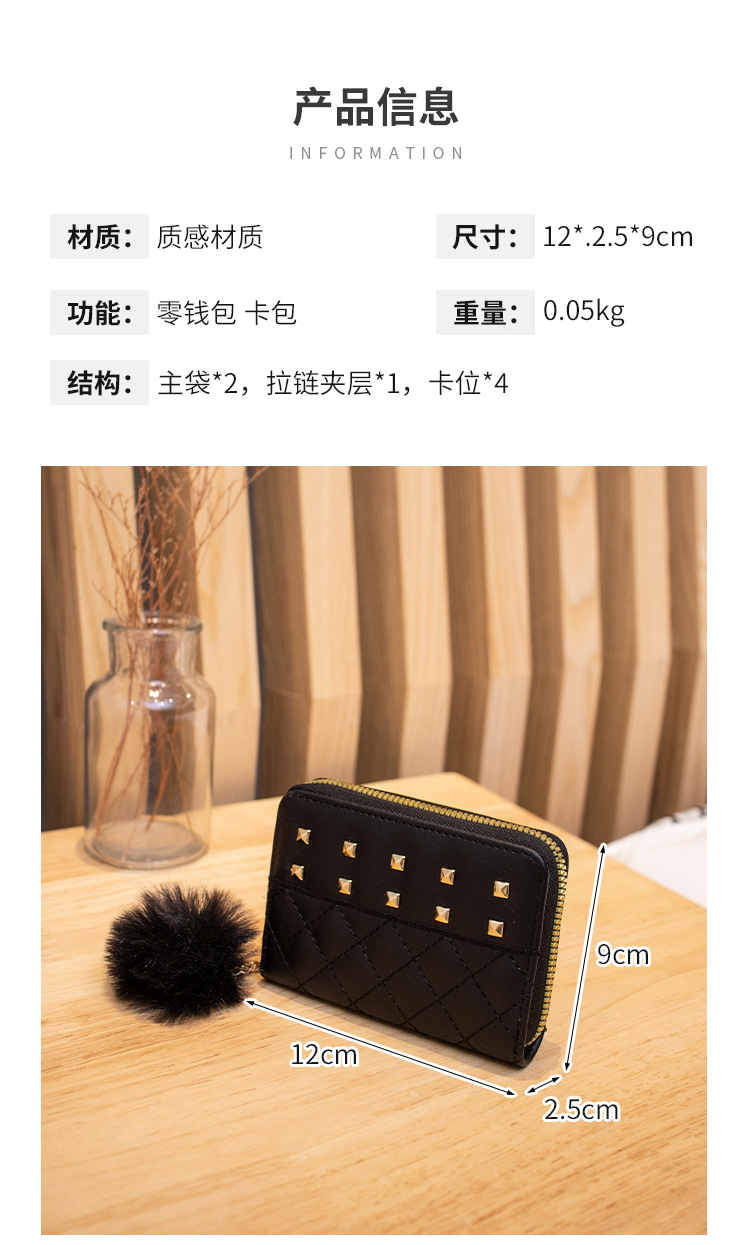 2023 새로운 패션 숙녀 지갑 클러치 백 짧은 변화 지갑 마름모 모피 공 장식 카드 가방 머리카락의 세대