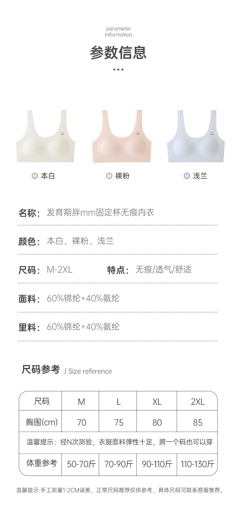뚱뚱한 소녀 속옷 사춘기 중학교 학생 원활한 브래지어 소녀 스포츠 충격 방지 작은 조끼스토어 가기