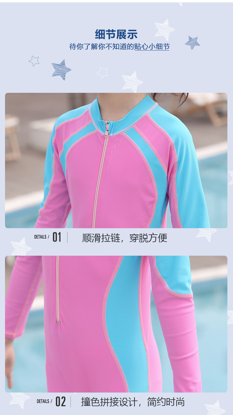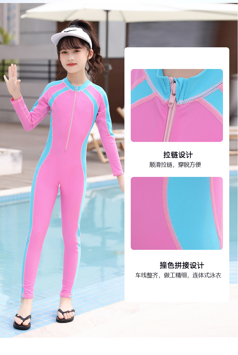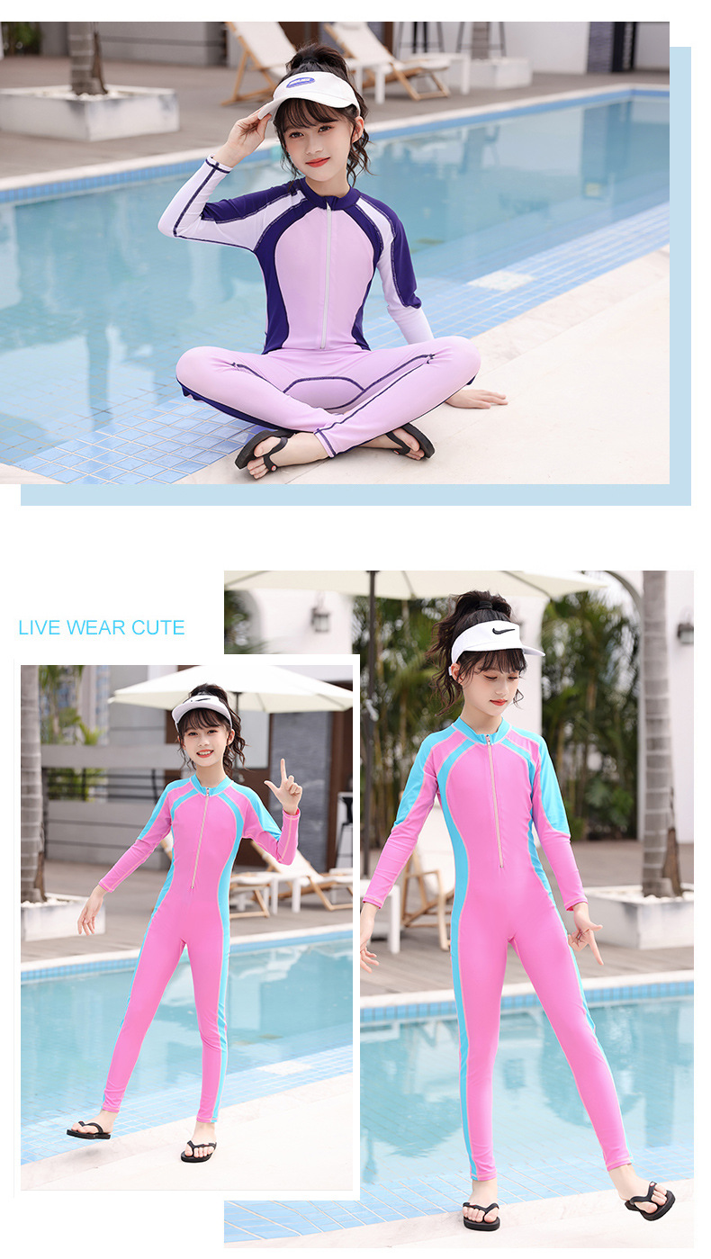새로운 어린이 원피스 수영복 여아 긴팔 바지 중학교를위한 자외선 차단제 보존 수영복 큰 어린이와 학생 어린 소녀