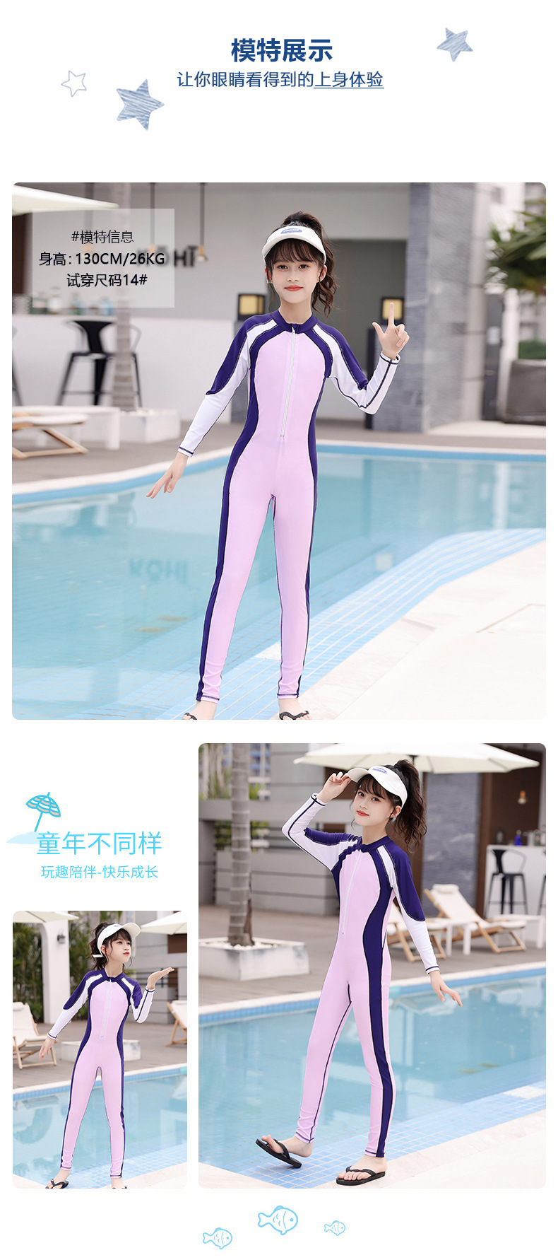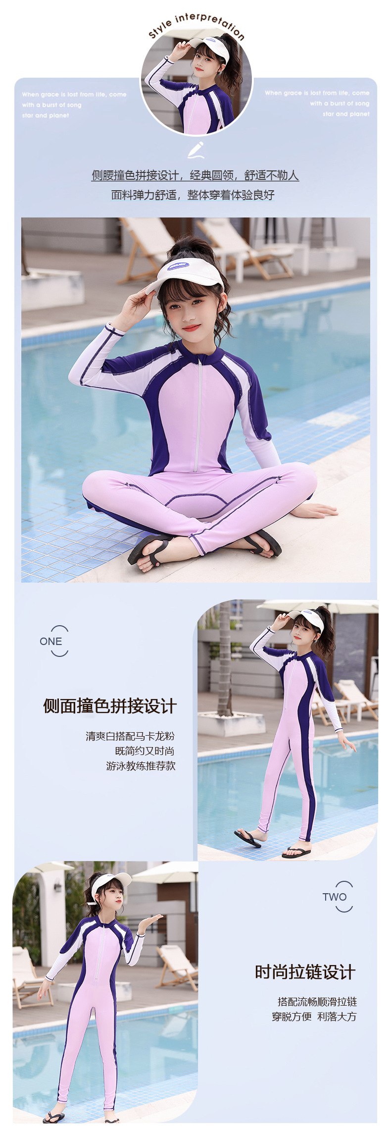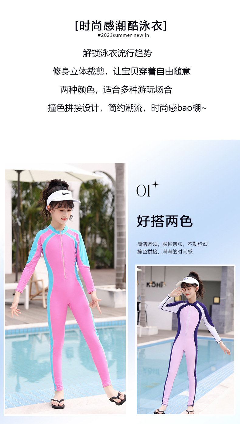 새로운 어린이 원피스 수영복 여아 긴팔 바지 중학교를위한 자외선 차단제 보존 수영복 큰 어린이와 학생 어린 소녀