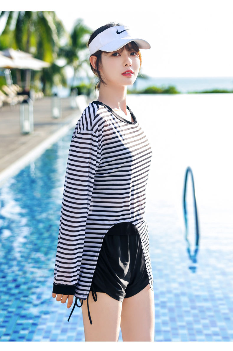 스플릿 수영복 여성용 여름 슬리밍 배꼽 취재 보수적 인 새로운 수영복 자외선 차단제 3 피스 스포츠 전문 온천 수영복스토어 가기