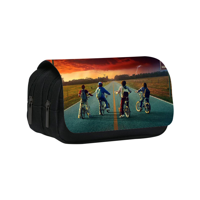도매 이상한 이야기 더블 레이어 필통 기묘한 이야기 4 학생 인쇄 대용량 문구 가방스토어 가기