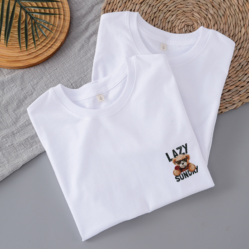 여성 탑 퓨어 화이트 면 반팔 남성 캐주얼 프린트 크루 넥 여성 하의 셔츠 실속 공급 도매 화이트 T스토어 가기