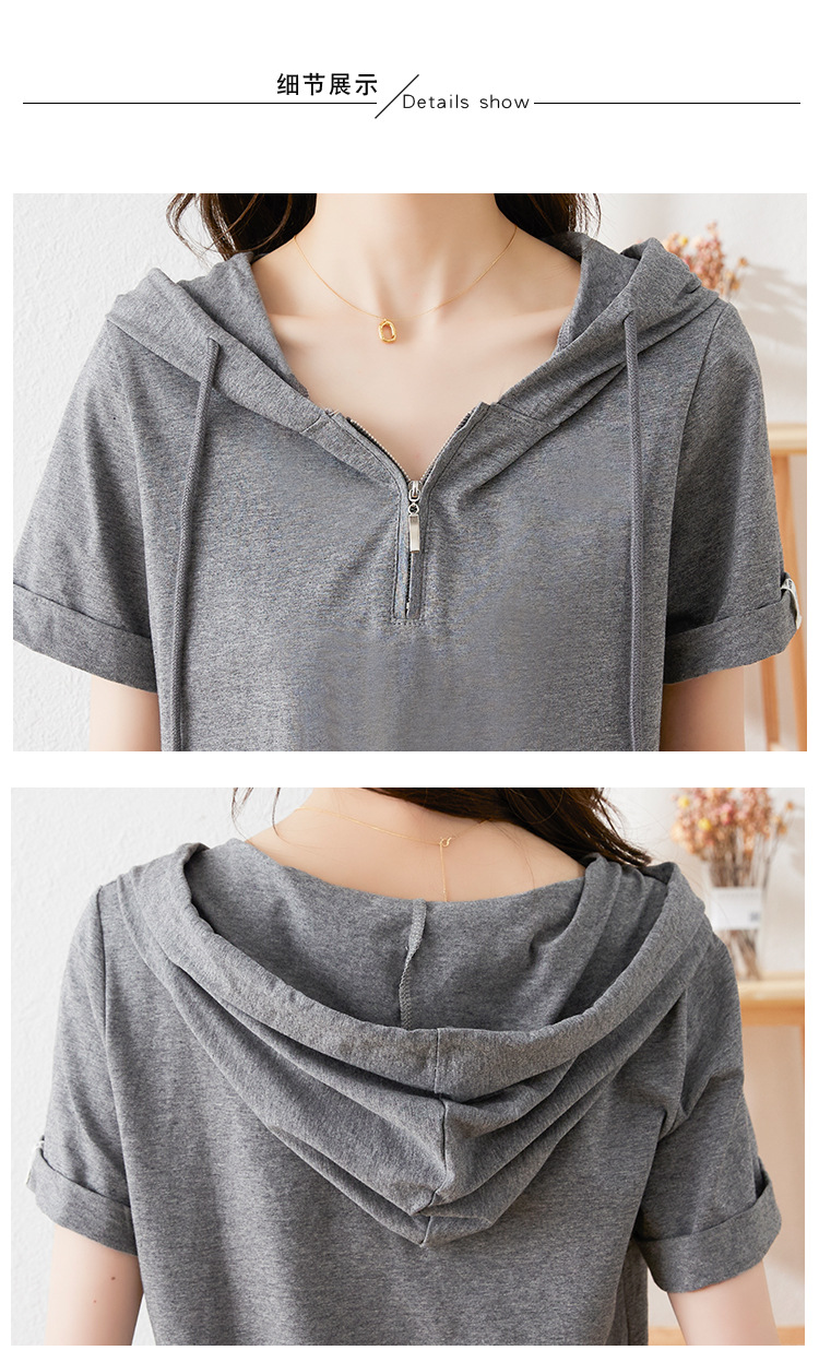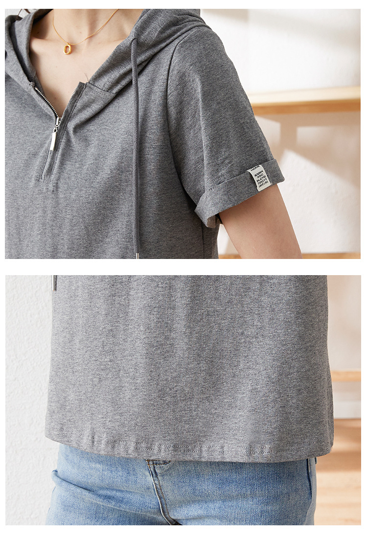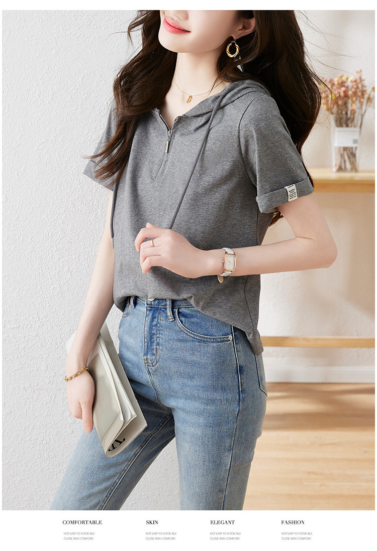 리얼 샷 스팟 캐주얼 후드 라벨 티셔츠 2023 여름 새로운 간단한 기질 올 매치 통기성 탑 여성스토어 가기